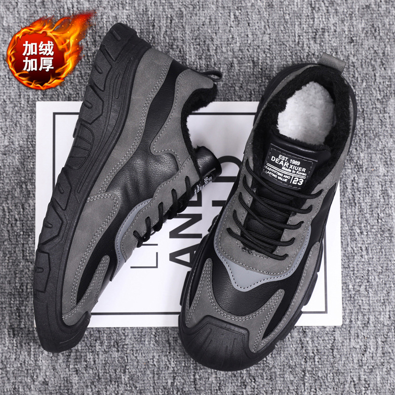 겨울 신상 벨벳 노동 보호 신발, 패셔너블한 작업화, 면 따뜻한 남성 캐주얼 신발, 부드러운 밑창 통근 싱글 면 같은 스타일