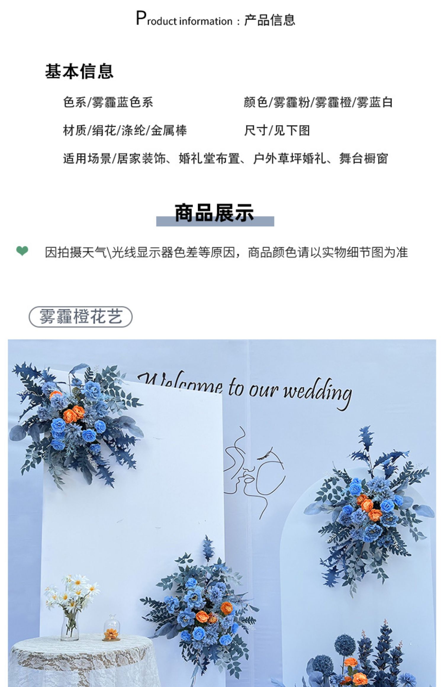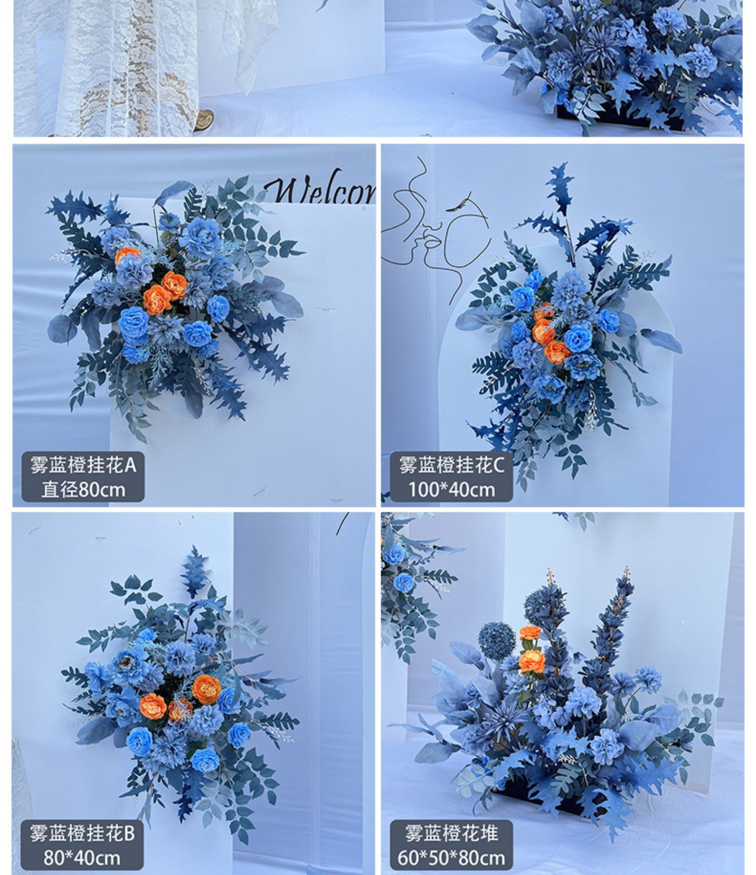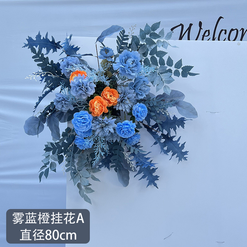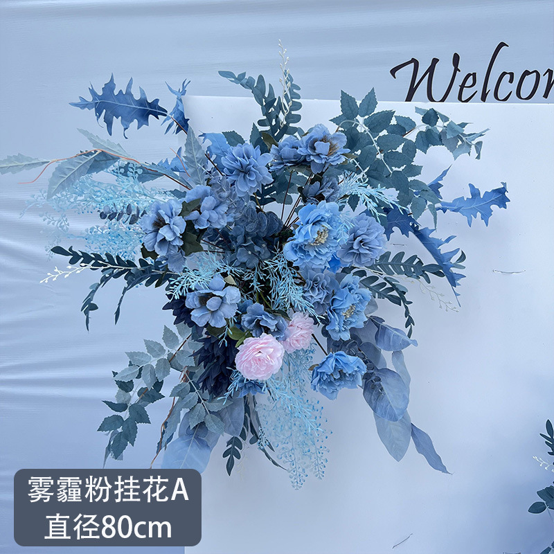 婚庆仿真绢花雾霾蓝装饰挂花订婚礼堂舞台场景布置花艺路引地排花