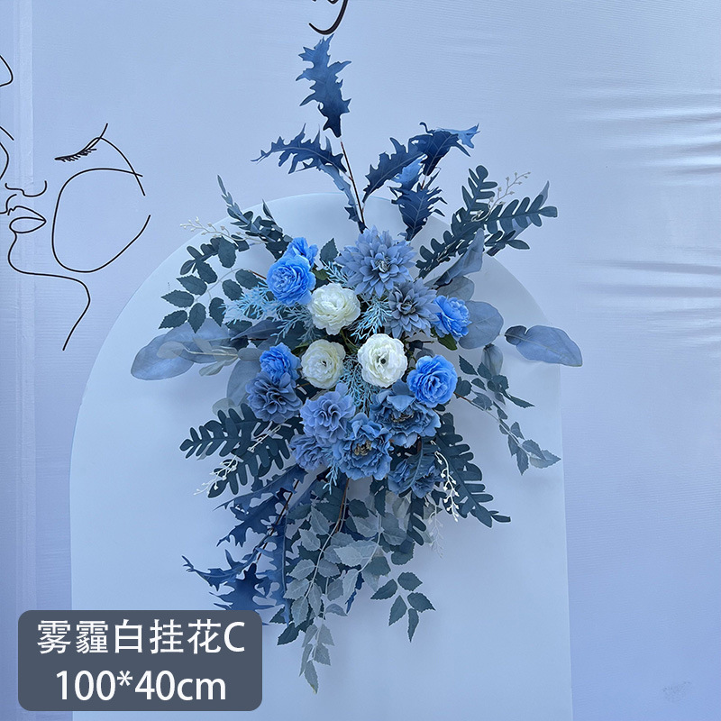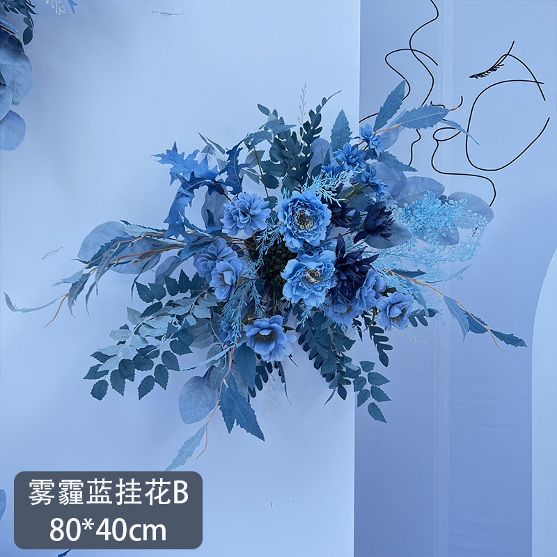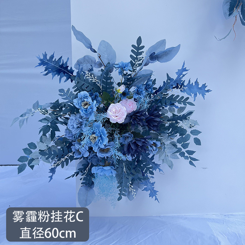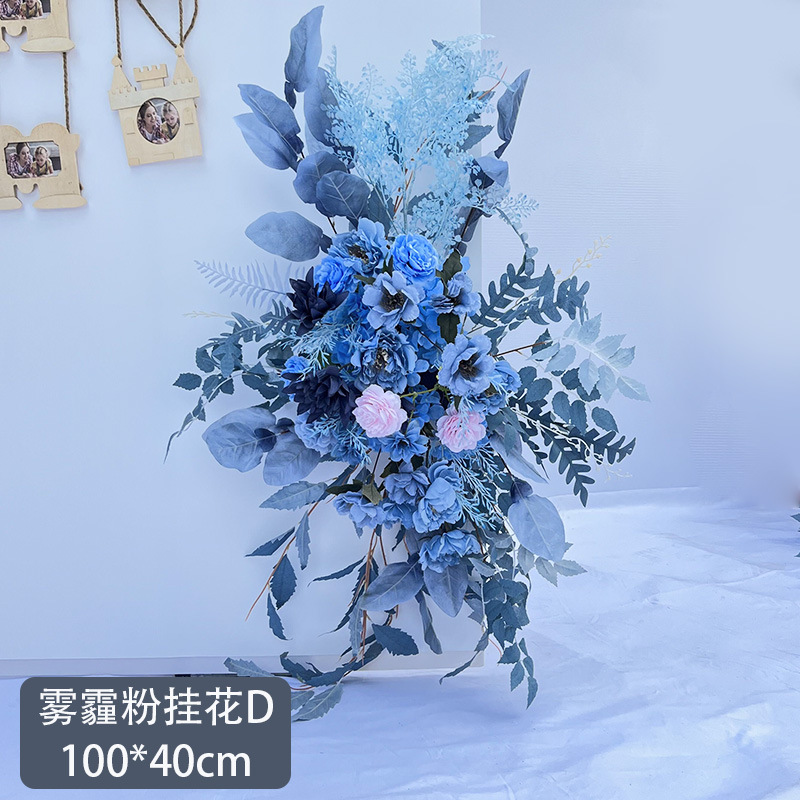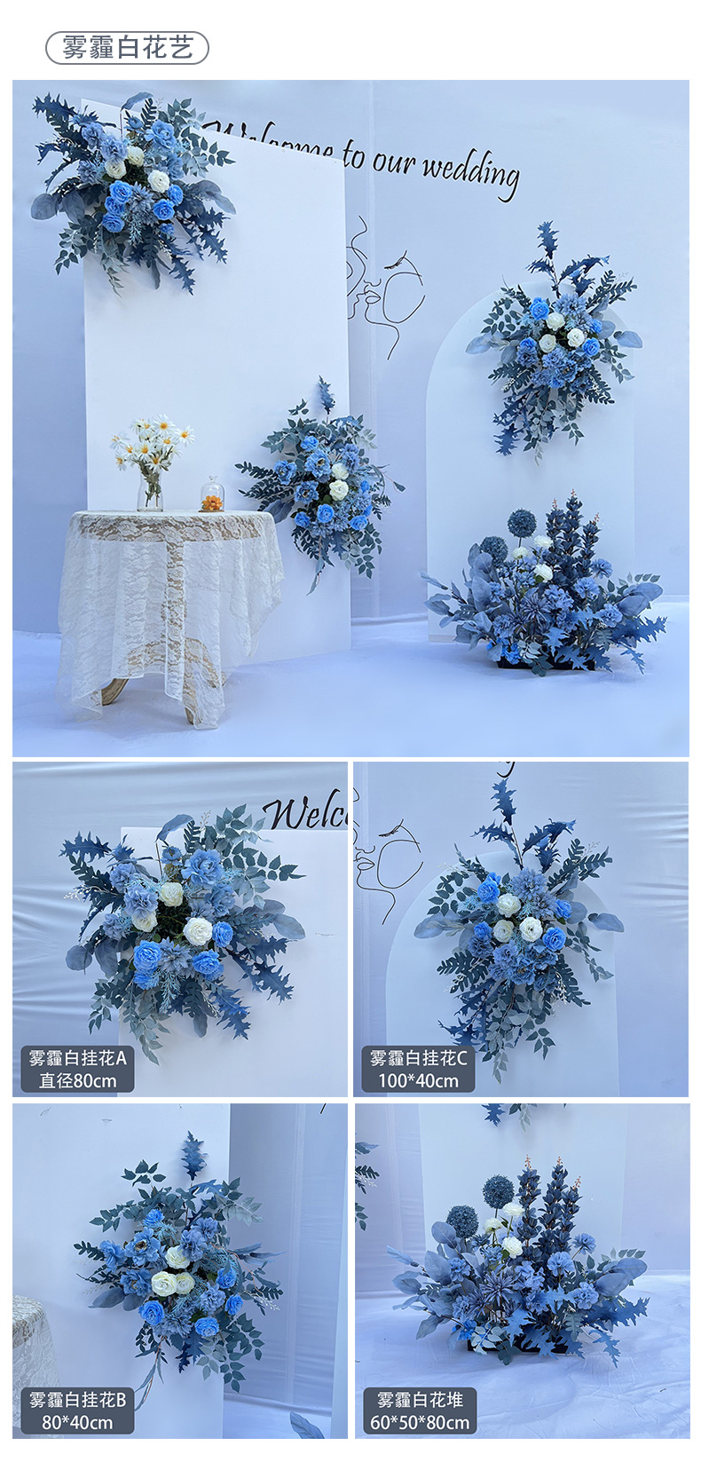 결혼식 시뮬레이션 실크 꽃 헤이즈 블루 장식 매달려 꽃 약혼 강당 무대 장면 배열 꽃 예술 길 꽃 배열로 이어짐스토어 가기