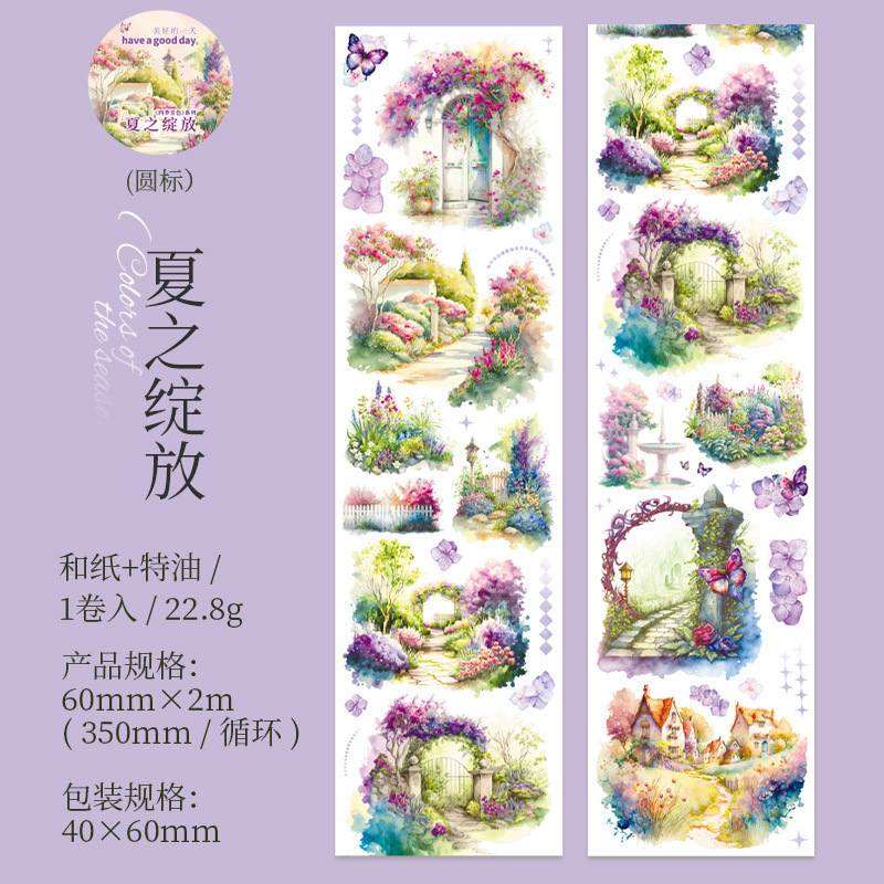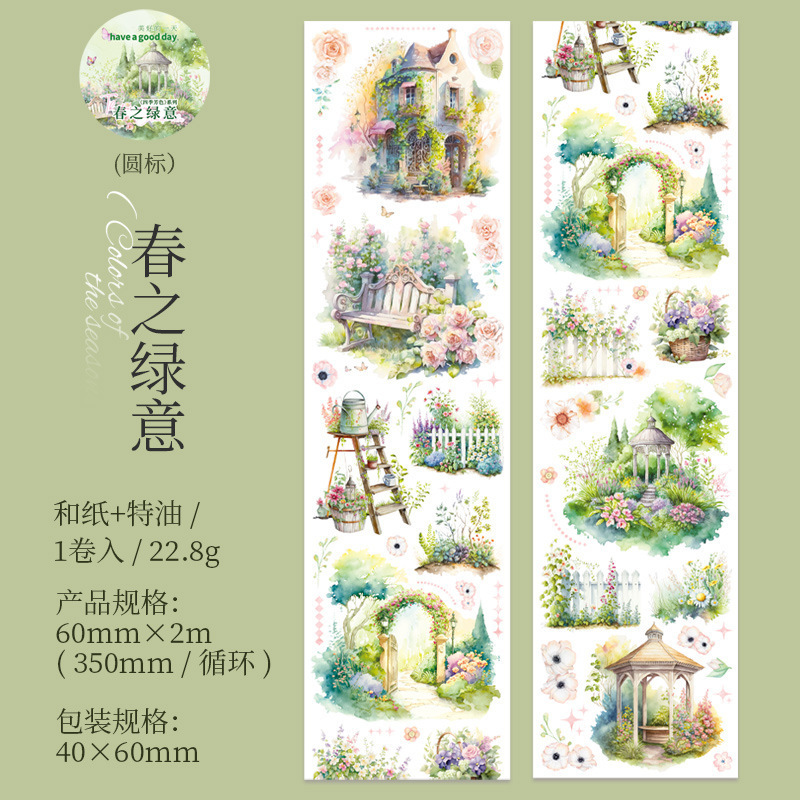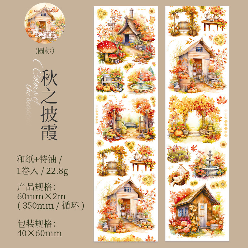 아름다운 날 사계절 아로마 시리즈 특수 오일 및 종이 테이프 봄, 여름, 가을 및 겨울 손 계정 재료 장식 콜라주스토어 가기