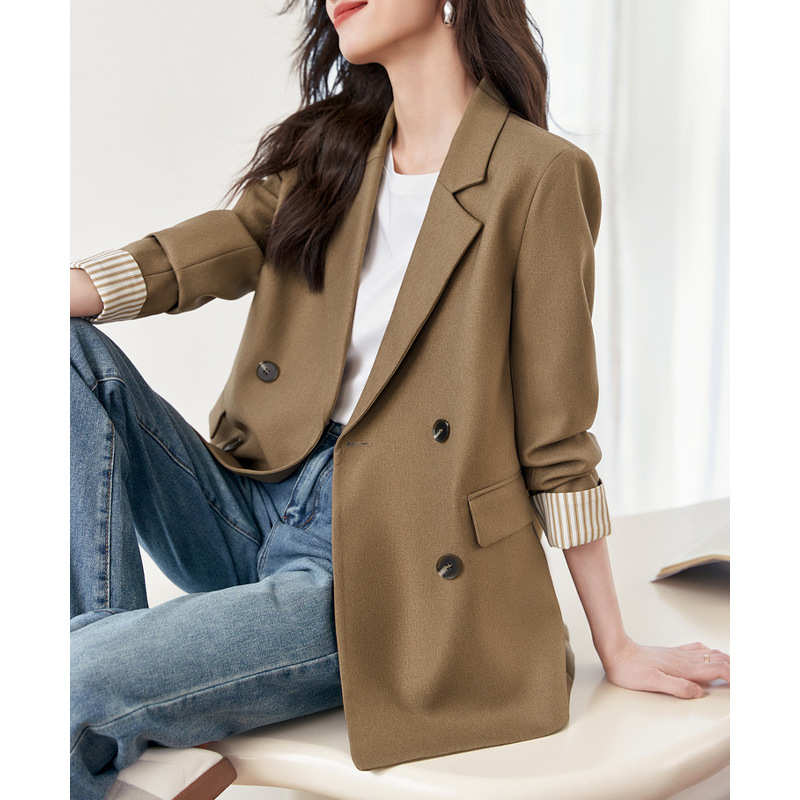 줄무늬 색상 대비 다시 디자인 감각 세트 2024 가을 새로운 패션 통근 질감 여성 세트스토어 가기