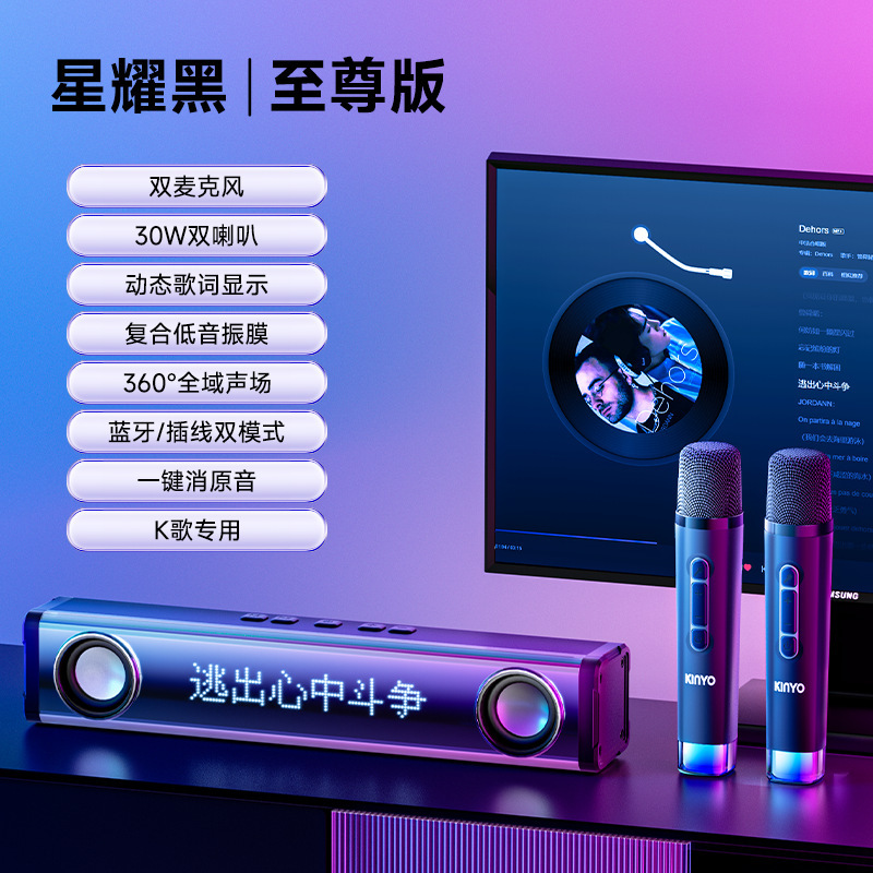 • 블랙 슈프림 에디션 [듀얼 마이크 포함] 30W 듀얼 스피커 + 동적 가사 디스플레이 + 노래방 전용