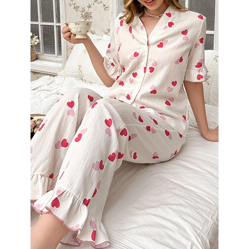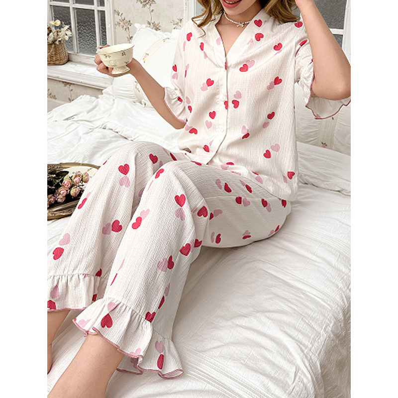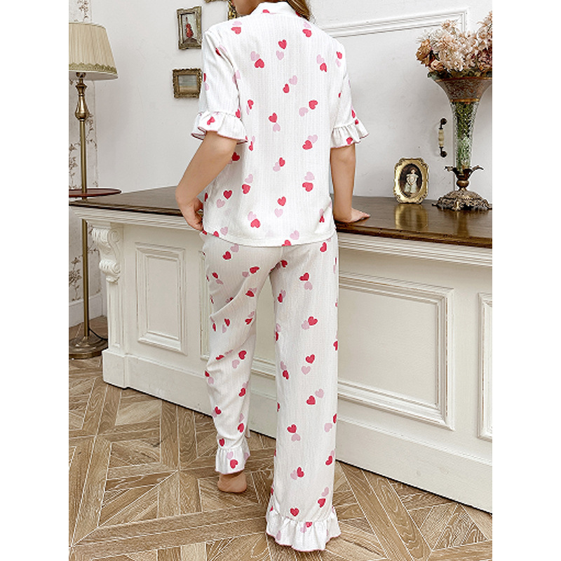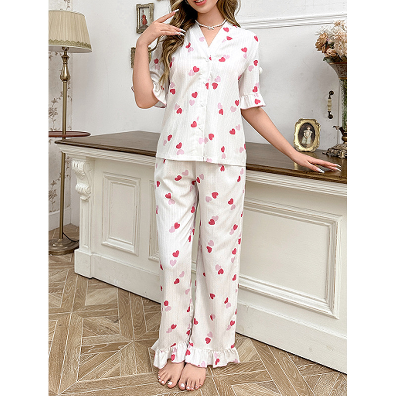 국경 간 달콤한 사랑 카디건 파자마 여성 세트 가을 새로운 유럽과 미국의 하이 엔드 센스 혼 슬리브 바지 홈 옷스토어 가기