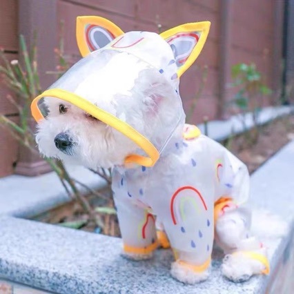 봄과 여름 새 개 비옷 투명한 방수 레인보우 비옷 테디 Bixiong 미디어와 작은 개 비옷
