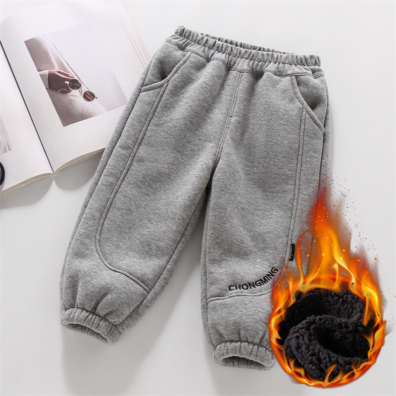 소년 기모 두꺼운 땀 바지 어린이 따뜻한 부드러운 캐주얼 바지 어린이 원피스 벨벳 가을과 겨울 자수 바지