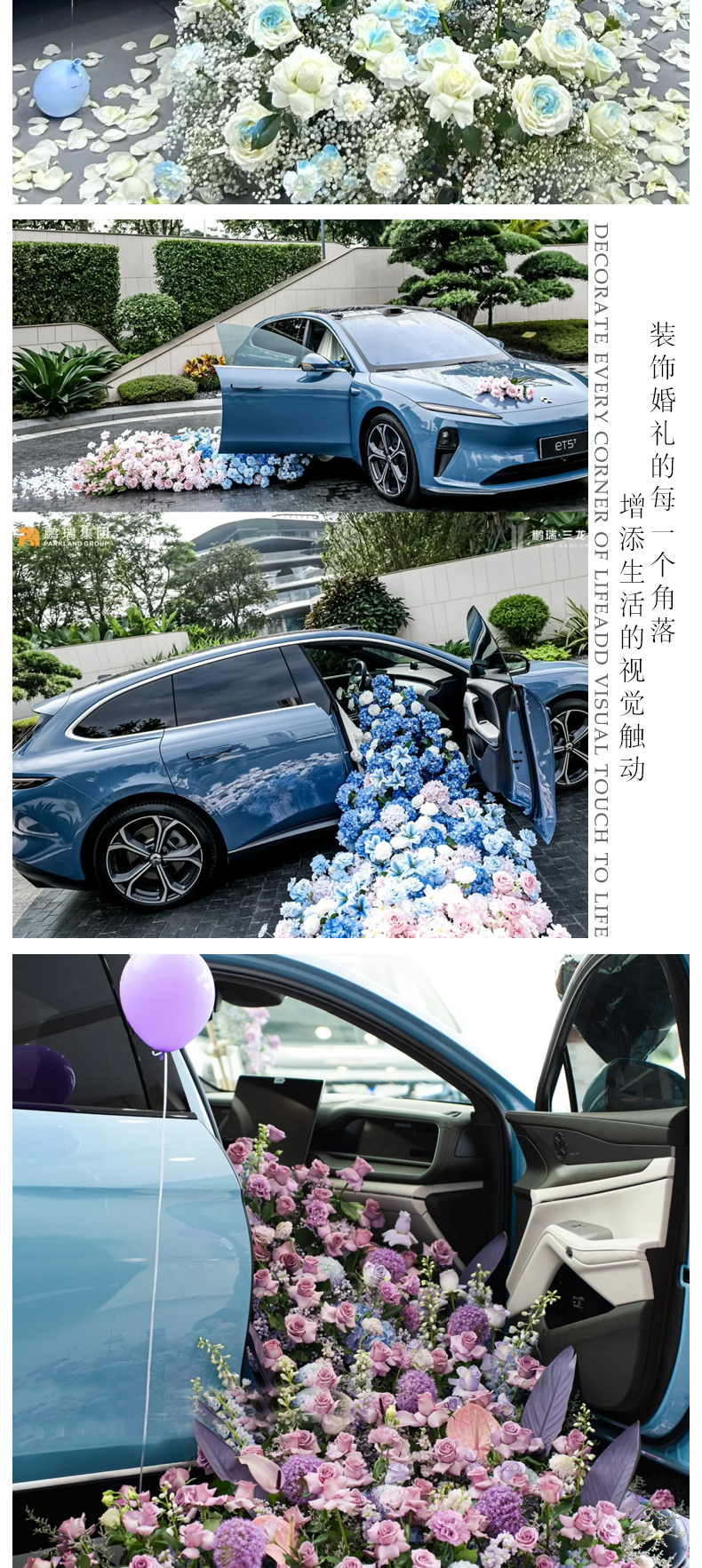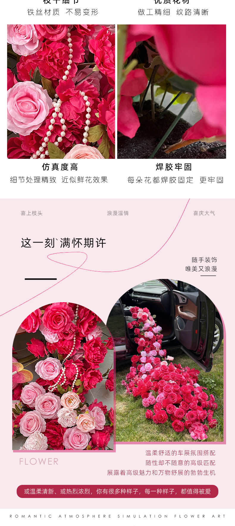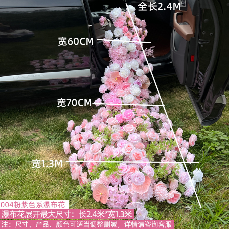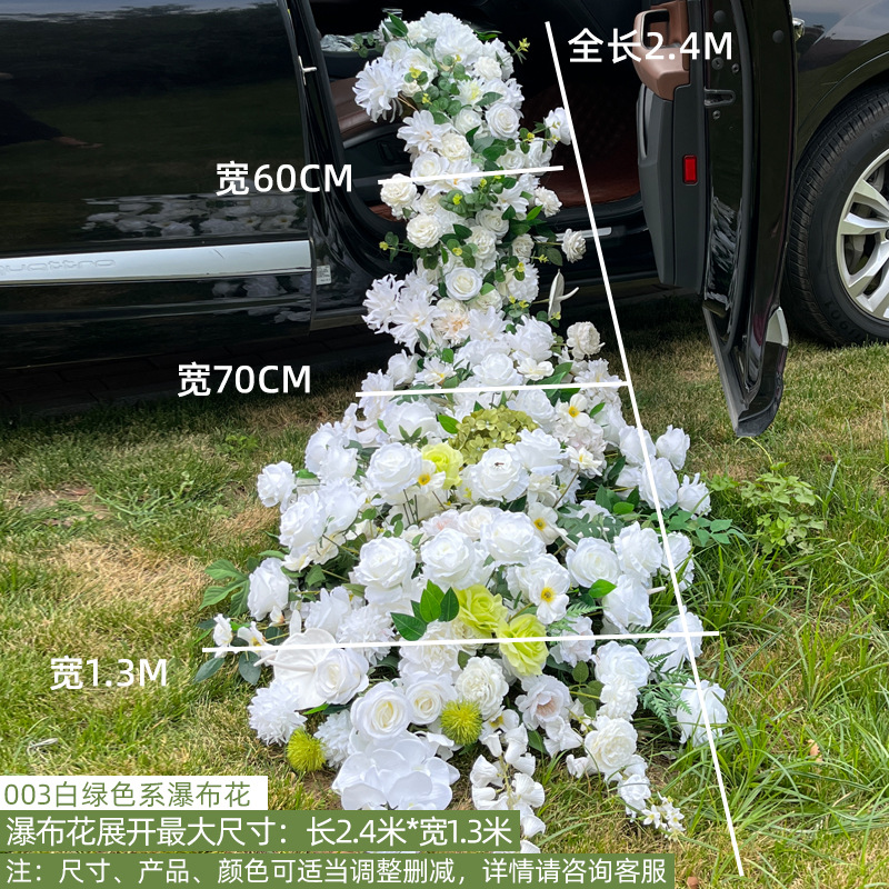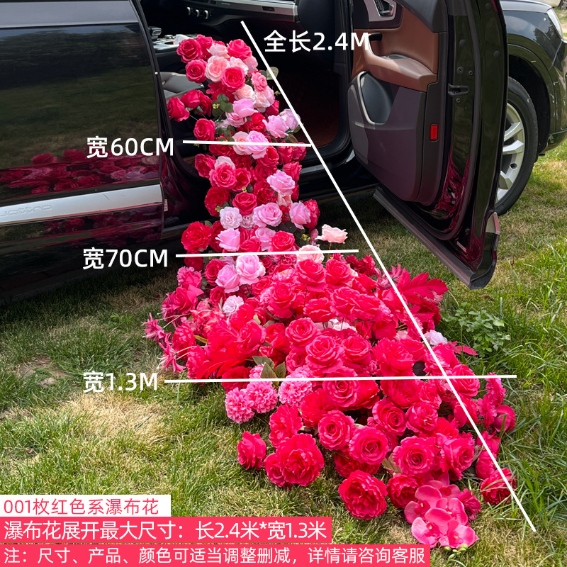 情人节网红交车仪式瀑布花排仪式感花艺4S店车展装扮仿真拖尾绢花