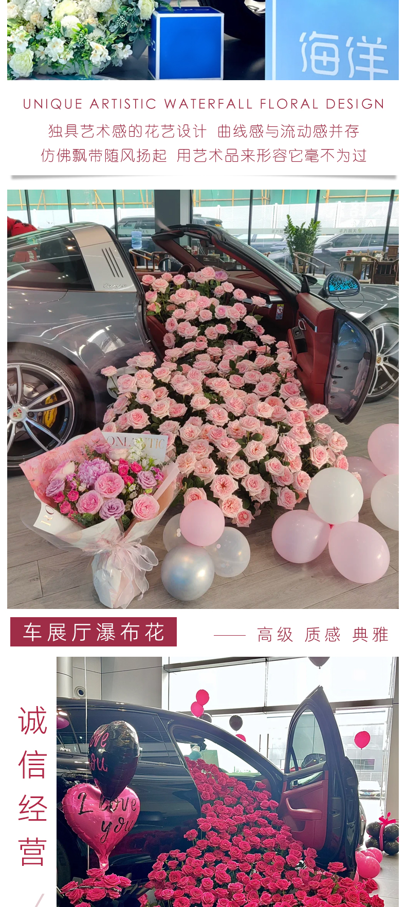 발렌타인 데이 온라인 빨간 자동차 배달 행사 폭포 꽃 줄 의식 꽃 예술 4S 상점 오토 쇼 시뮬레이션 뒤 원피스 실크 꽃스토어 가기