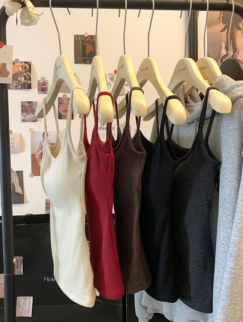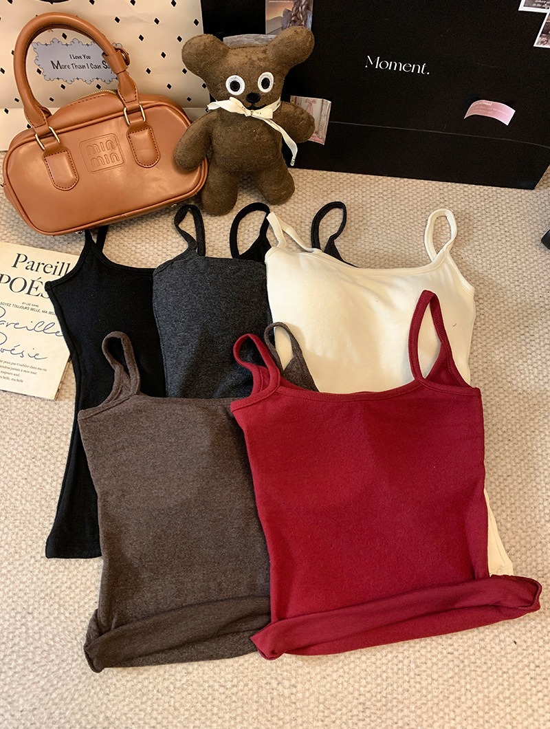 가슴 패드가 있는 여성용 가을 겨울 한국식 기모 캐미솔, 슬리밍 및 발열 보온 속옷, 짧은 스타일스토어 가기
