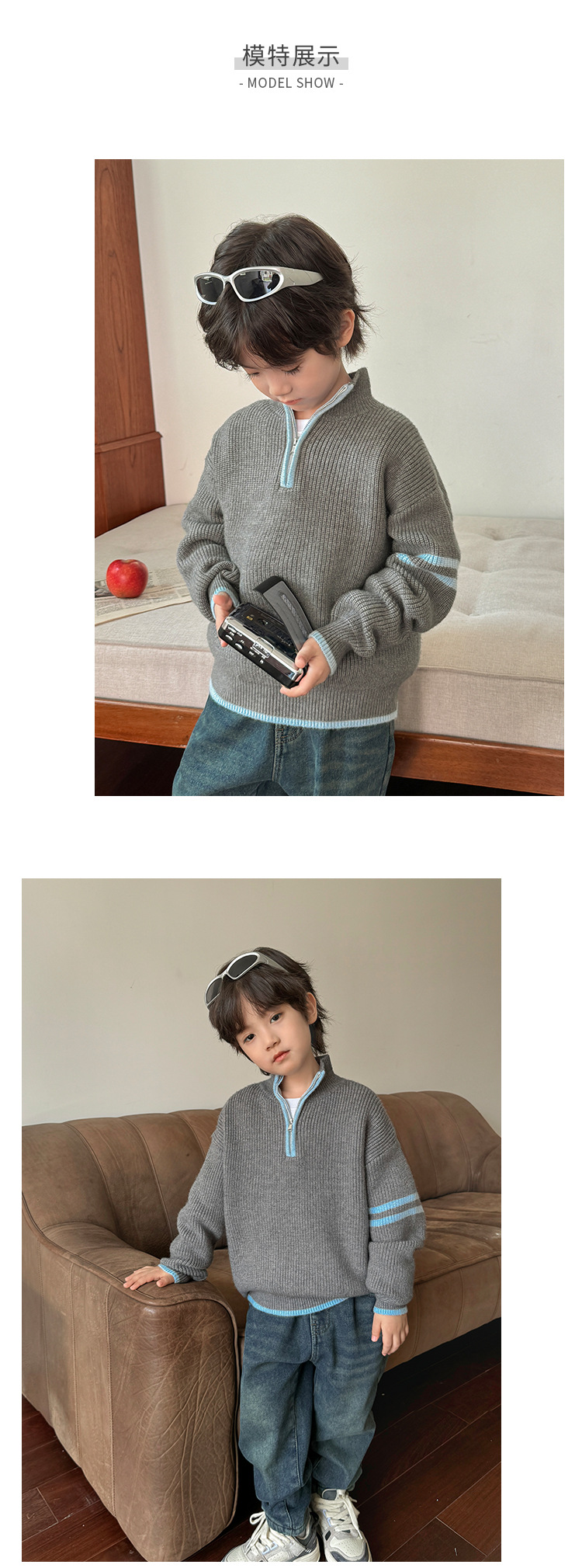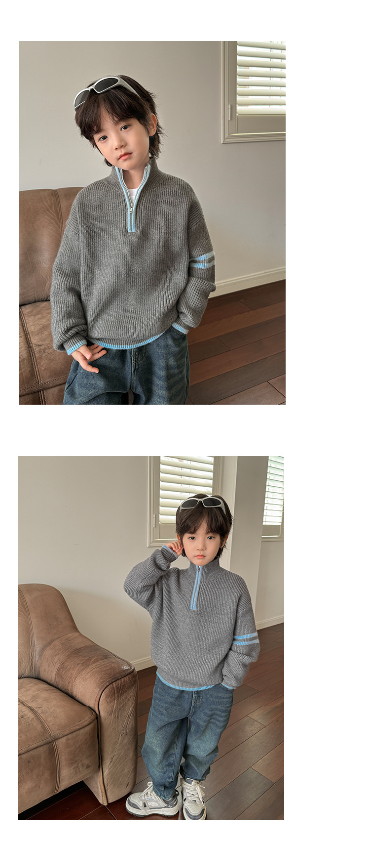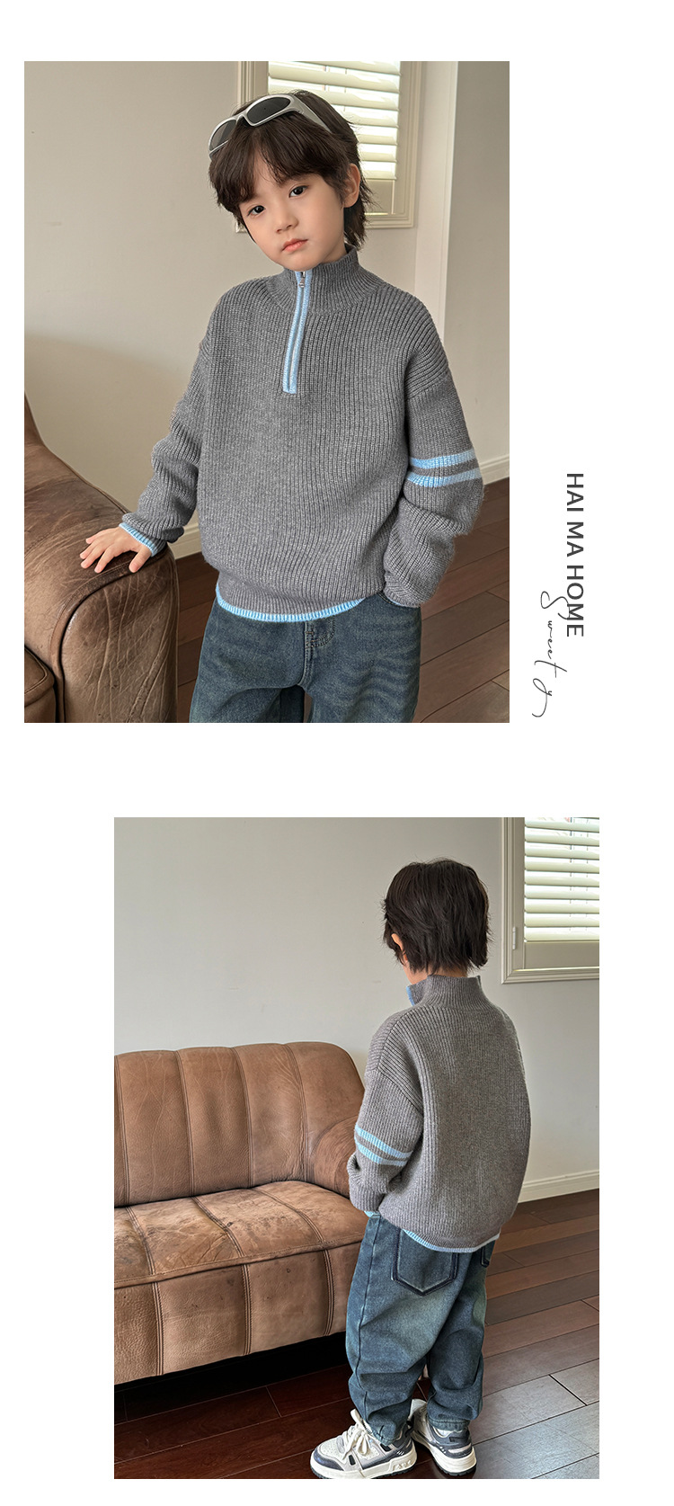 해마가족 아동복 2025 겨울 신상 남아용 한국 스타일 하이넥 스웨터 세련된 니트웨어 이너웨어 겨울 상의스토어 가기