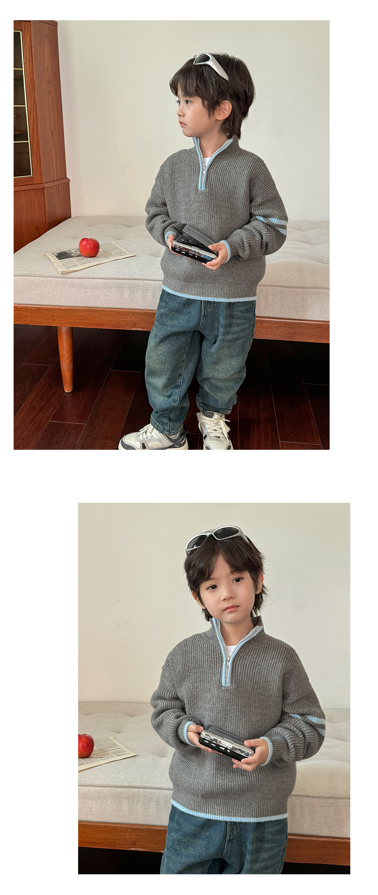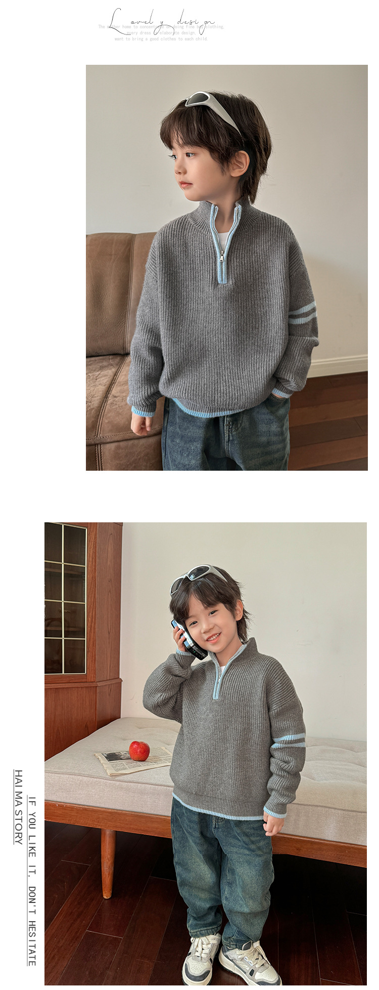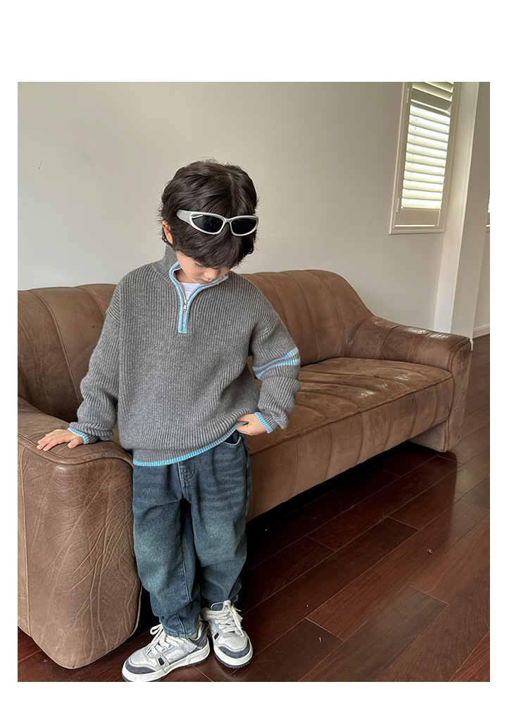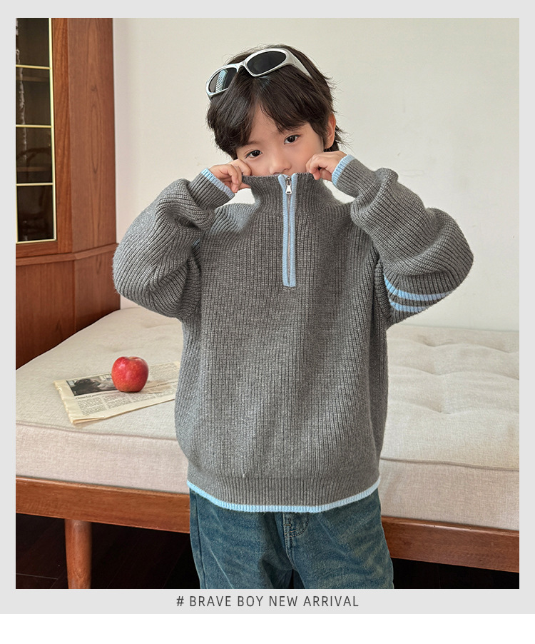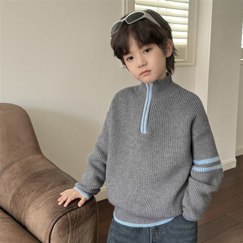 해마가족 아동복 2025 겨울 신상 남아용 한국 스타일 하이넥 스웨터 세련된 니트웨어 이너웨어 겨울 상의