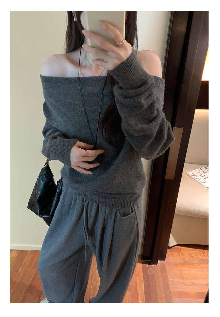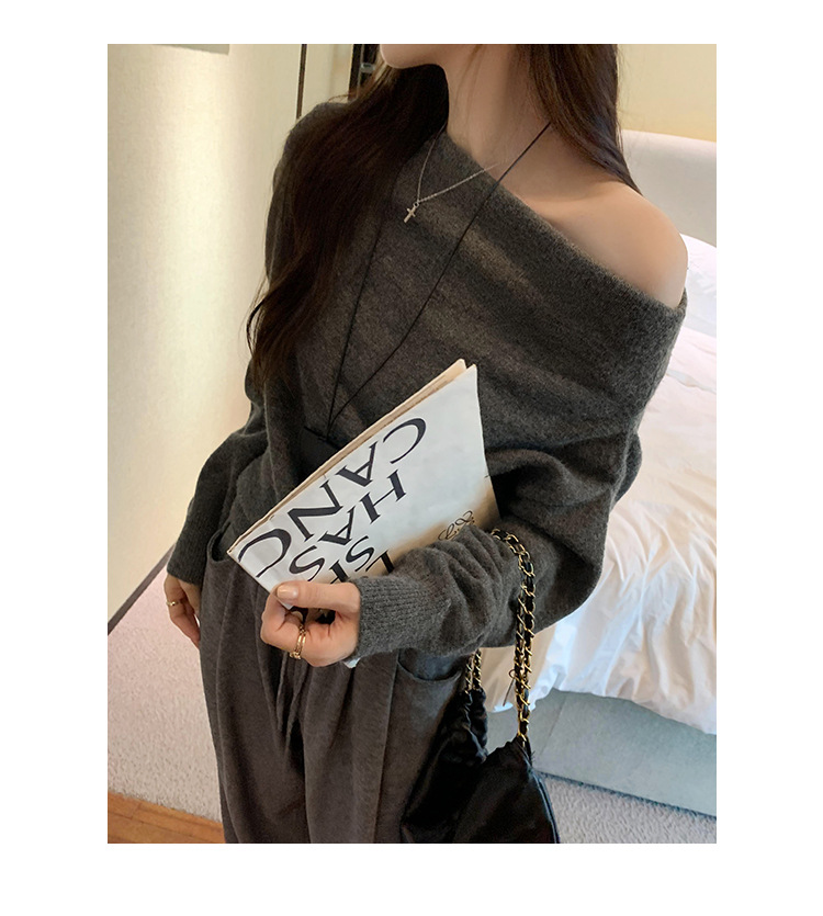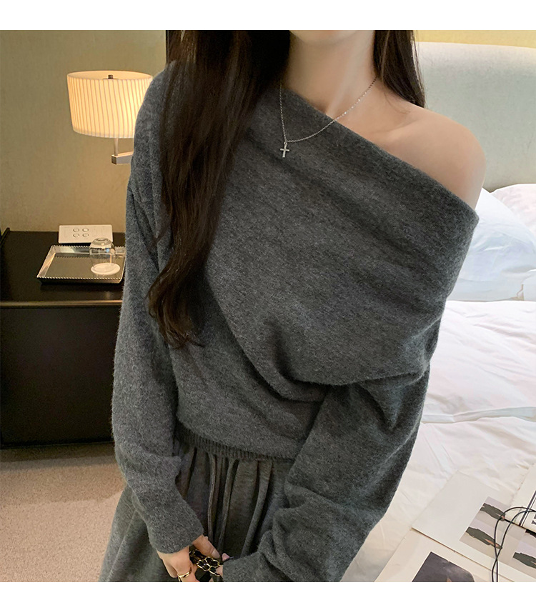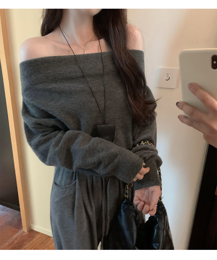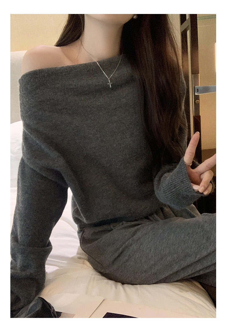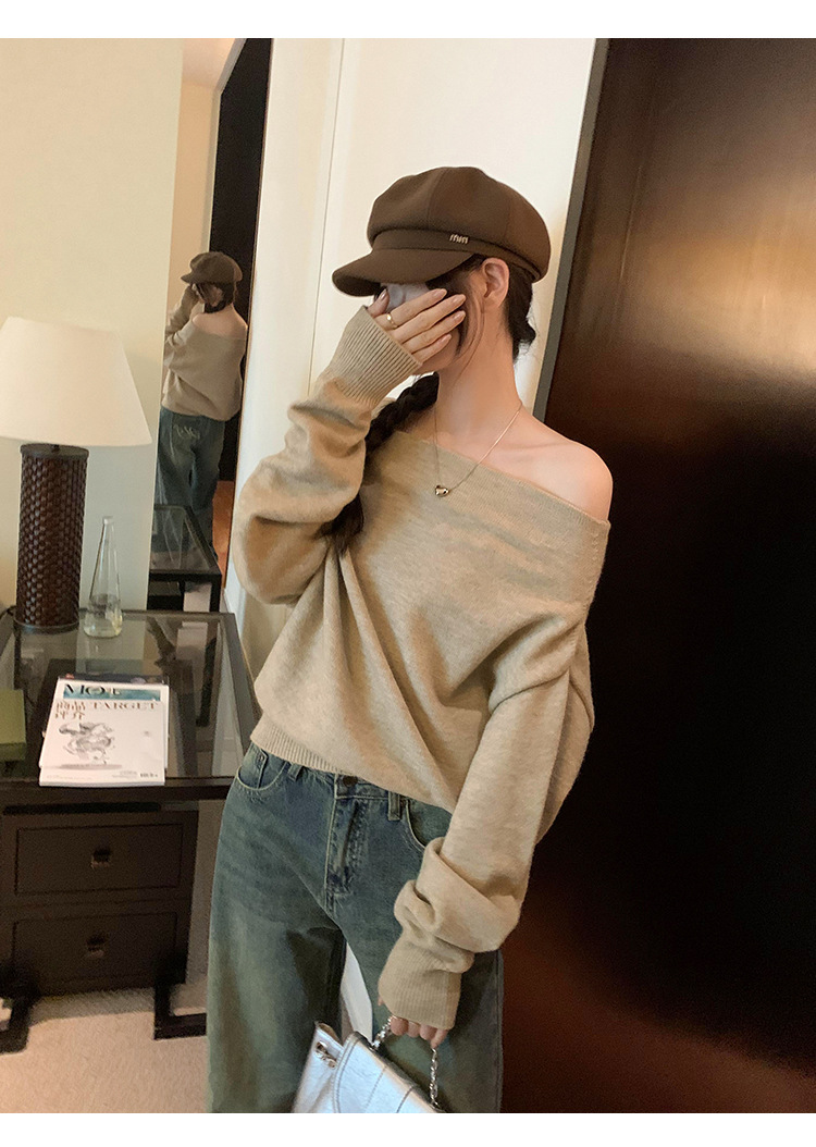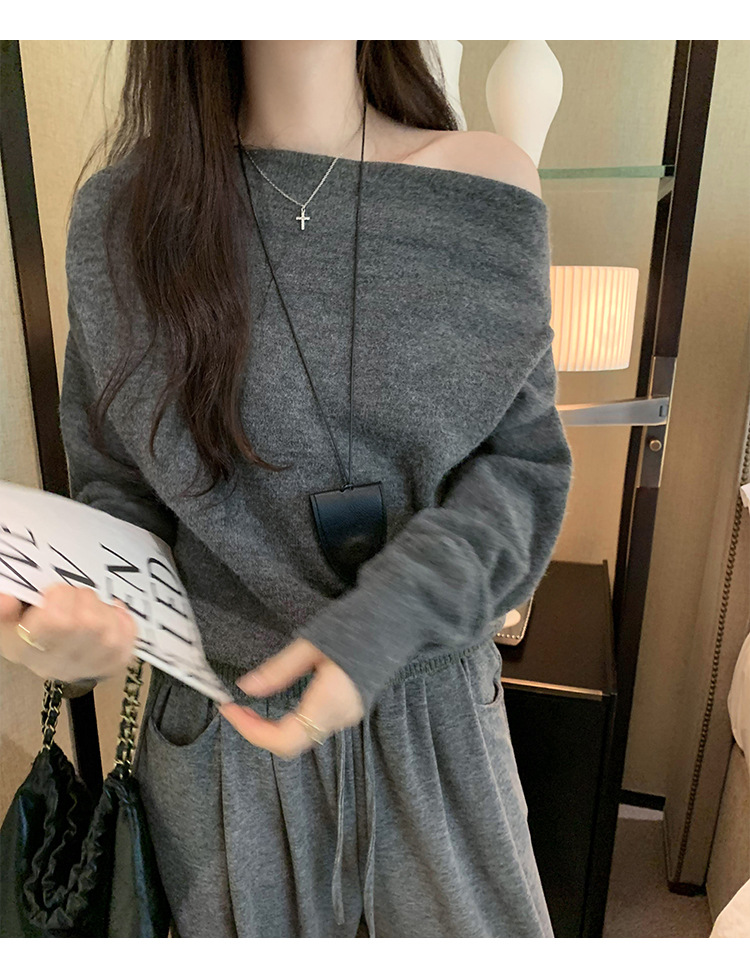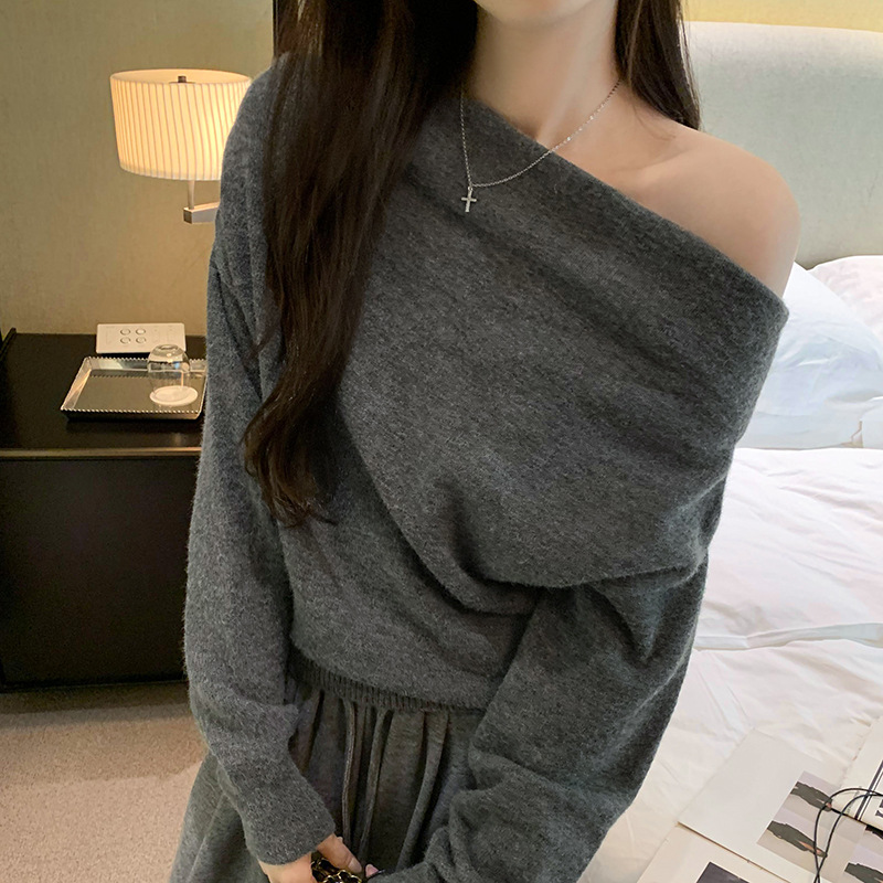 프랑스 스타일 게으른 스타일 오프 숄더 탑 루즈 니트베이스 셔츠 여성의 가을과 겨울 2024 새로운 슬리밍 오프 숄더 스웨터