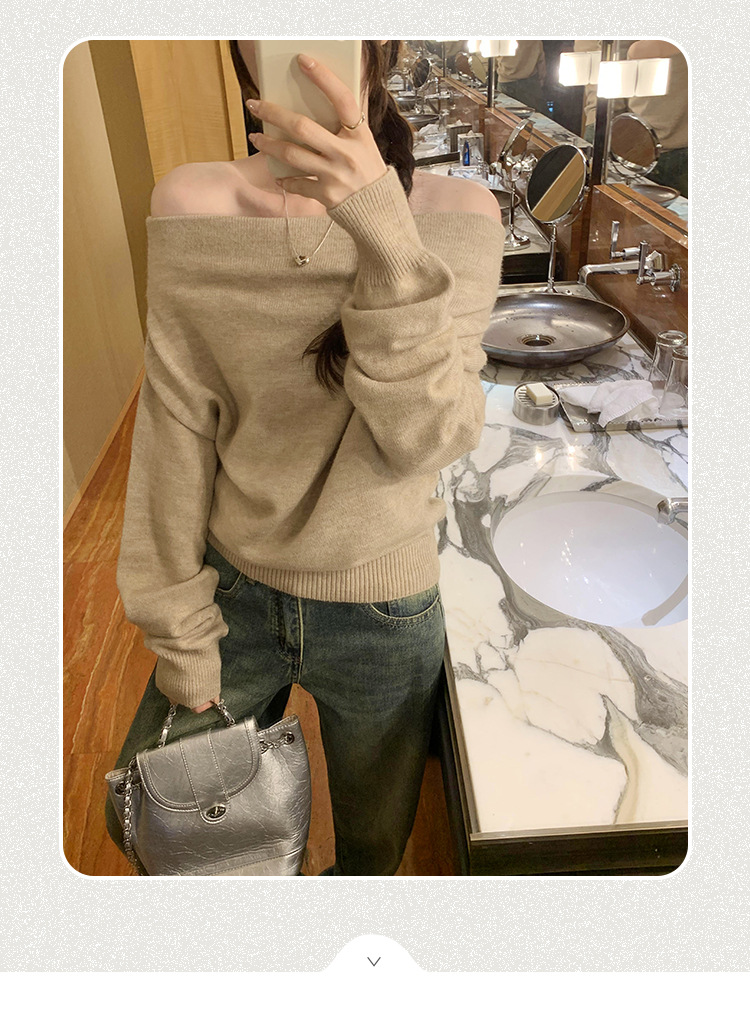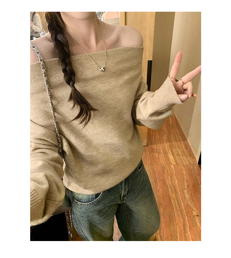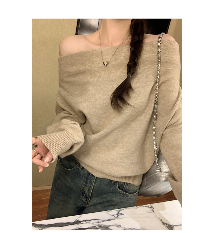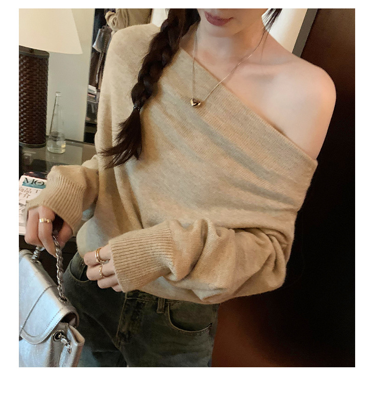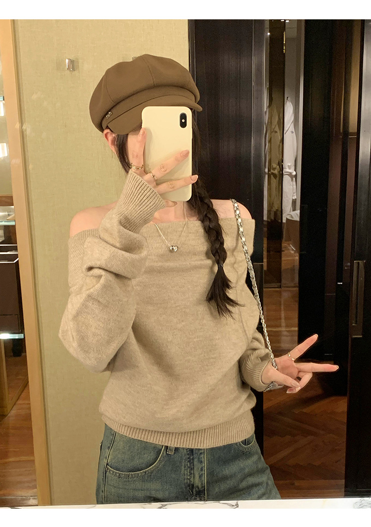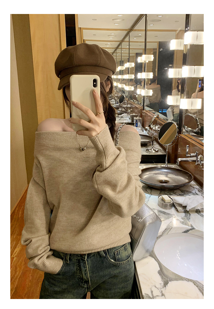 프랑스 스타일 게으른 스타일 오프 숄더 탑 루즈 니트베이스 셔츠 여성의 가을과 겨울 2024 새로운 슬리밍 오프 숄더 스웨터스토어 가기
