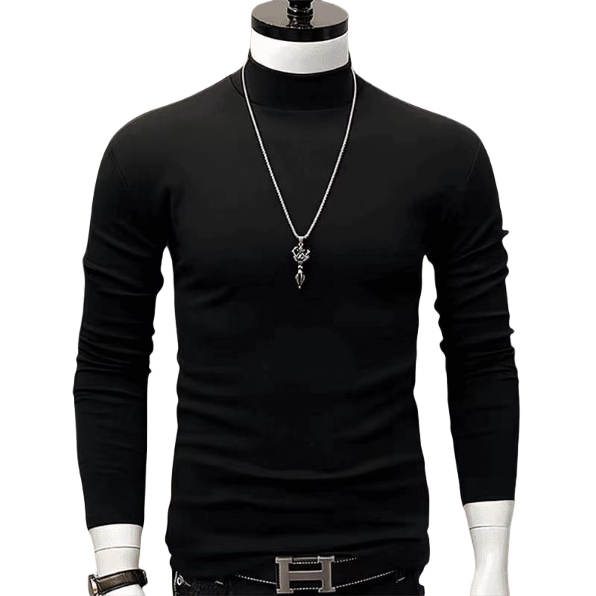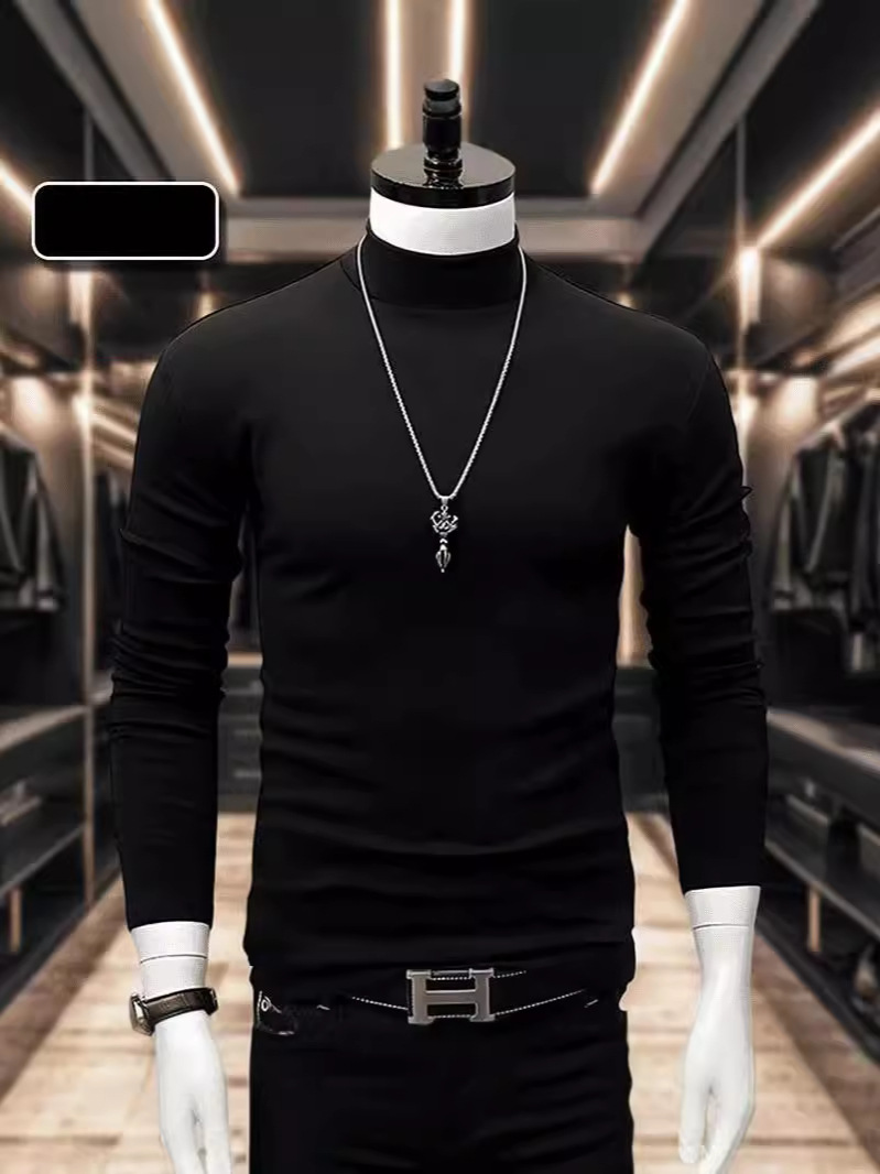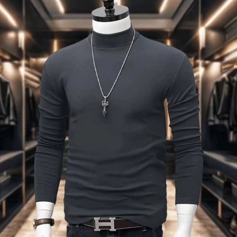인터넷 Celebrant Same Style High Collar Base 남성용 가을 및 겨울 양털 땀 긴팔 유행 슬림핏 탑 따뜻한 유지