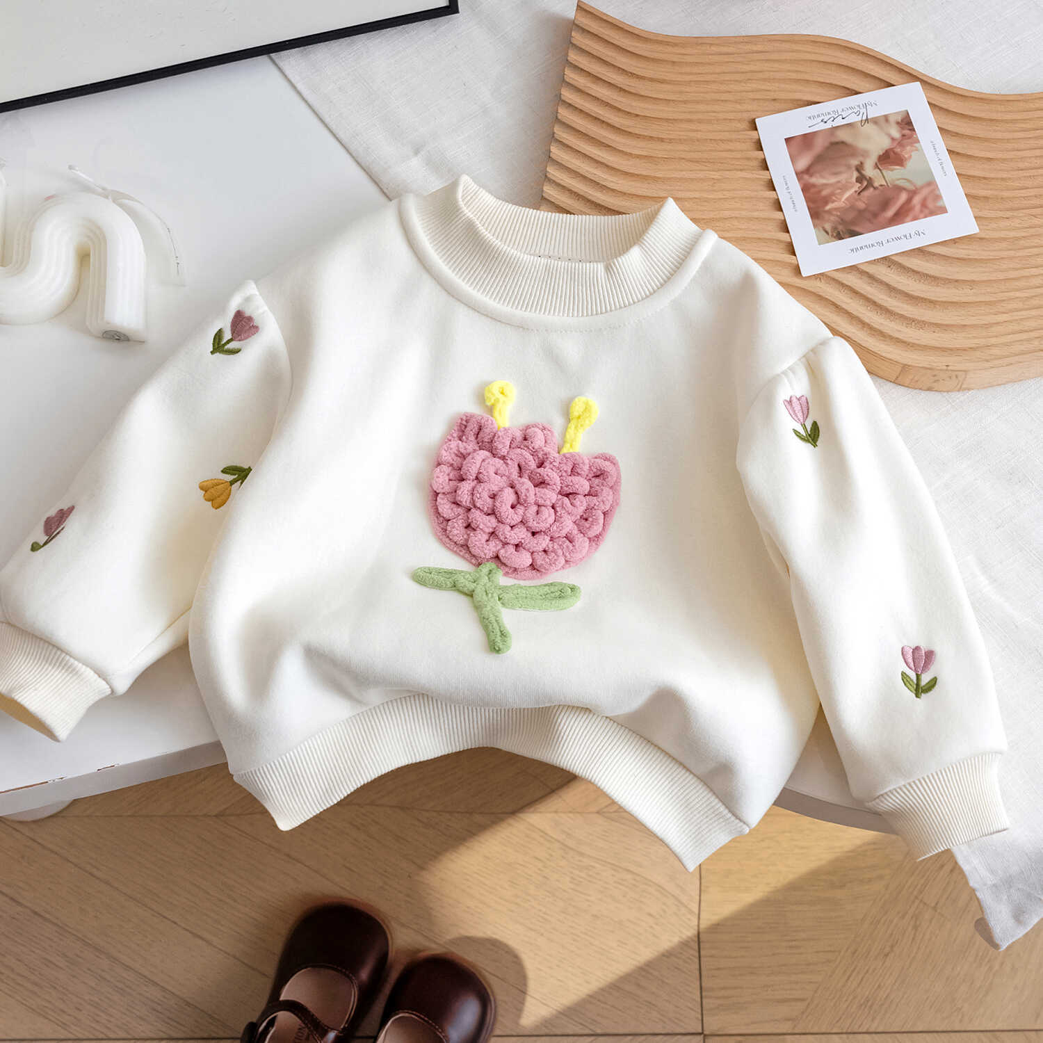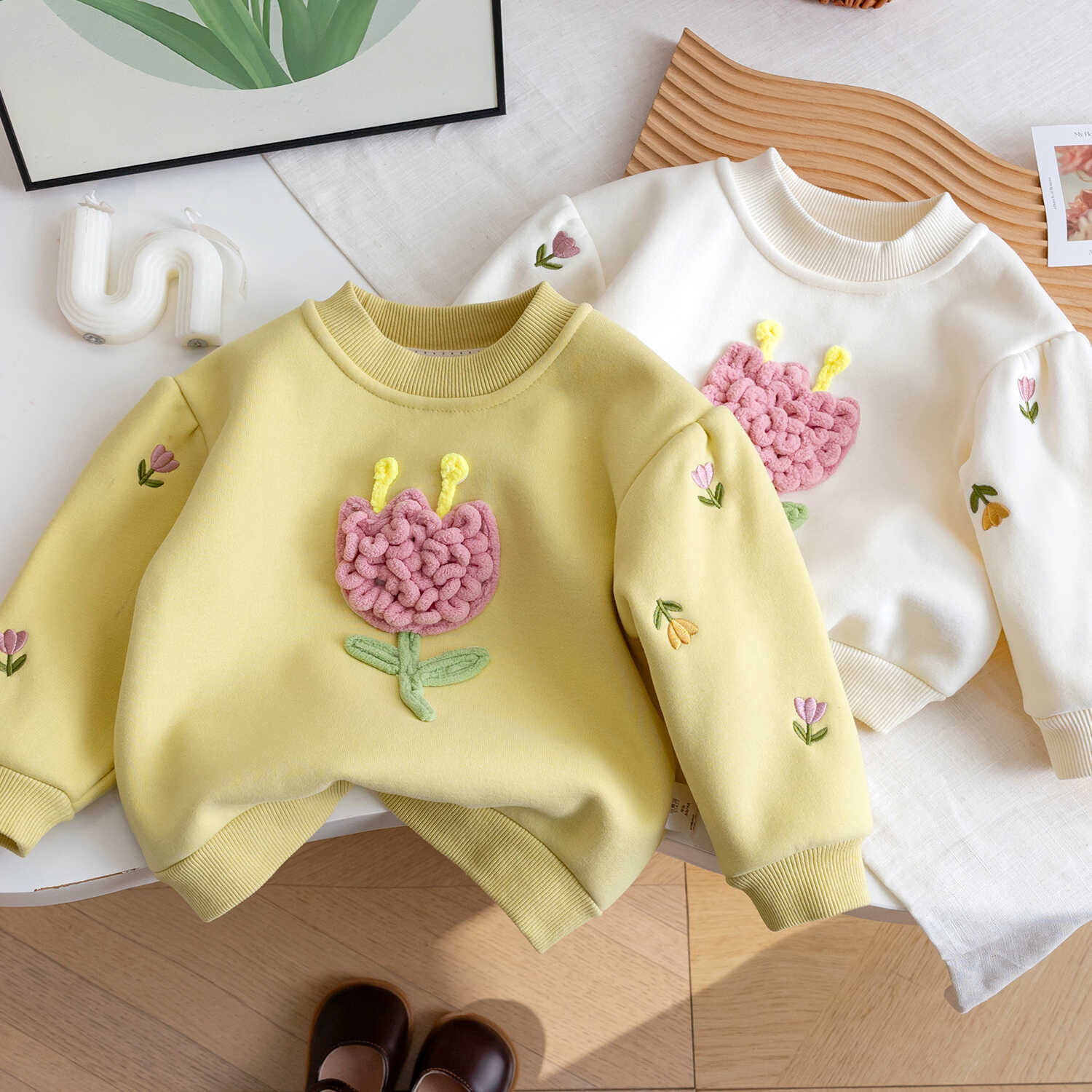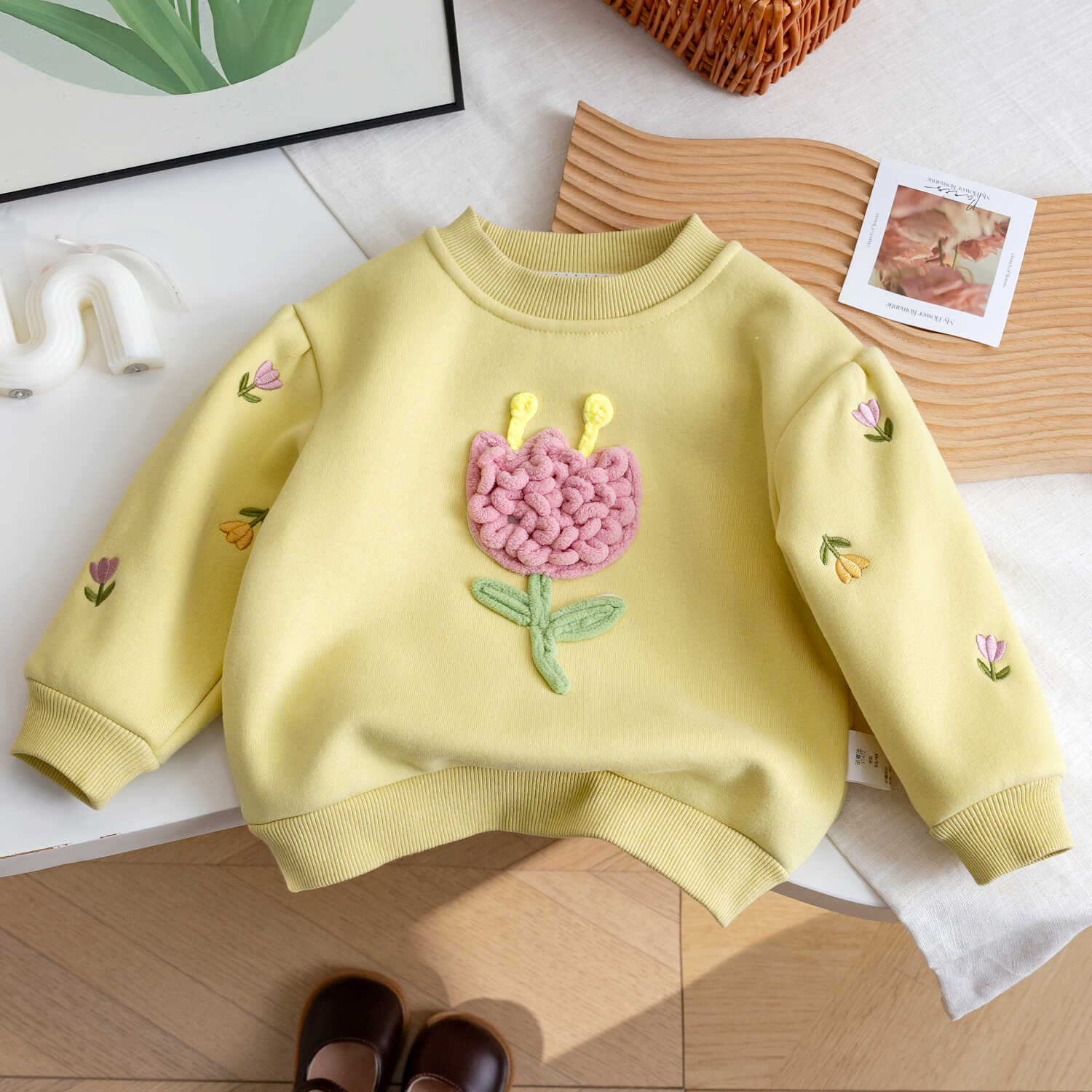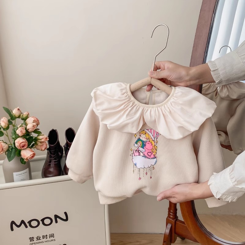 소녀의 가을 겨울 2024 새로운 어린이 기모 공주 아기 소녀베이스 셔츠 어린이 꽃 스타일 탑스토어 가기