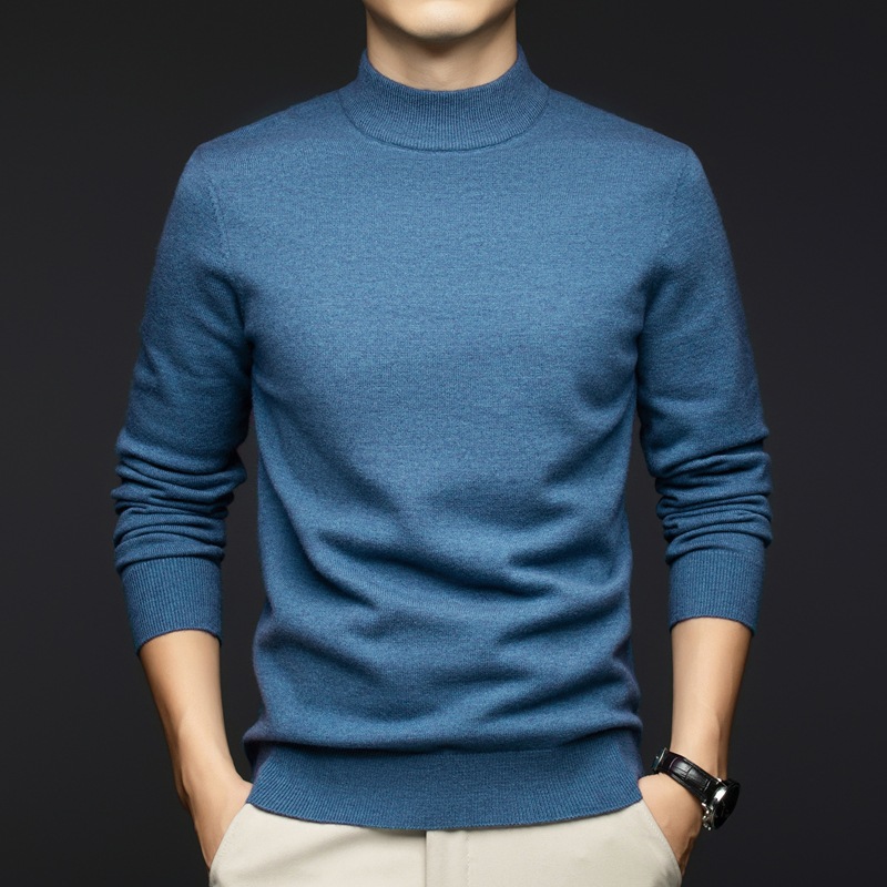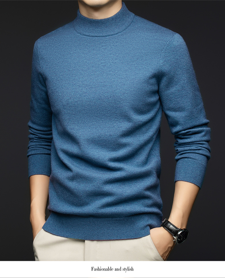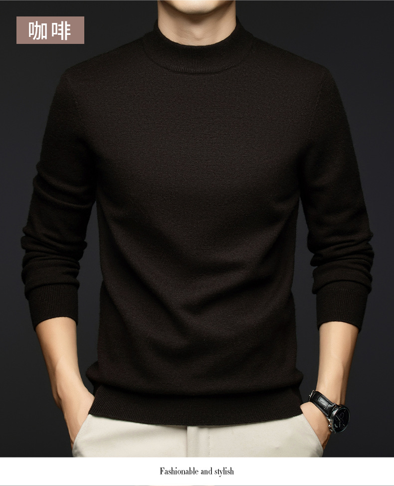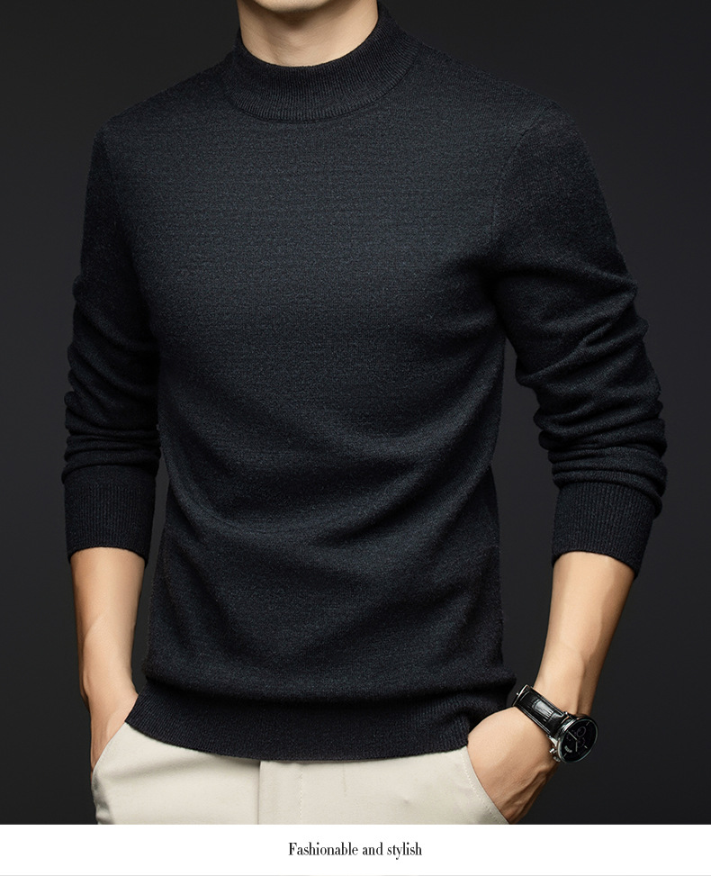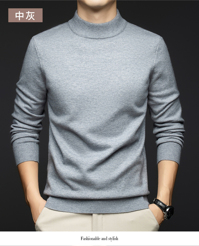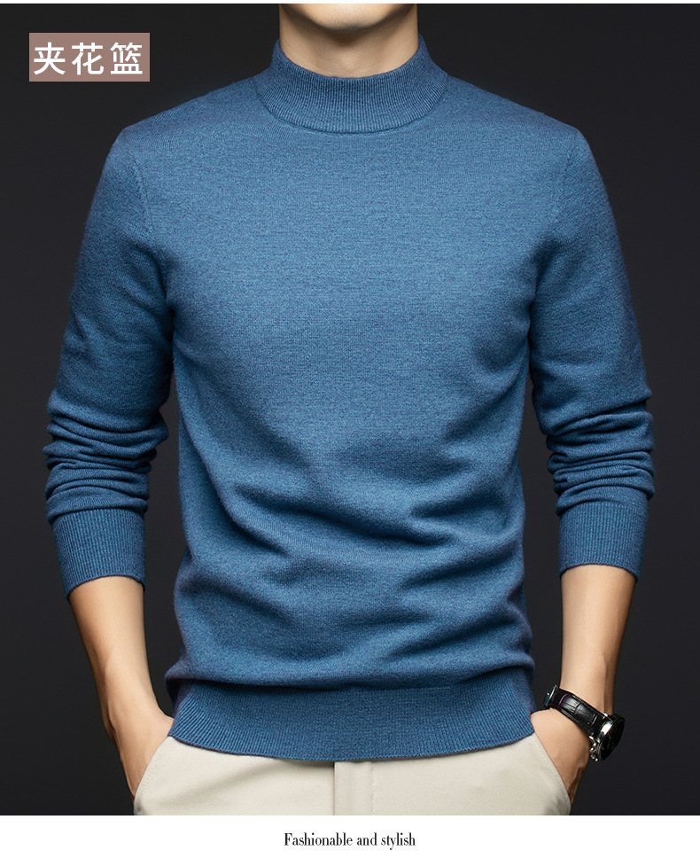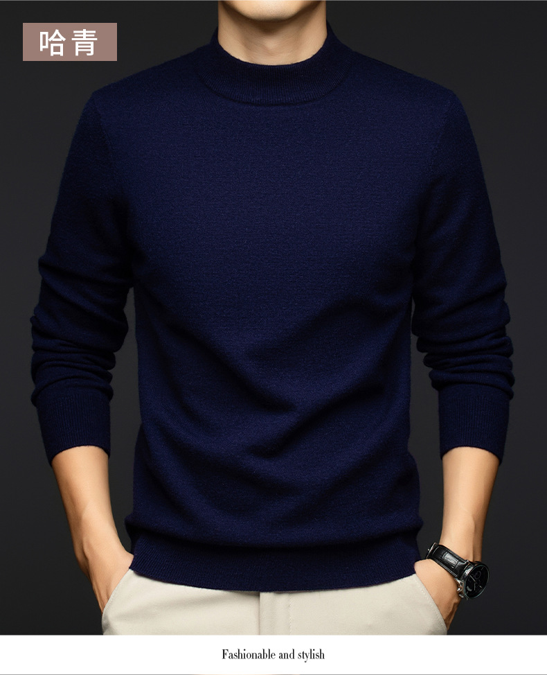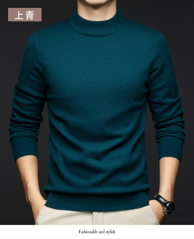 소모사 기계 세탁 가능한 부드러운 양모 스웨터 하프 터틀넥 기본 470g 두꺼운 솔리드 컬러 기본 니트 스웨터 남성용스토어 가기
