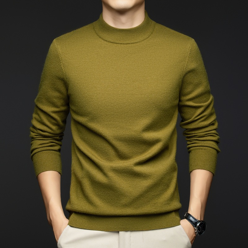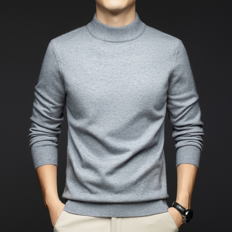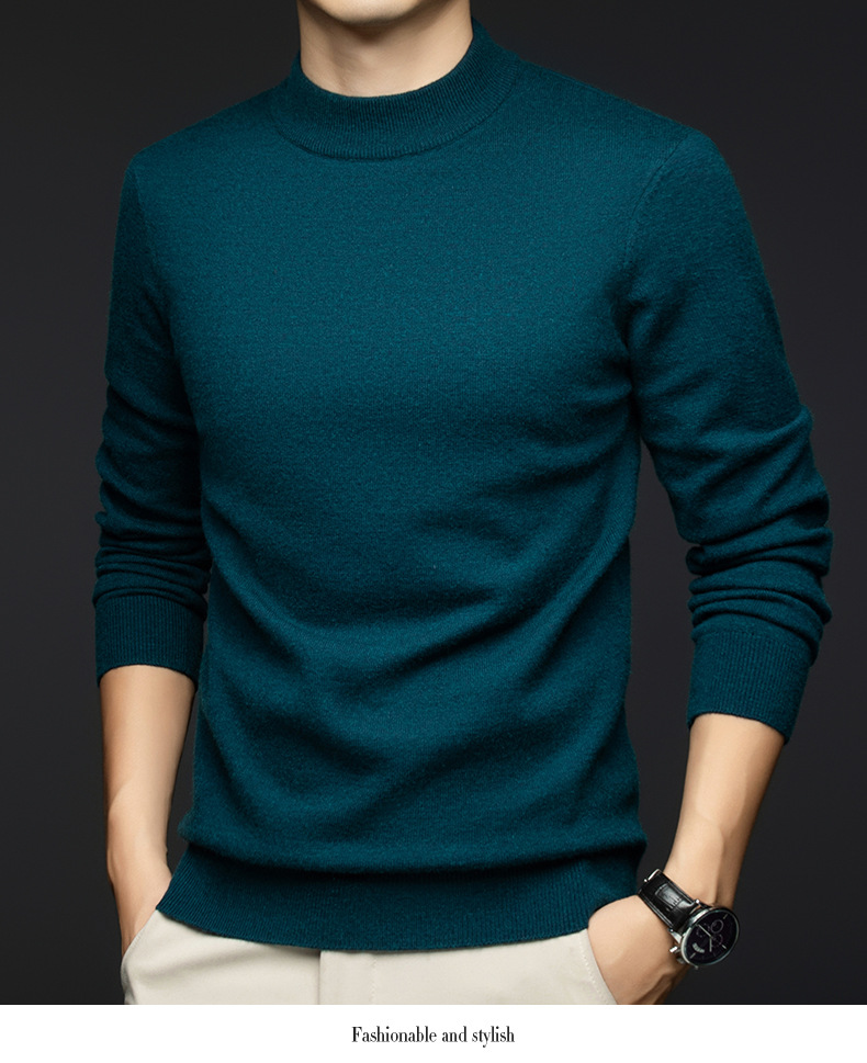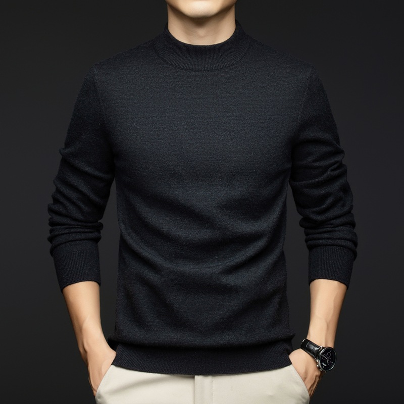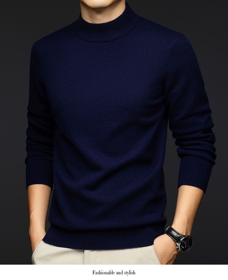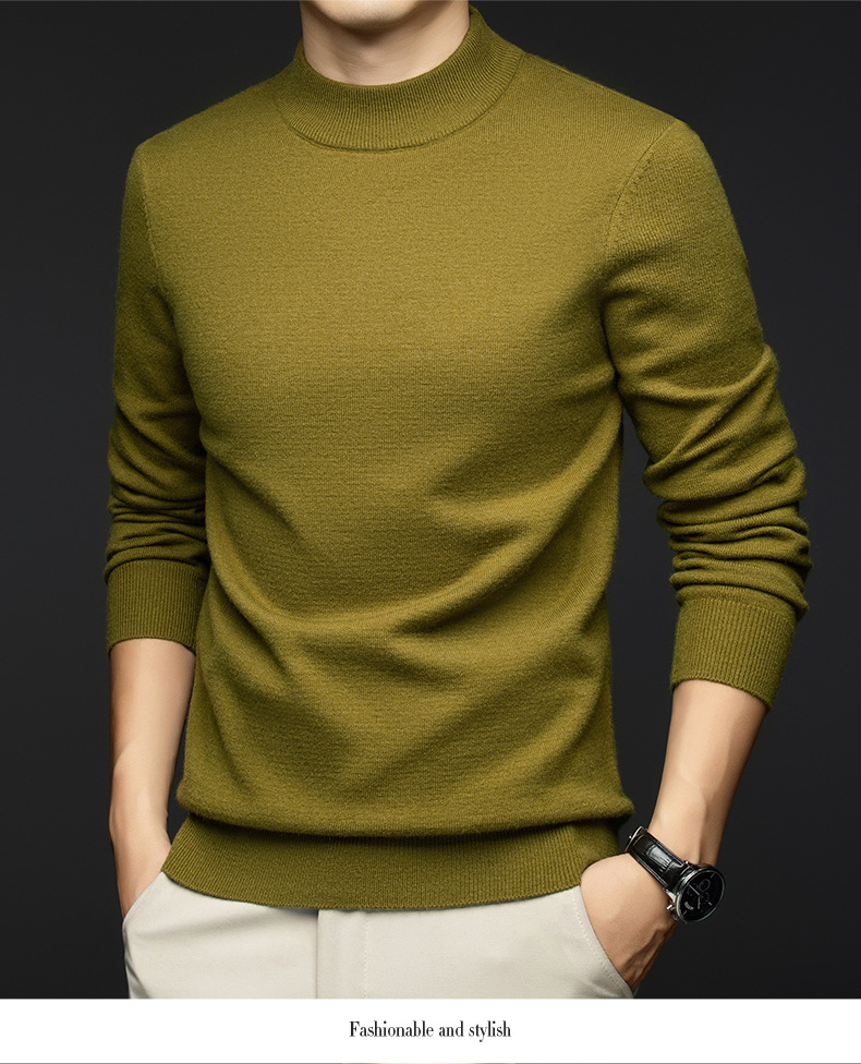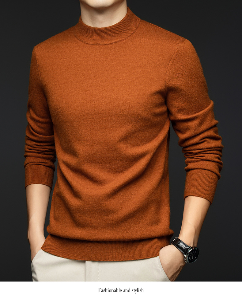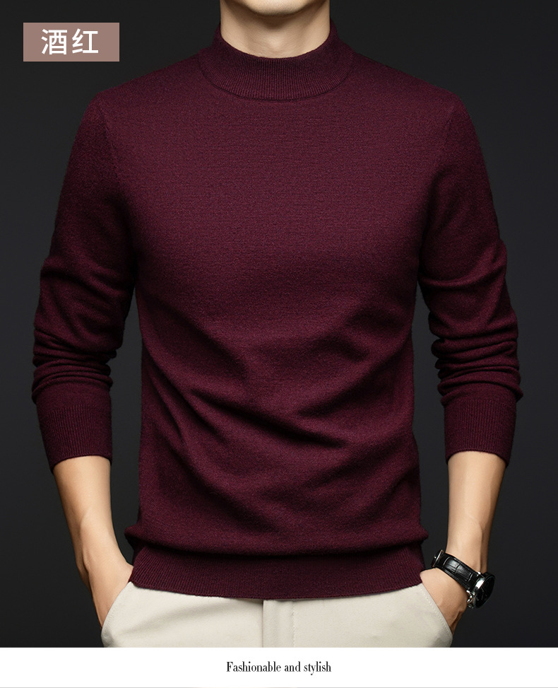 소모사 기계 세탁 가능한 부드러운 양모 스웨터 하프 터틀넥 기본 470g 두꺼운 솔리드 컬러 기본 니트 스웨터 남성용스토어 가기