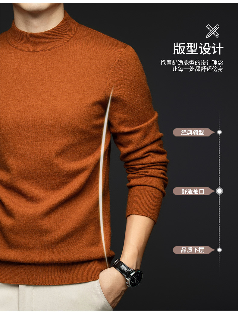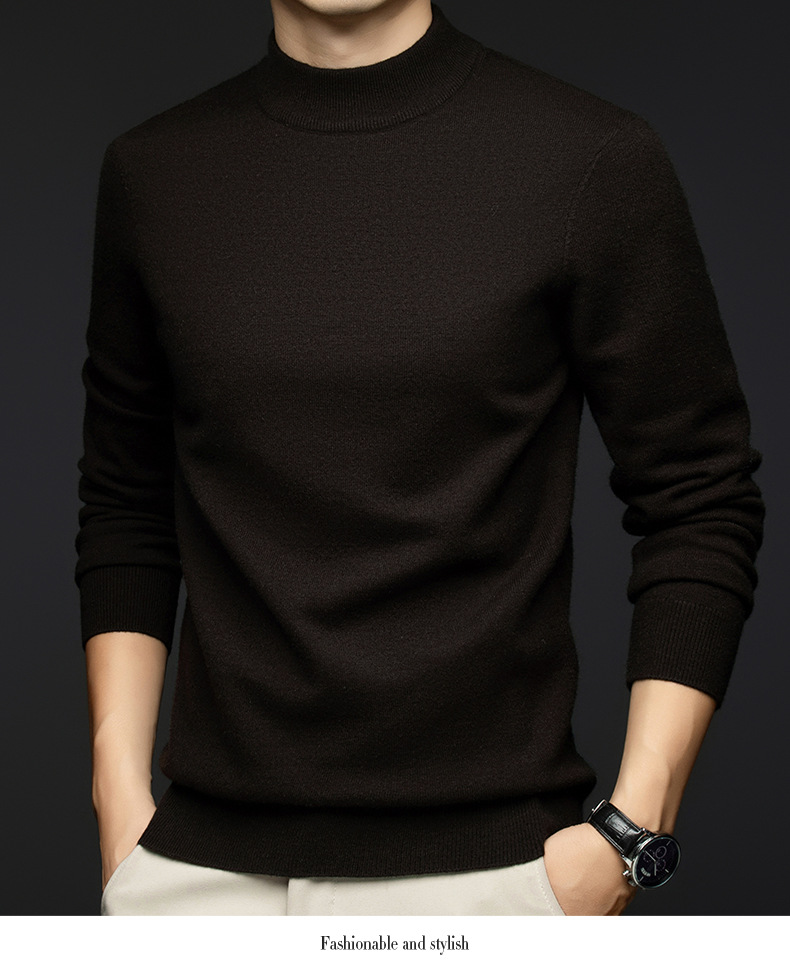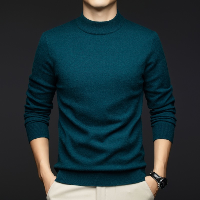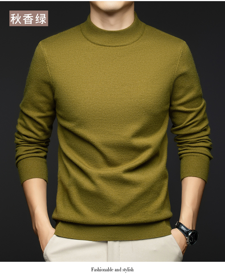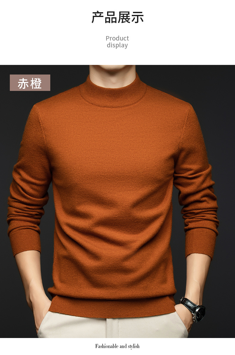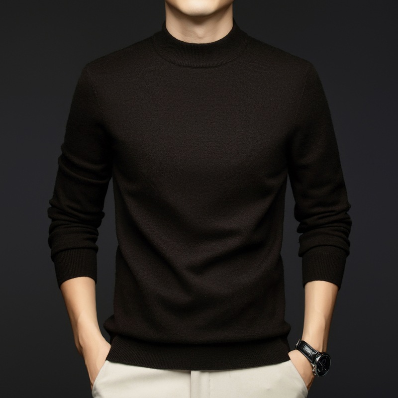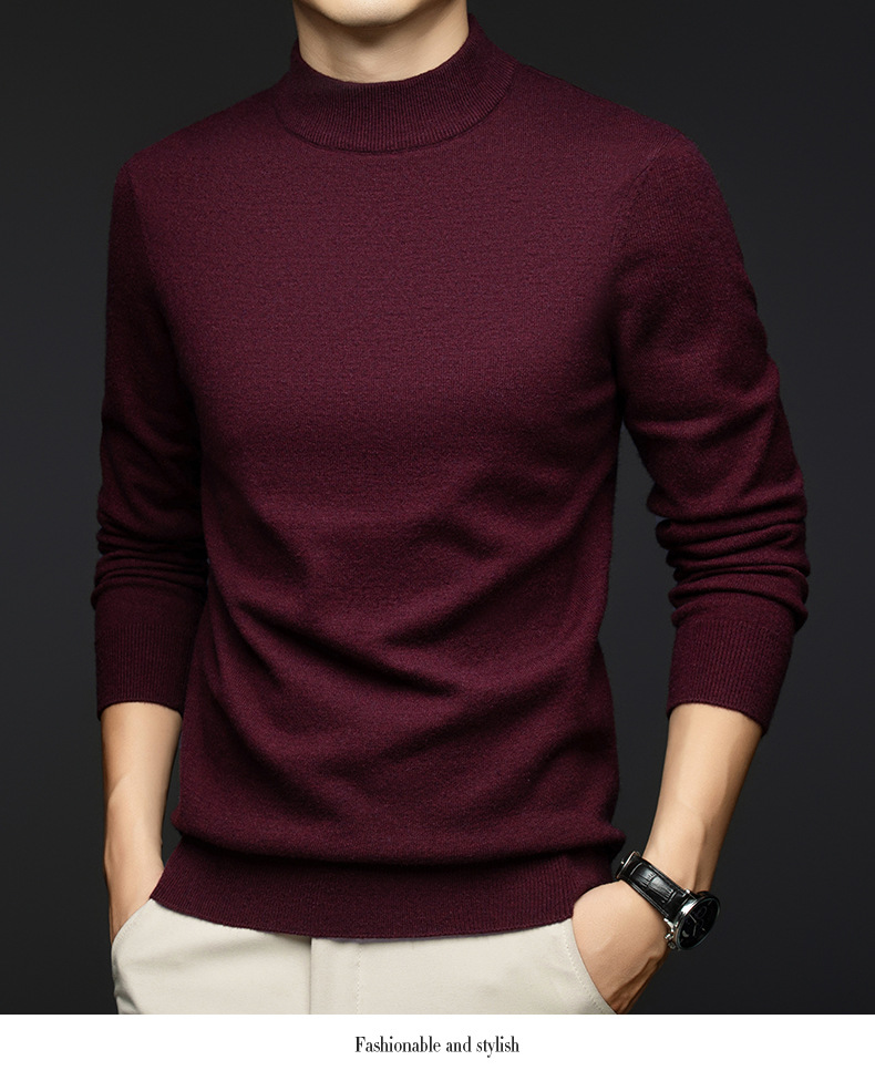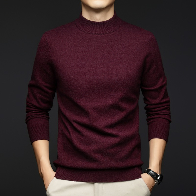 소모사 기계 세탁 가능한 부드러운 양모 스웨터 하프 터틀넥 기본 470g 두꺼운 솔리드 컬러 기본 니트 스웨터 남성용스토어 가기