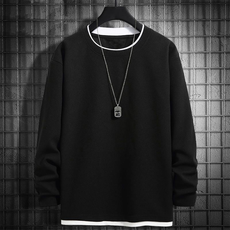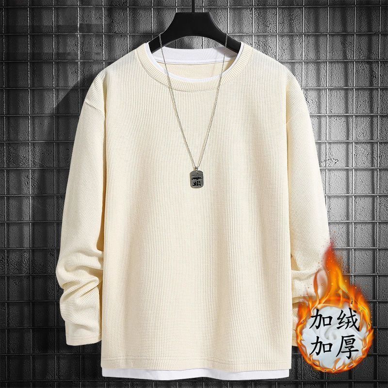 와플리 스웨터 남자 가을과 겨울 가짜 투피스 긴팔 티셔츠 기모 베이스 셔츠 루즈 플러스 사이즈 솔리드 컬러 탑스토어 가기