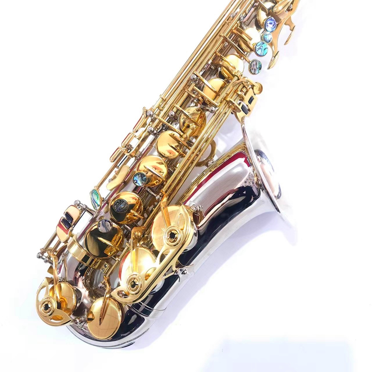 크로스보더 공급 E♭조 니켈 도금 금키 알토 색소폰 자개 잠금장치 화이트 니켈 SAX 금속 관악기 연주형스토어 가기