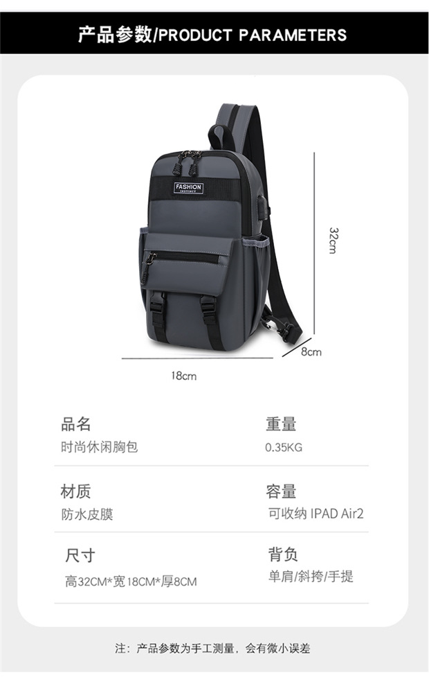 2024 새로운 남자 가슴 가방 방수 스포츠 어깨 가방 대용량 크로스 바디 가방 다기능 야외 가슴 가방