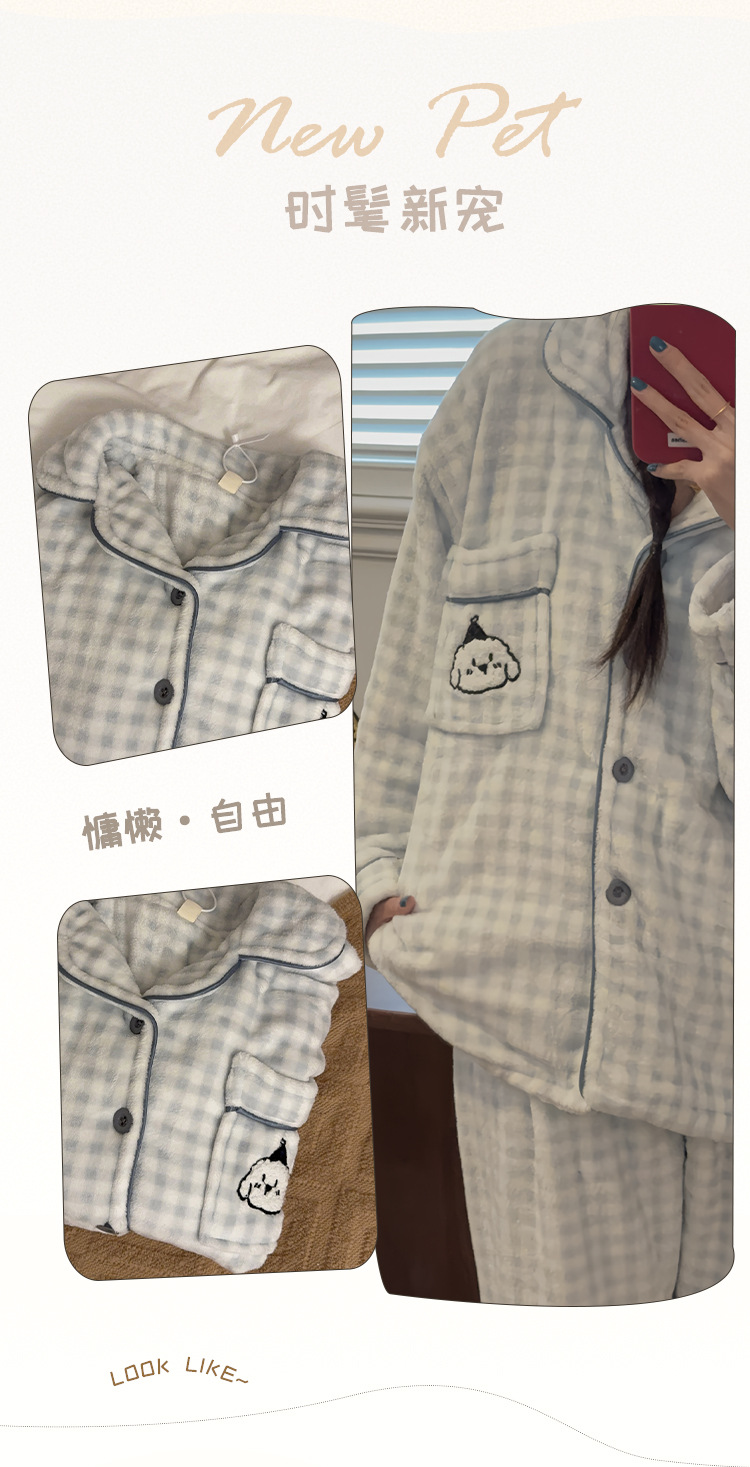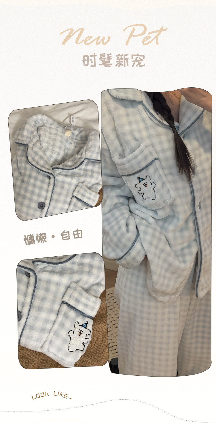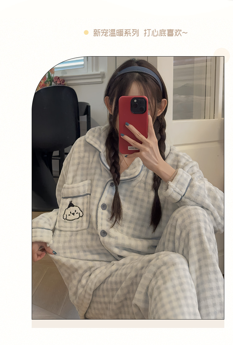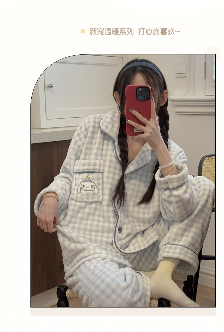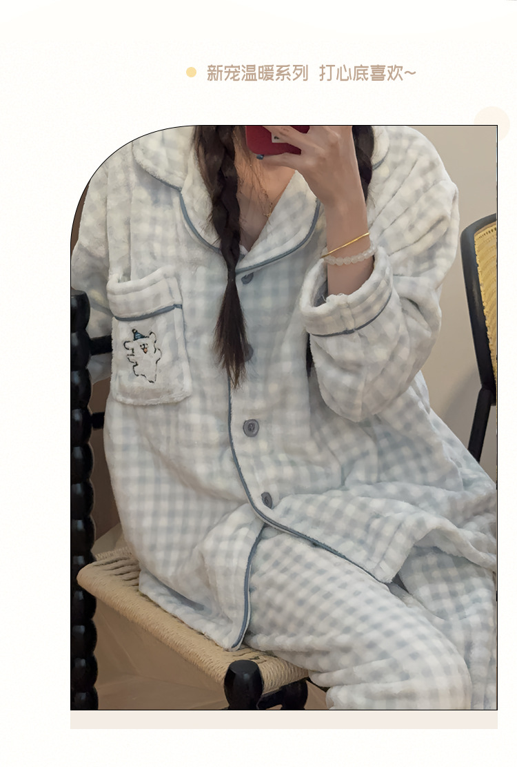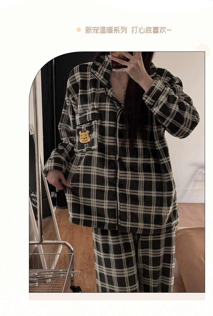 Ins 일본식 격자 무늬 잠옷 여성의 가을과 겨울 플란넬 두꺼운 따뜻한 만화 의상 투피스 세트스토어 가기