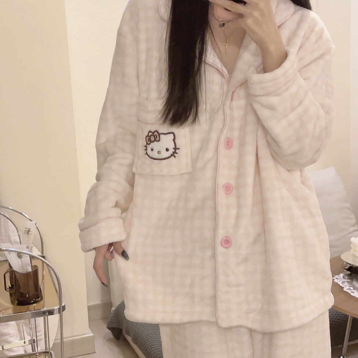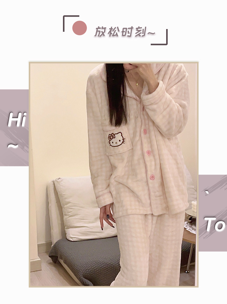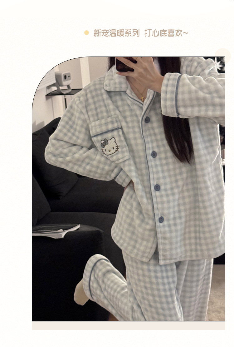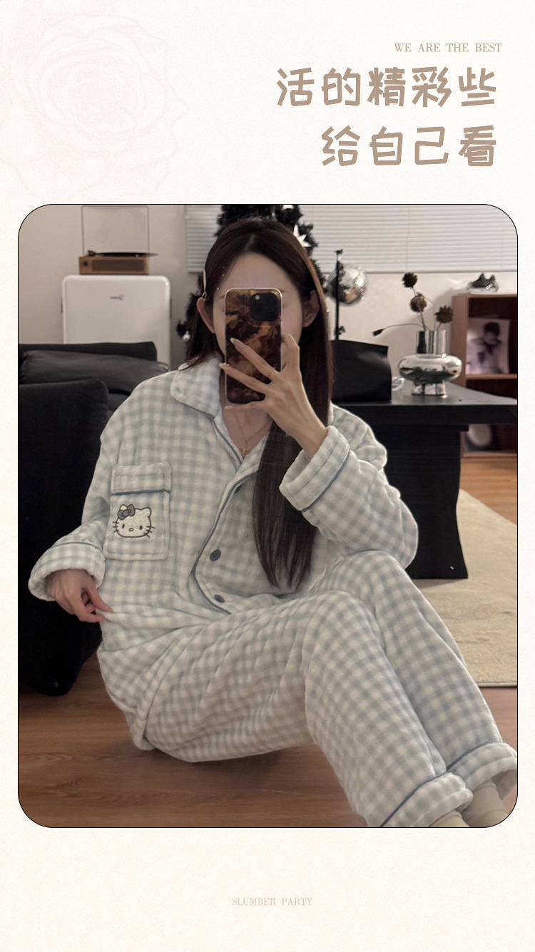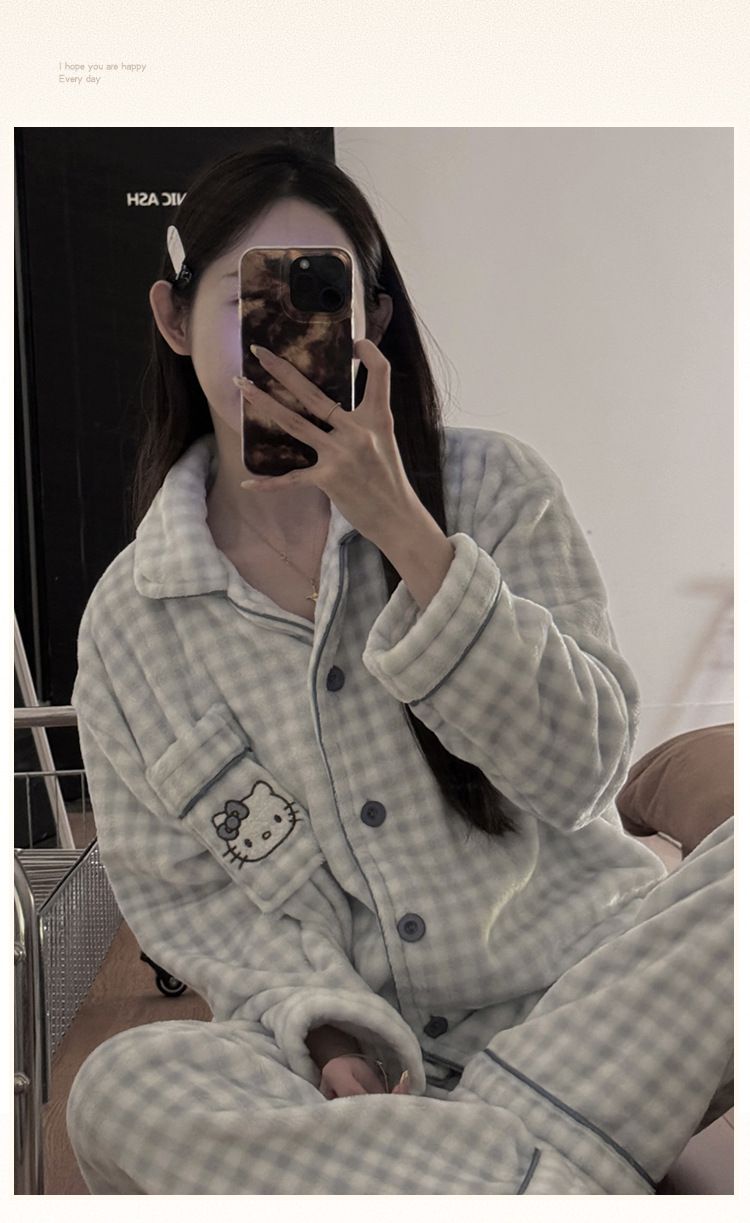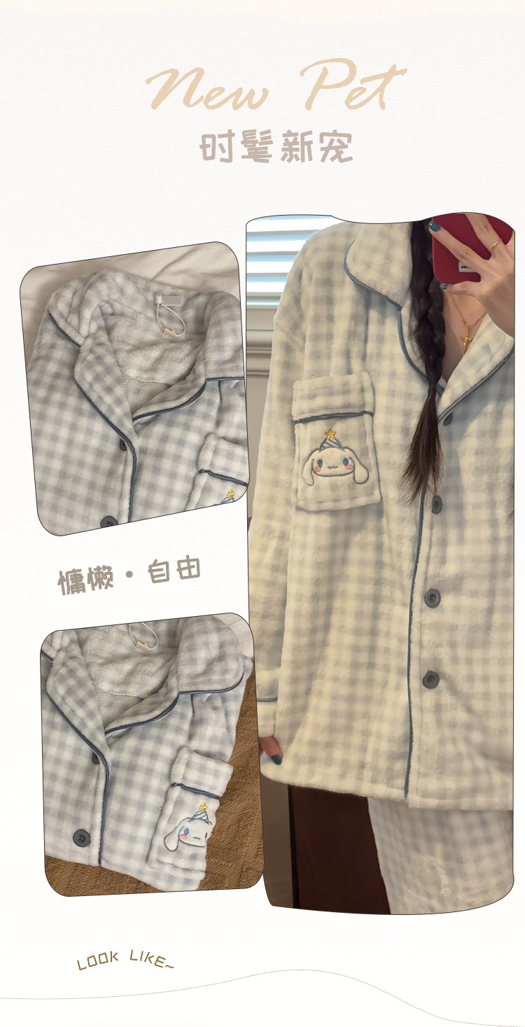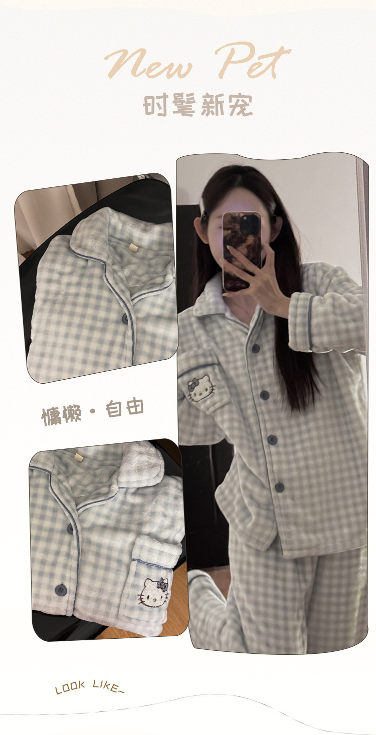 Ins 일본식 격자 무늬 잠옷 여성의 가을과 겨울 플란넬 두꺼운 따뜻한 만화 의상 투피스 세트스토어 가기