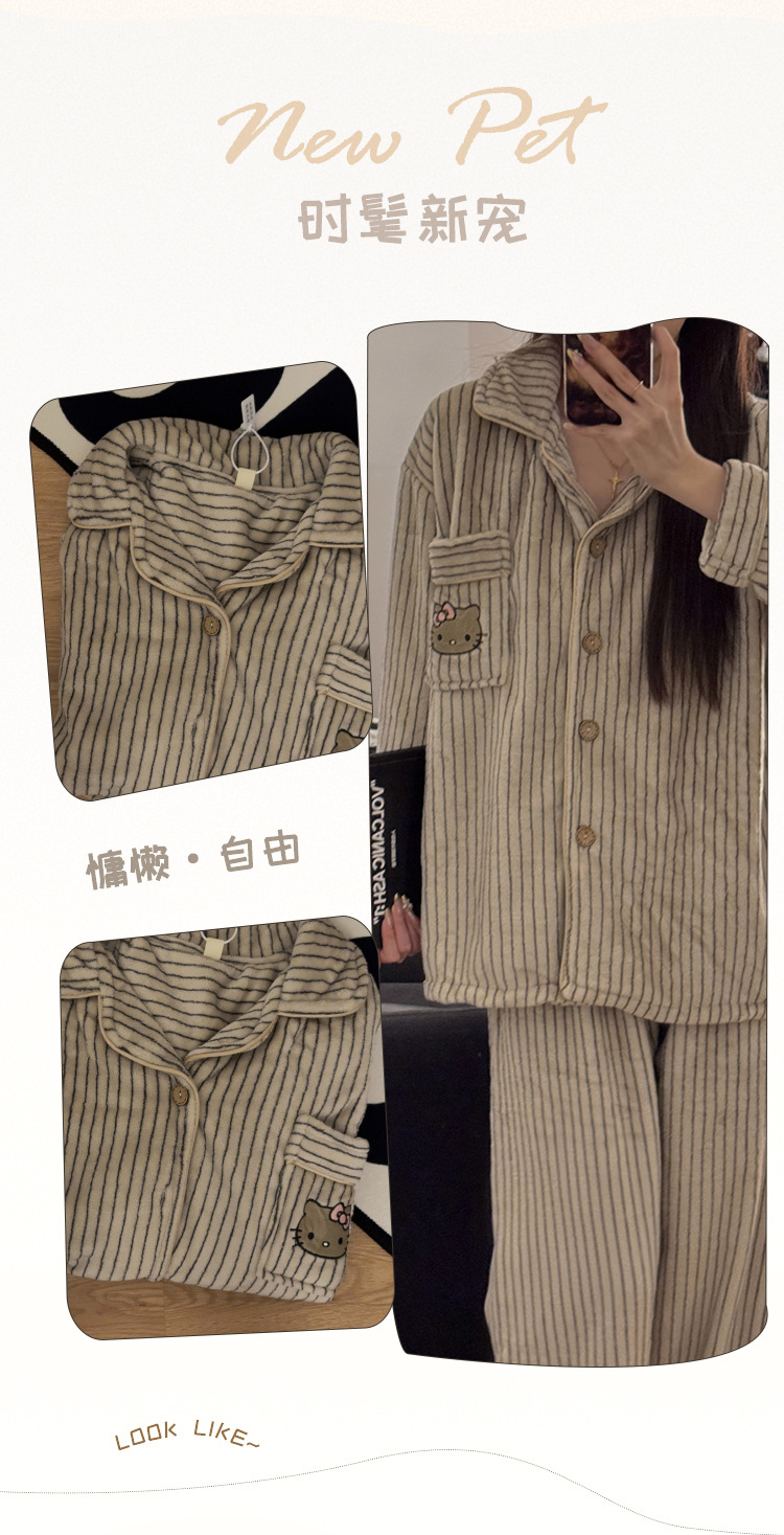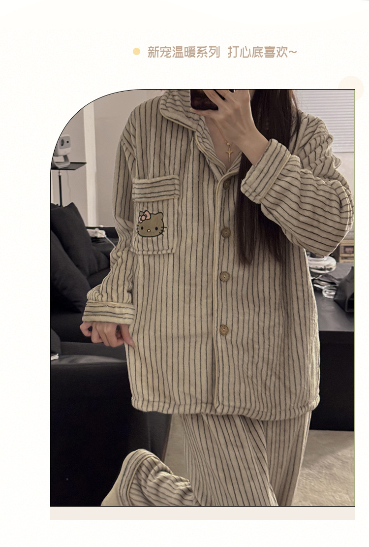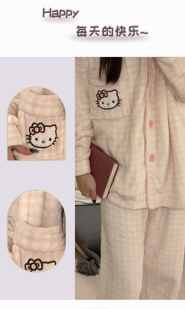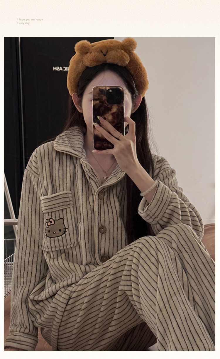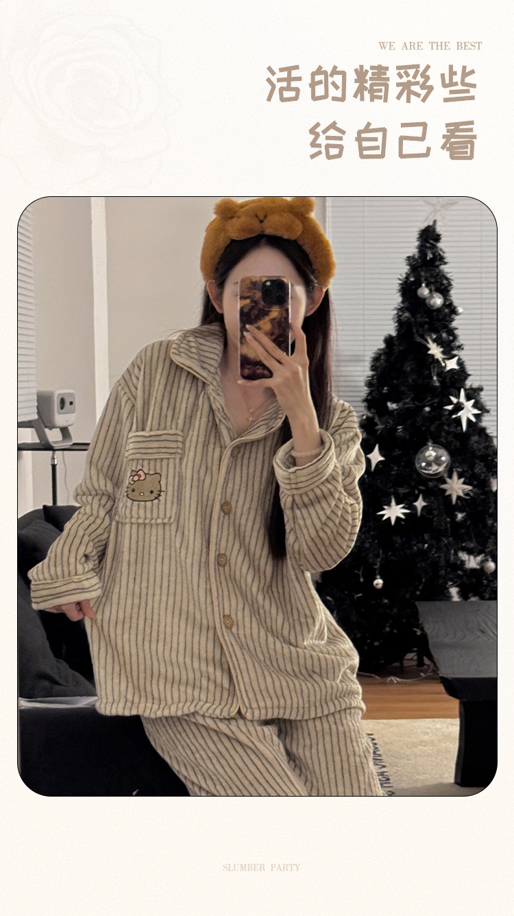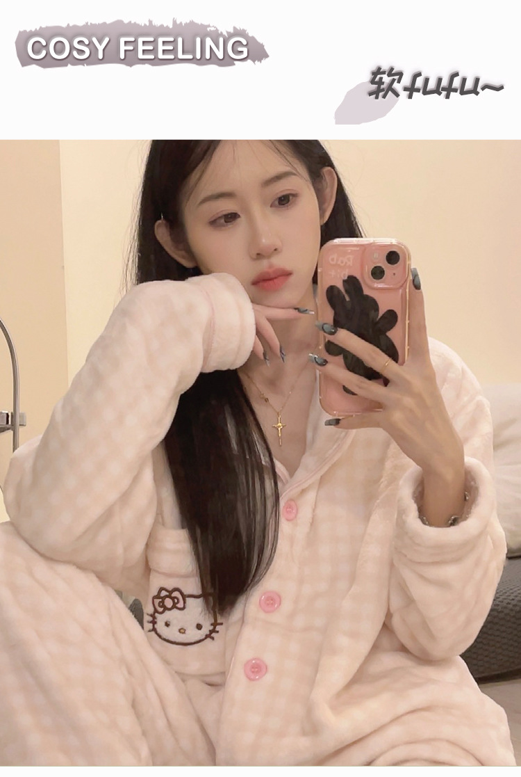 Ins 일본식 격자 무늬 잠옷 여성의 가을과 겨울 플란넬 두꺼운 따뜻한 만화 의상 투피스 세트스토어 가기