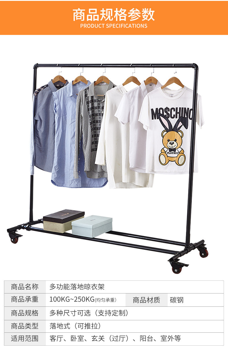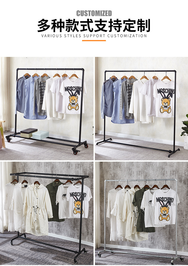도매 물 파이프 이동식 바닥 행거 갠트리 랙 건조 랙 단일 극 두꺼운 철 의류 랙 도르래스토어 가기