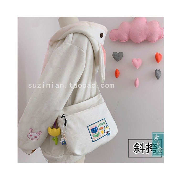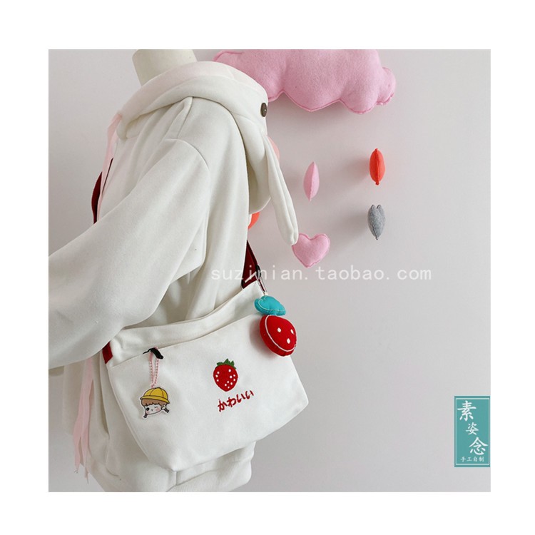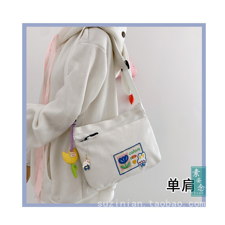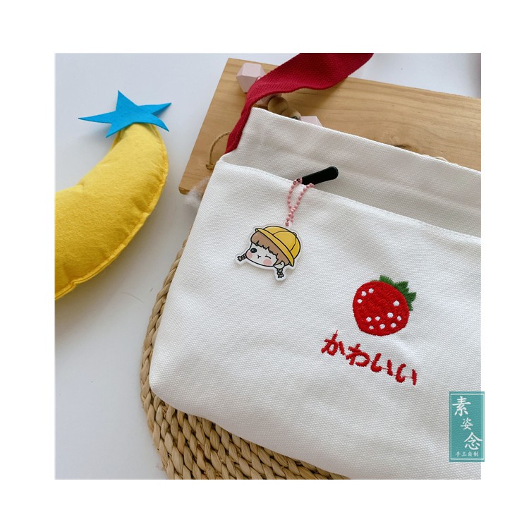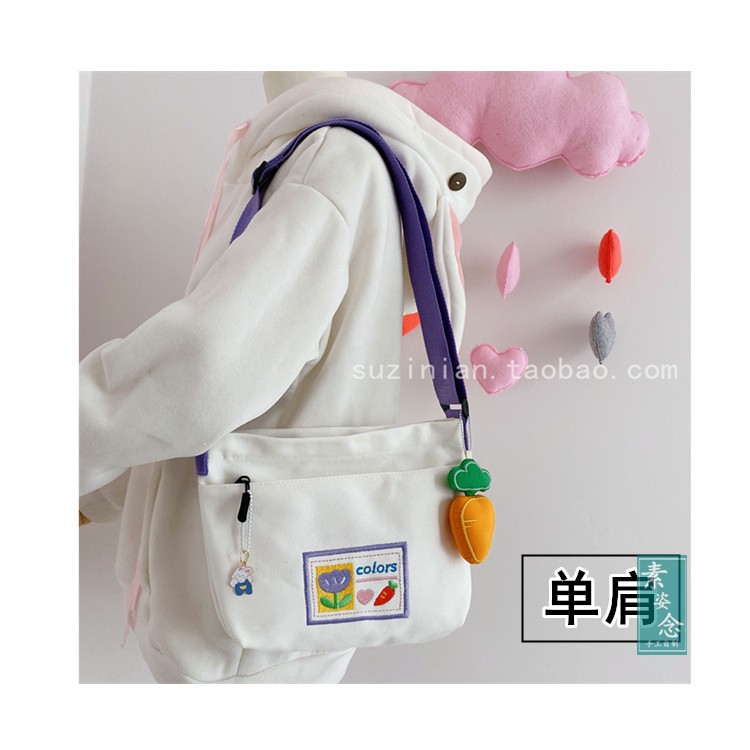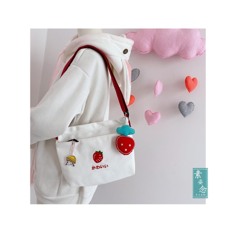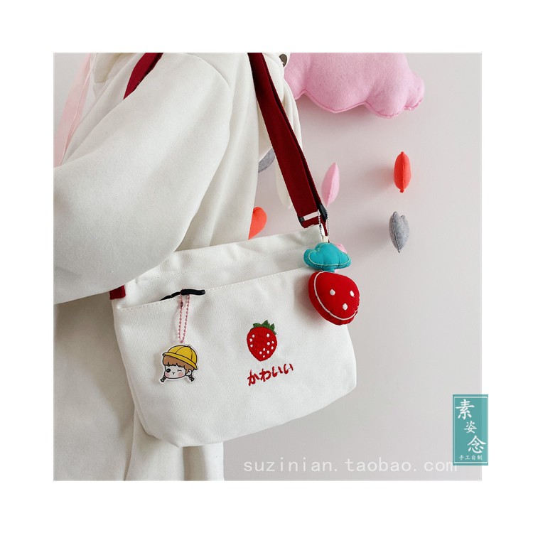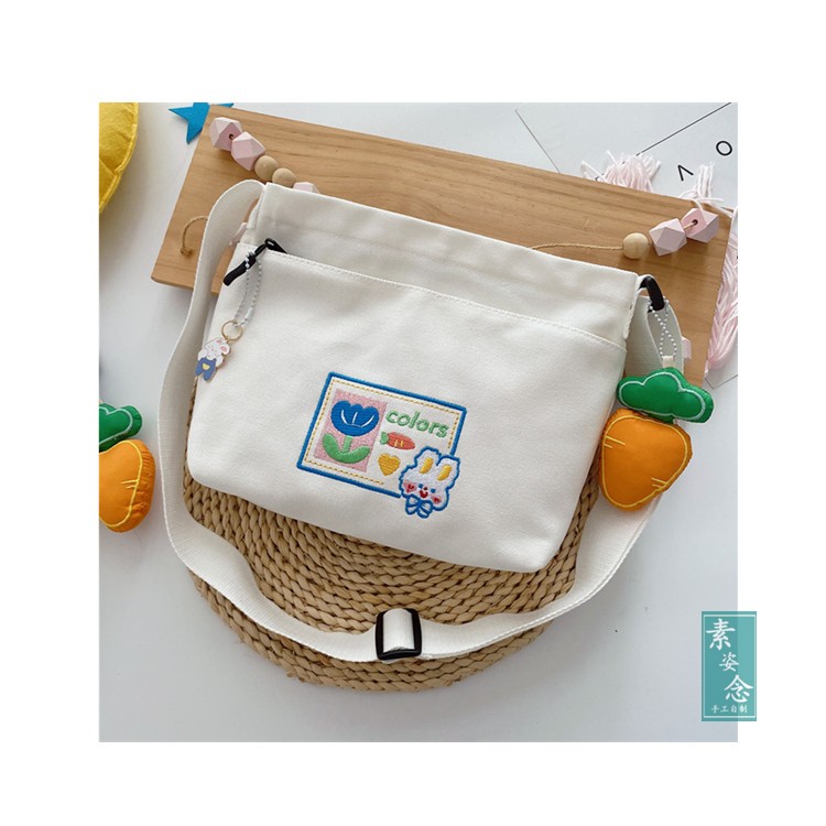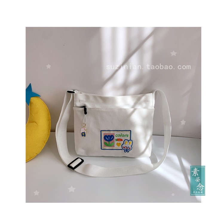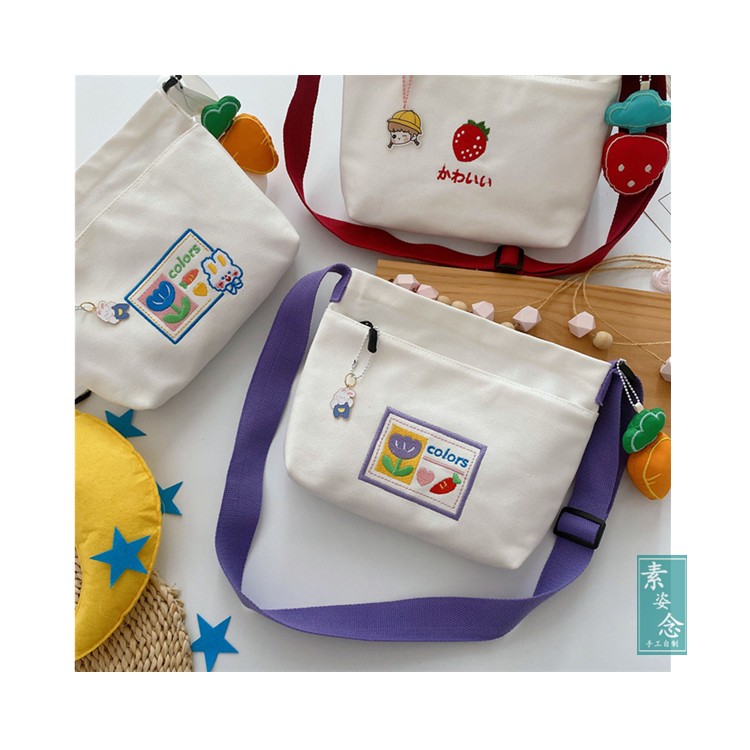 여름 틈새 Ins 귀여운 스몰 사이즈 캔버스 가방 여성과 어린이 크로스 바디 가방 어깨 가방 간단한 학생 헝겊 가방스토어 가기