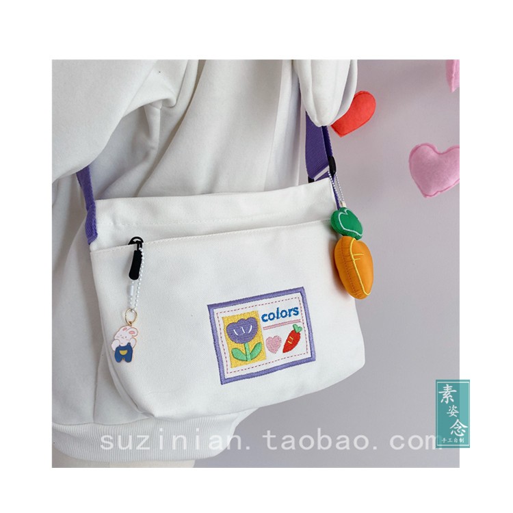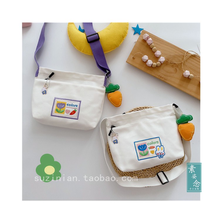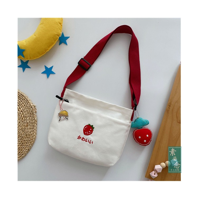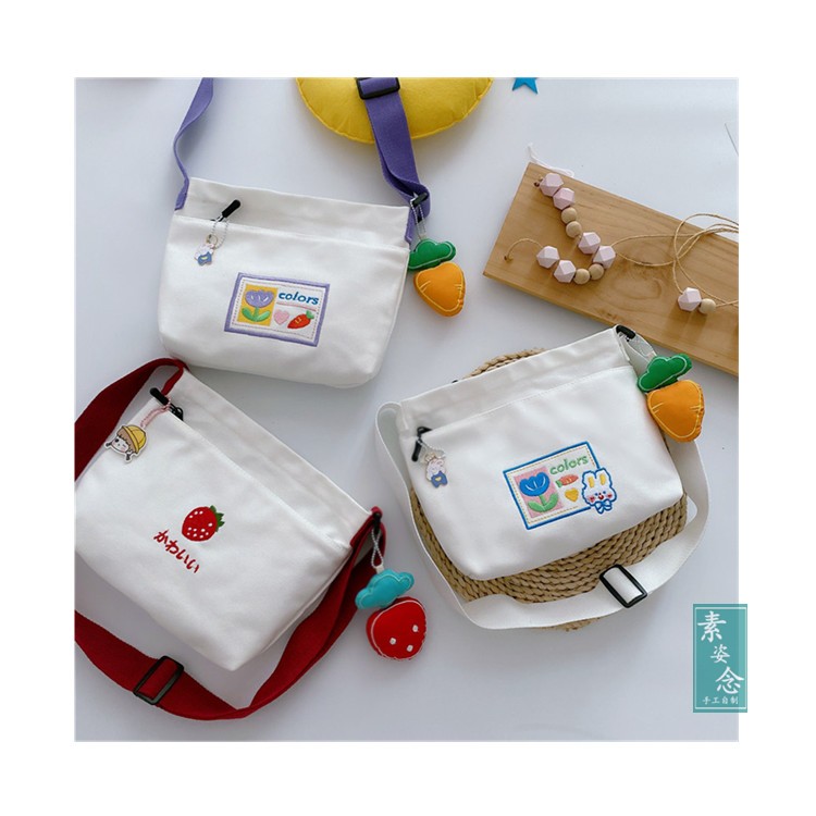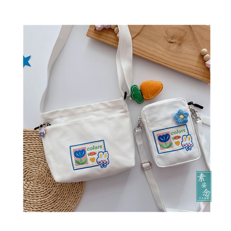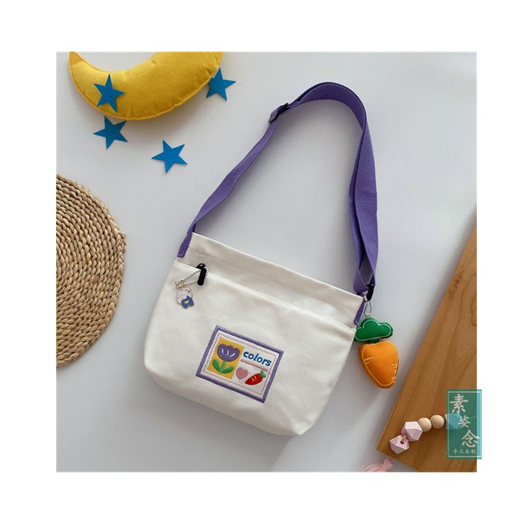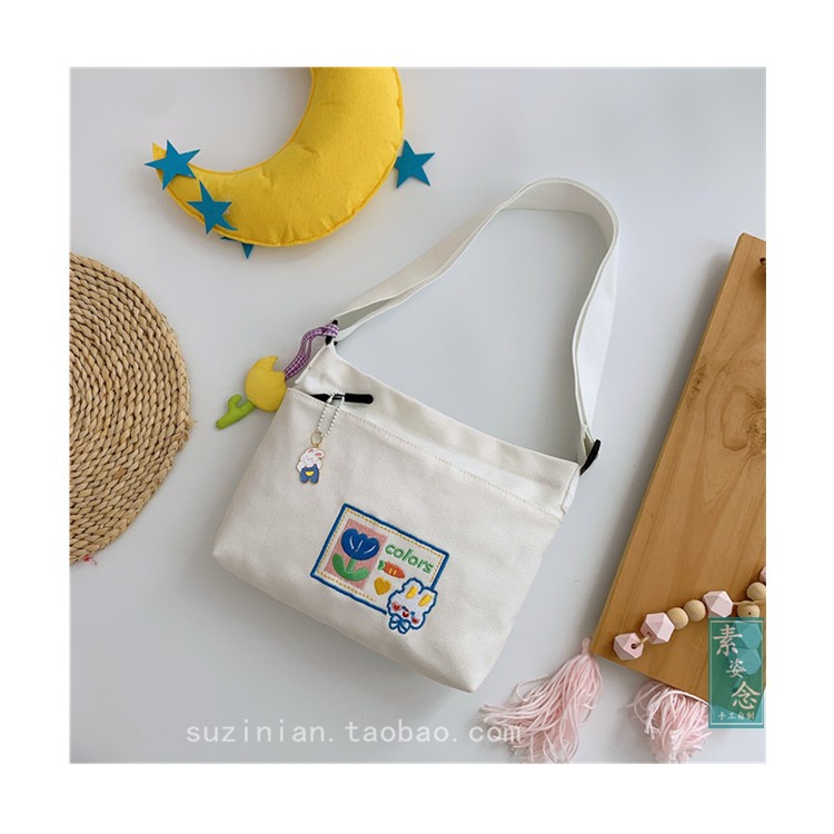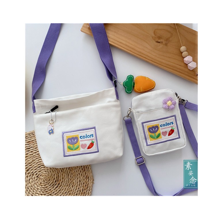 여름 틈새 Ins 귀여운 스몰 사이즈 캔버스 가방 여성과 어린이 크로스 바디 가방 어깨 가방 간단한 학생 헝겊 가방