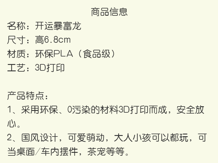 3D 인쇄 카이 윤 풍부한 사랑 드래곤 루시드 보물 장식품 부티크 성격 창조적 인 패션 플레이 원피스 국가 스타일 보석스토어 가기
