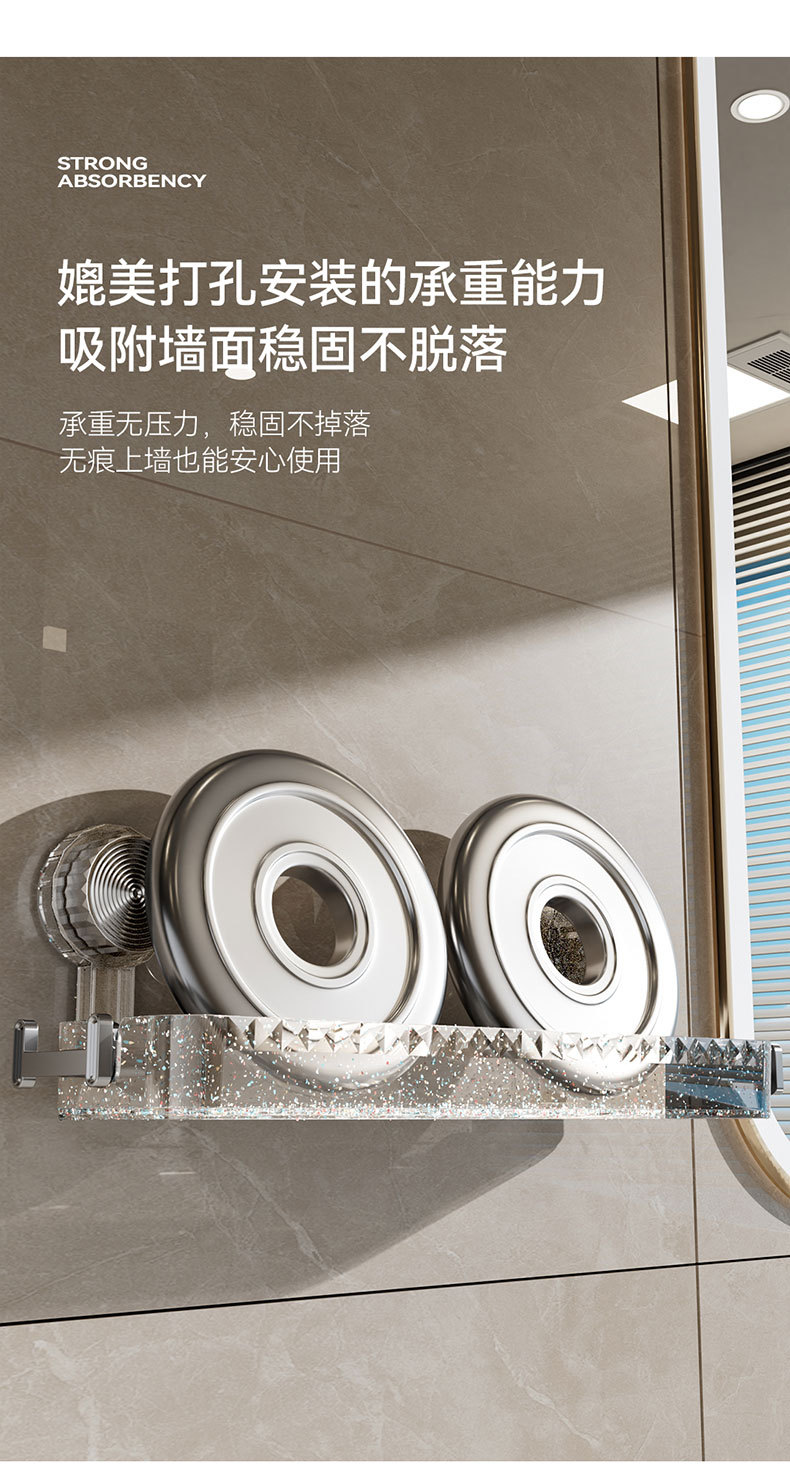 가벼운 럭셔리 스트레이트 흡입 컵 보관 랙 더블 후크 욕실 샴푸 샤워 젤 보관 랙 주방 펀치 무료 보관