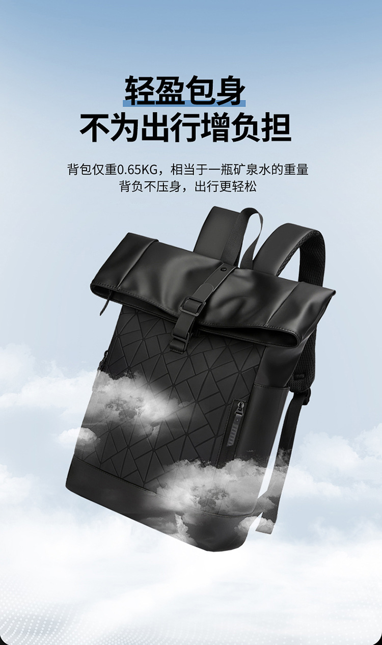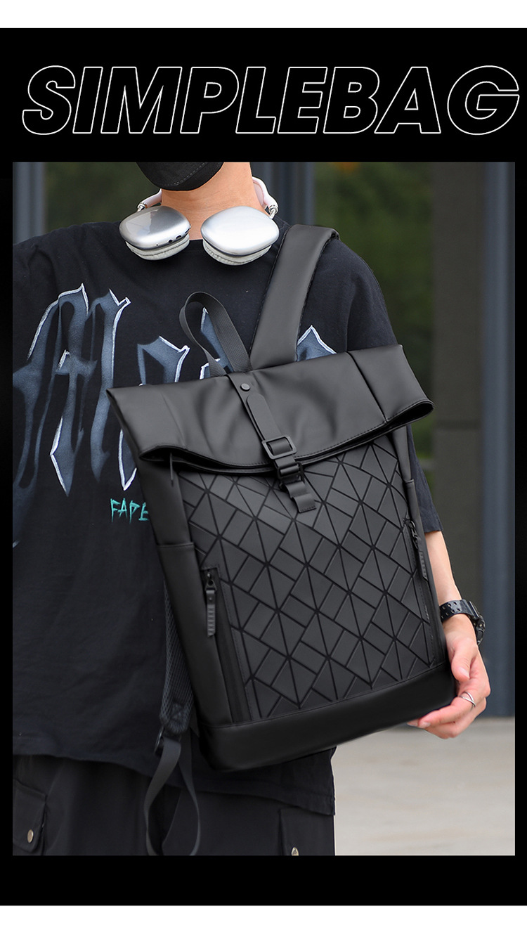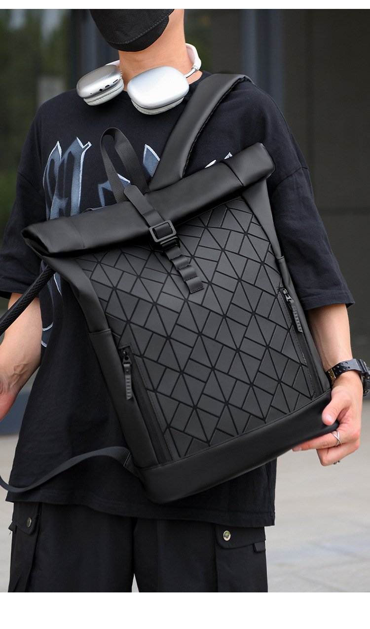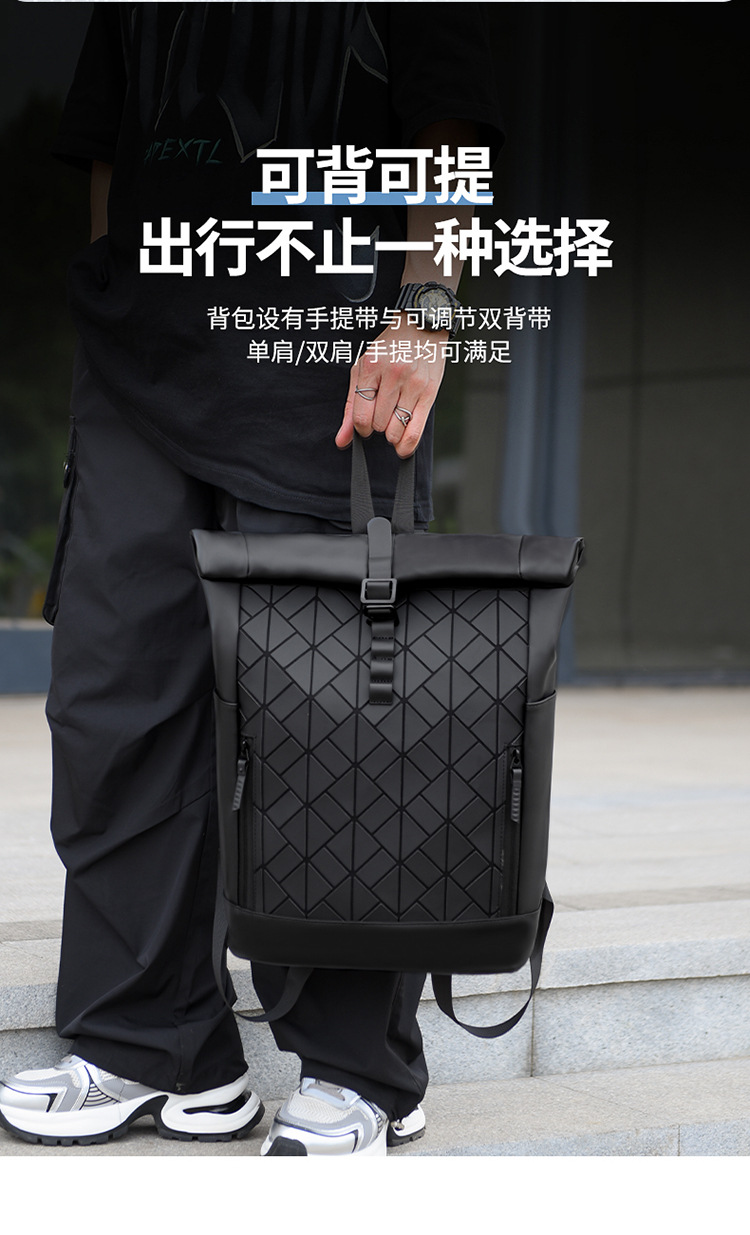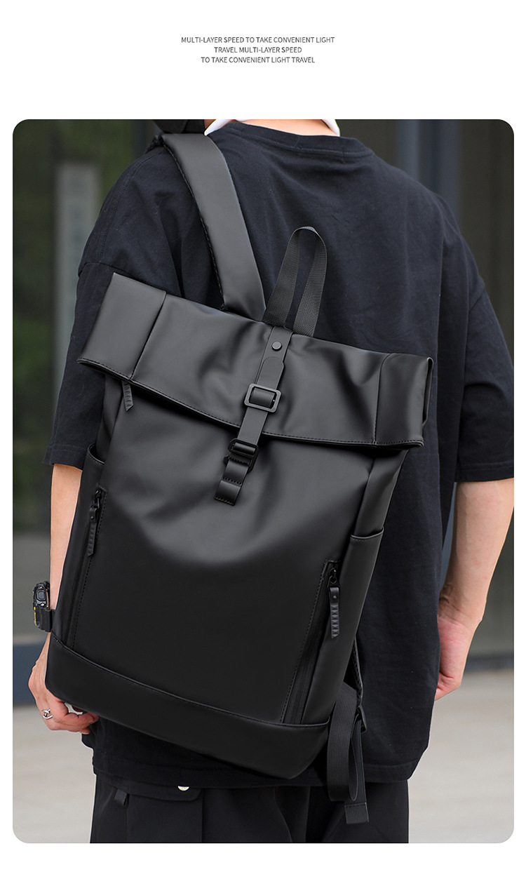 패션 성격 롤업 숄더 백 남성 대용량 여행 배낭 발수 컴퓨터 가방 대학 학생 스쿨백 국경