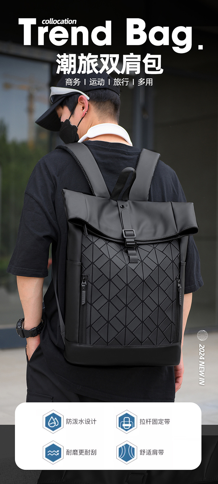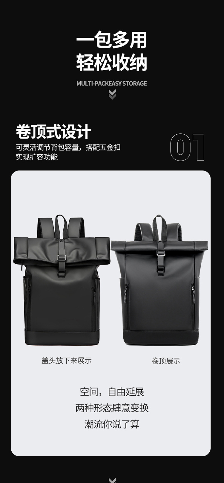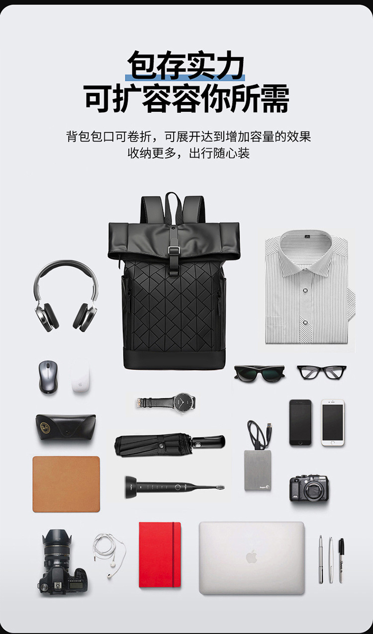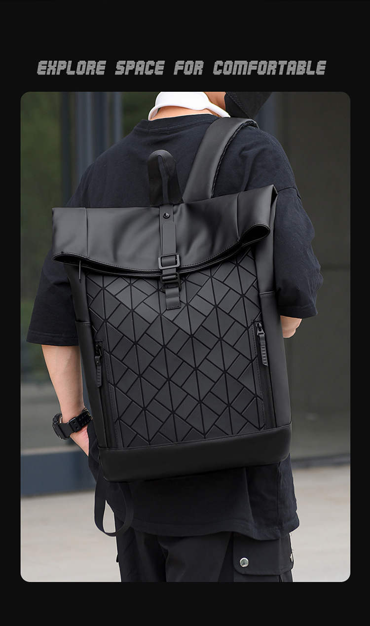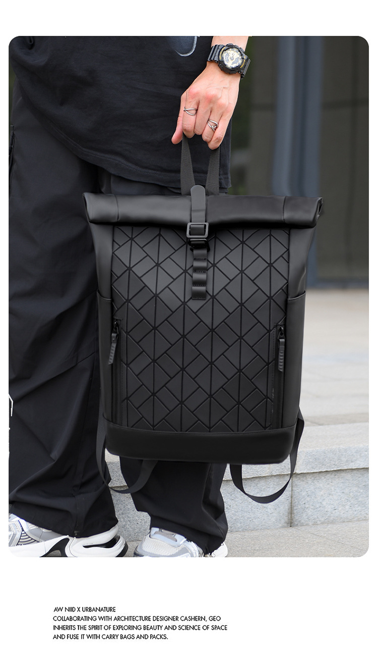 패션 성격 롤업 숄더 백 남성 대용량 여행 배낭 발수 컴퓨터 가방 대학 학생 스쿨백 국경