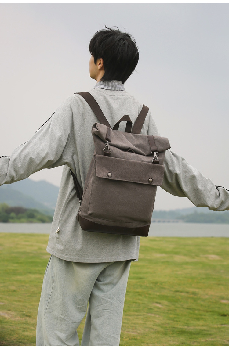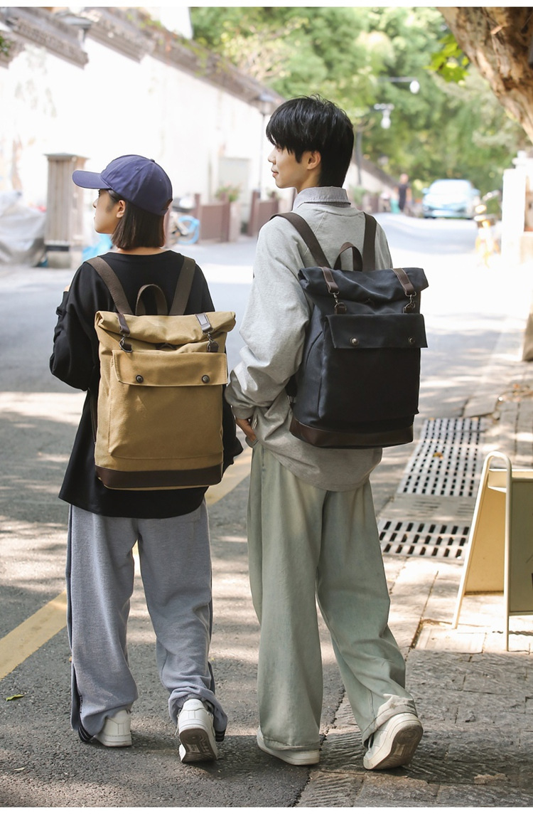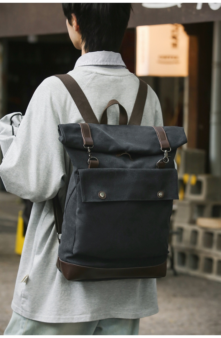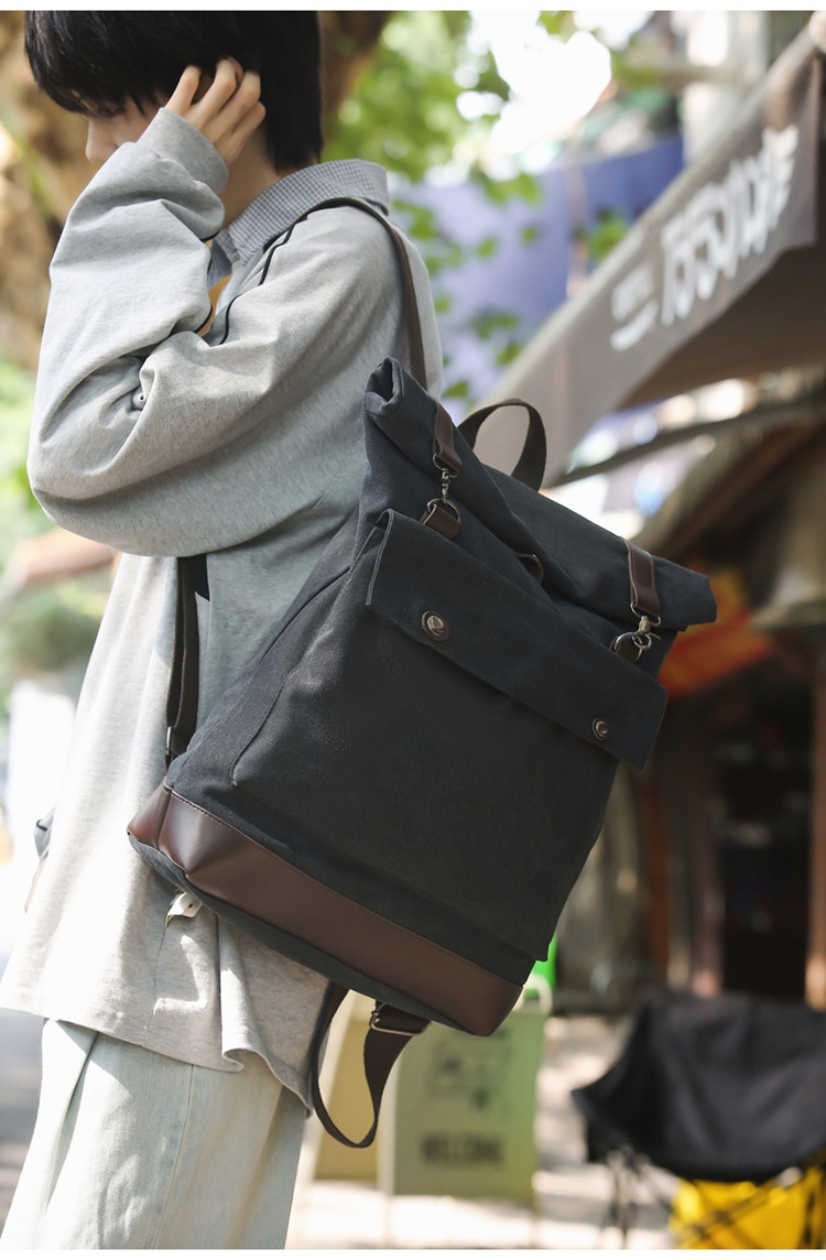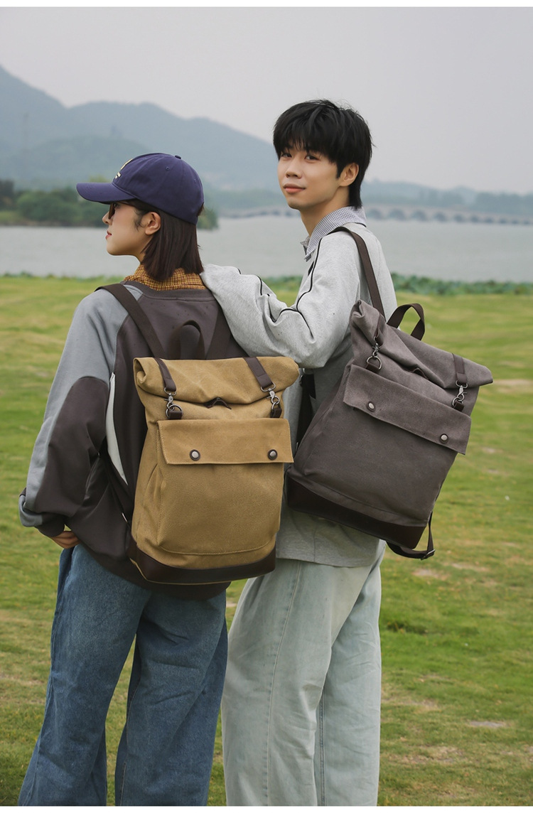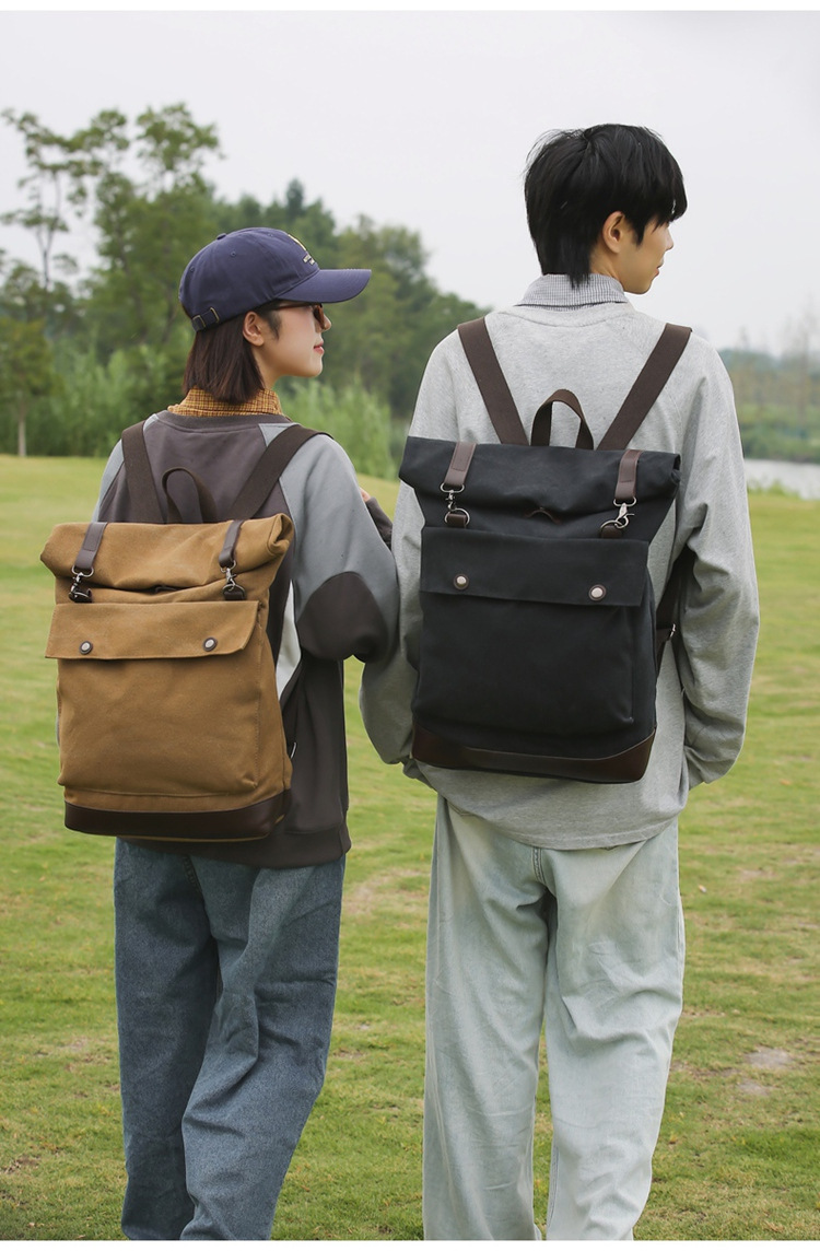 공장 도매 새로운 국경 복고풍 캔버스 배낭 남성 배낭 야외 여행 대용량 롤 커버 배낭