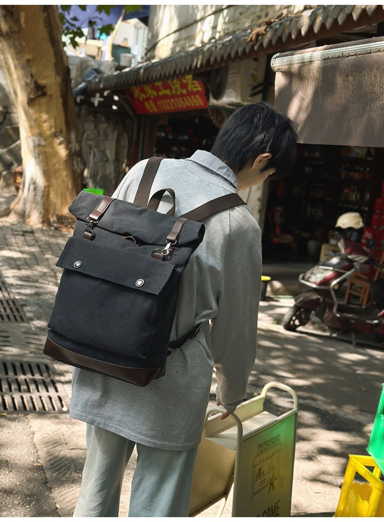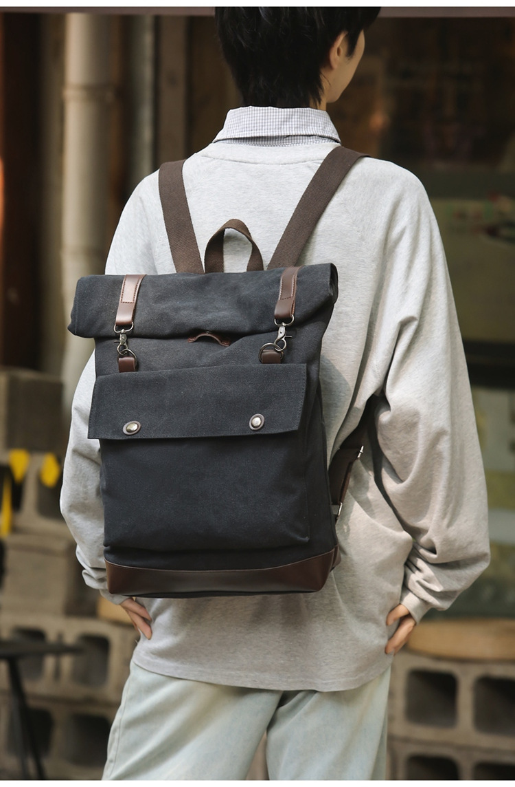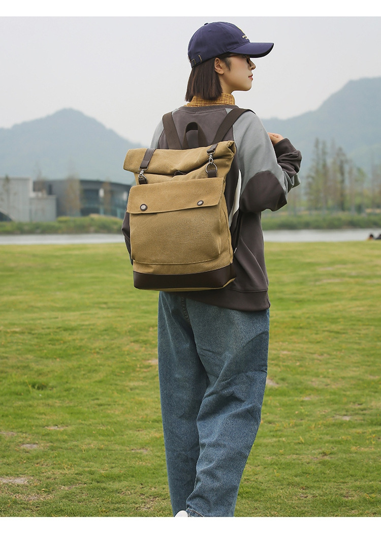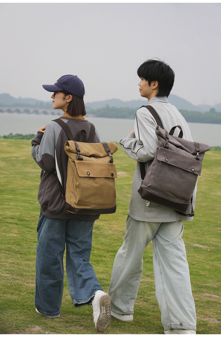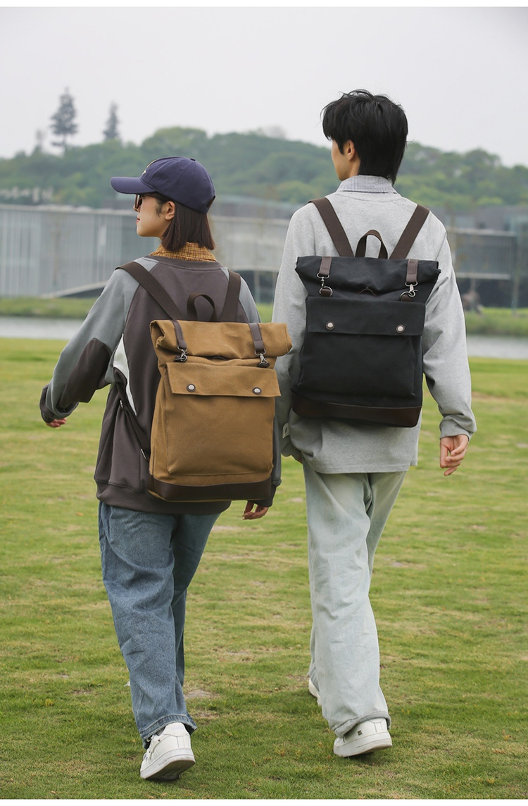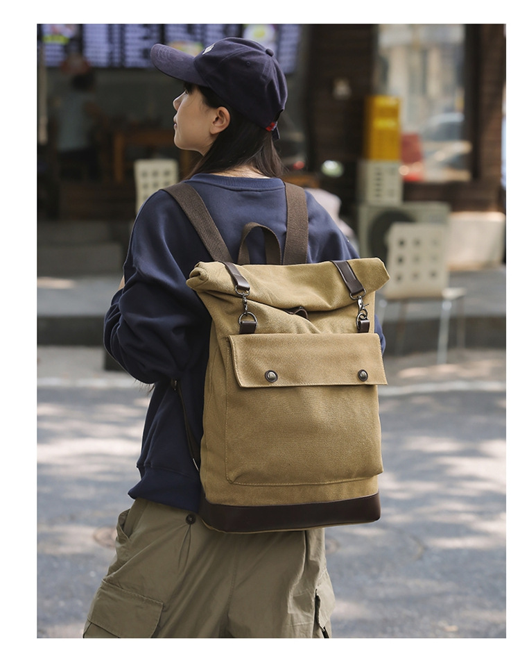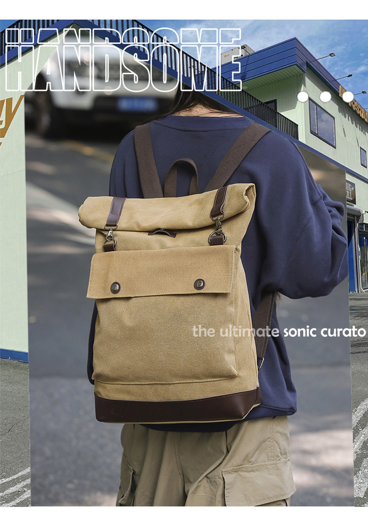 공장 도매 새로운 국경 복고풍 캔버스 배낭 남성 배낭 야외 여행 대용량 롤 커버 배낭