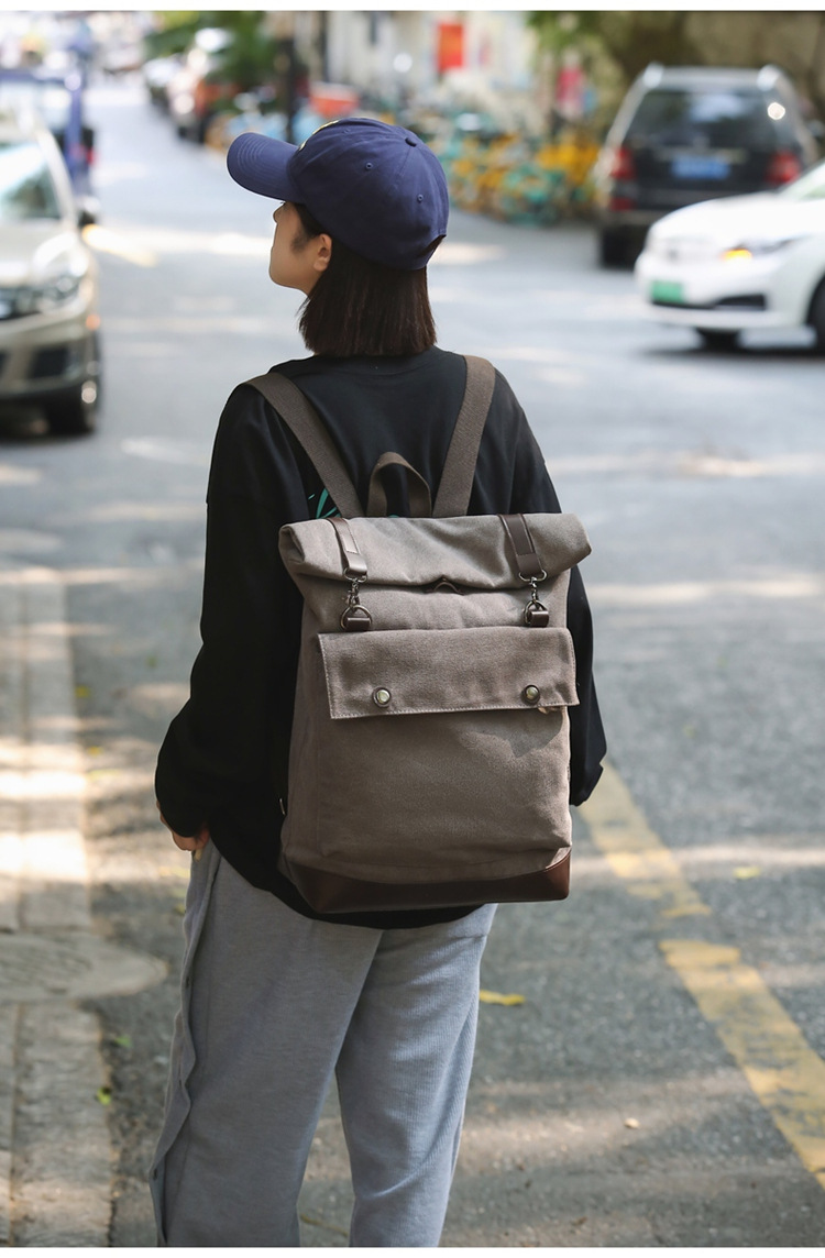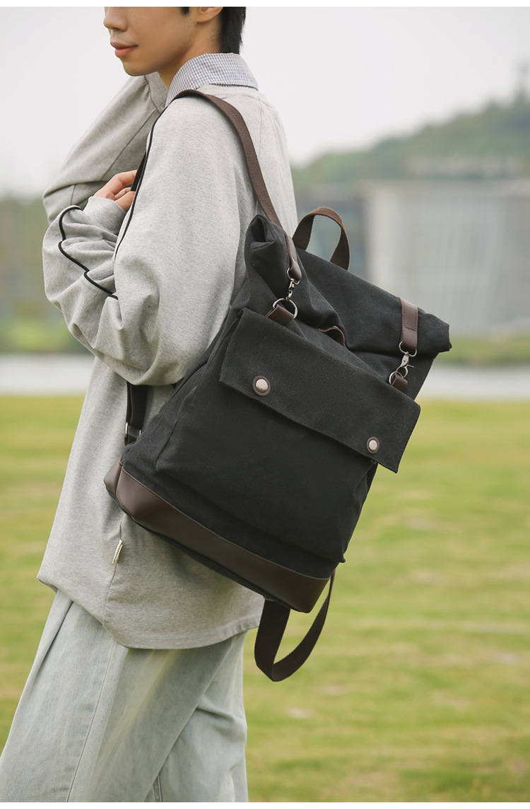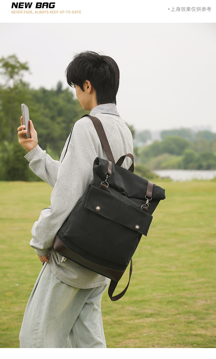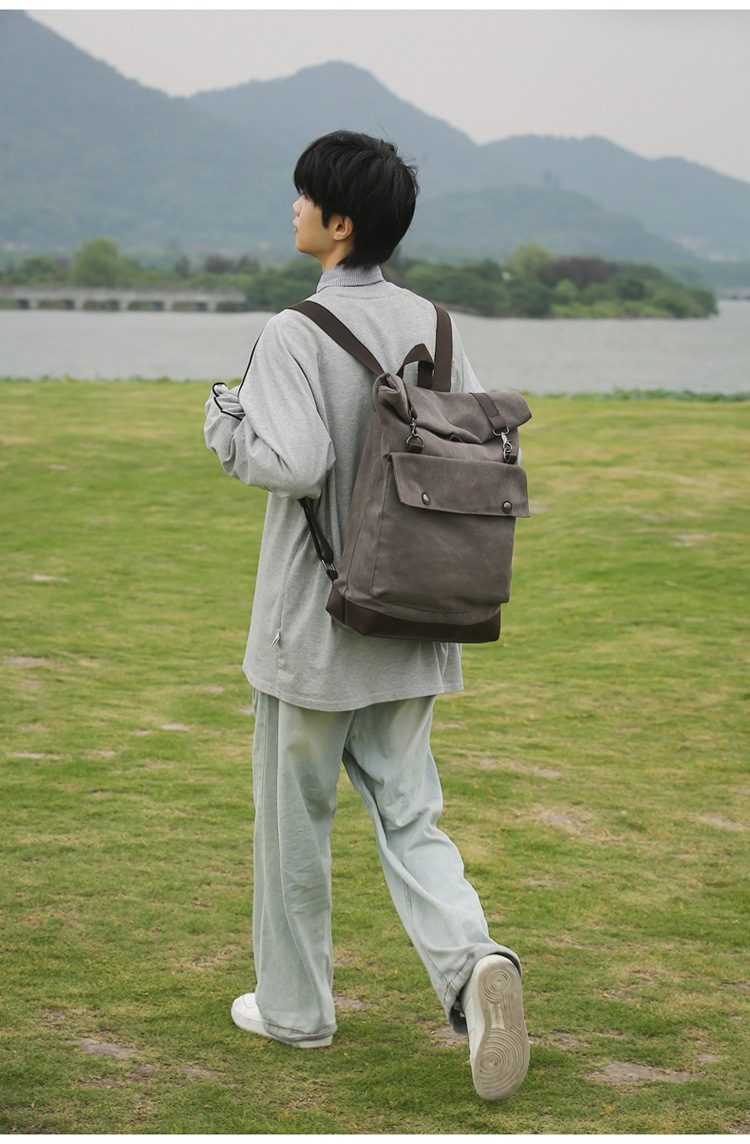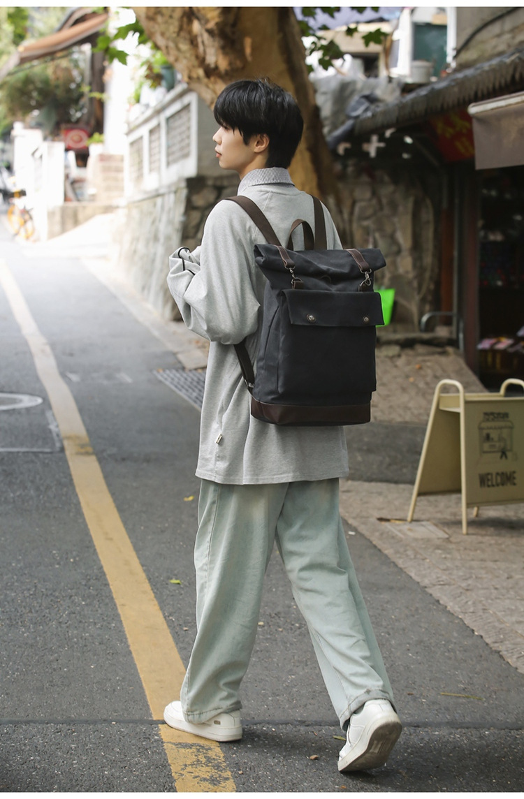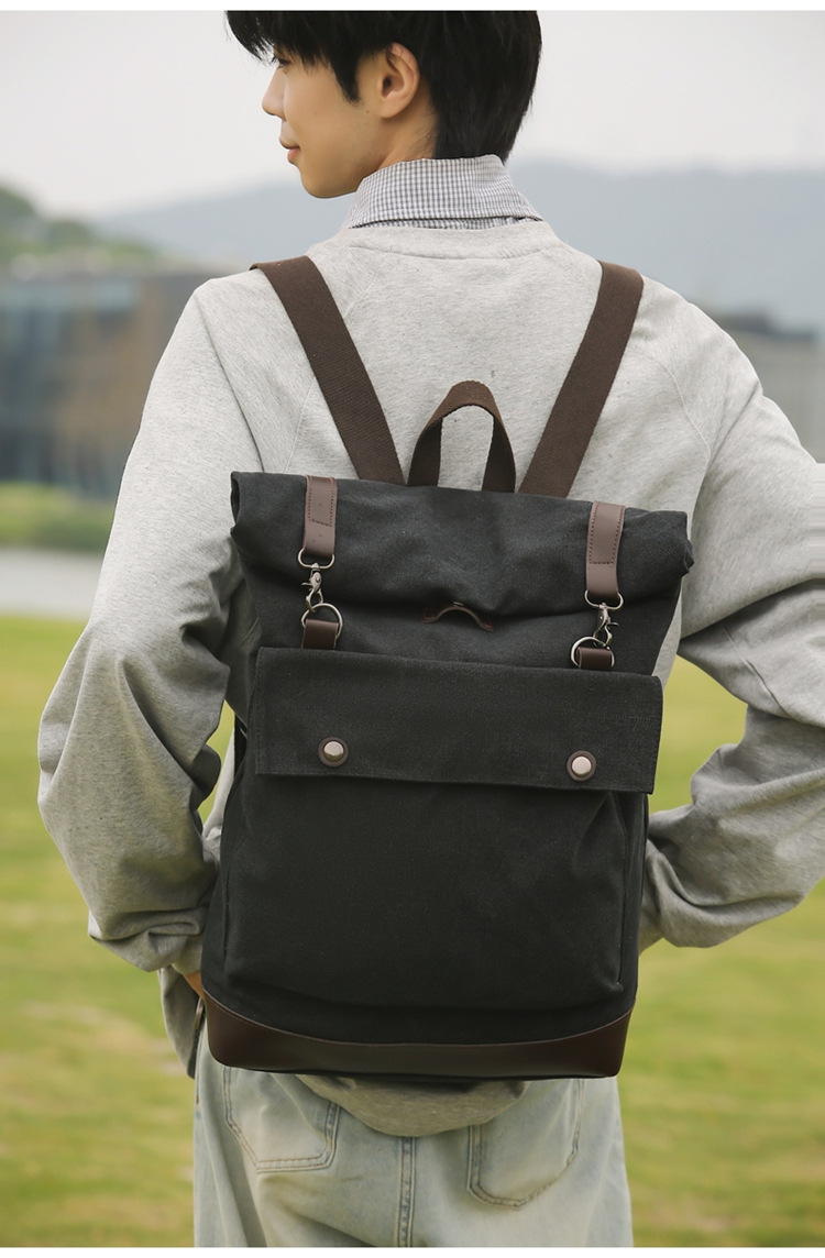 공장 도매 새로운 국경 복고풍 캔버스 배낭 남성 배낭 야외 여행 대용량 롤 커버 배낭