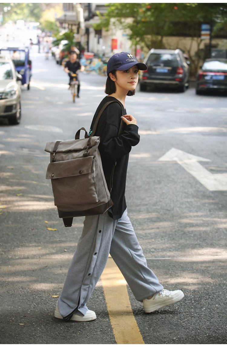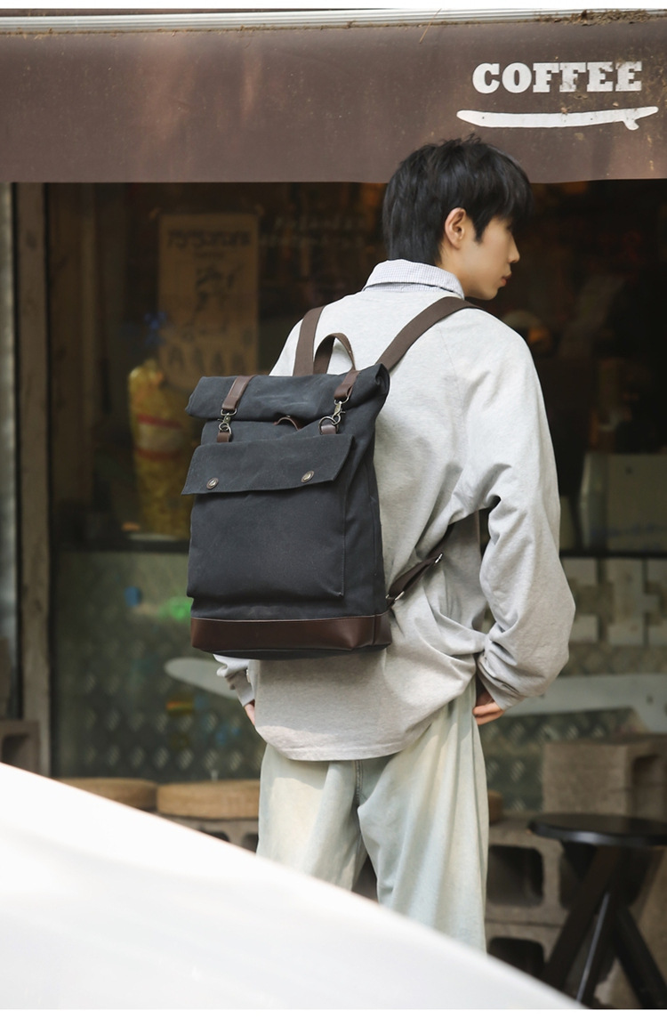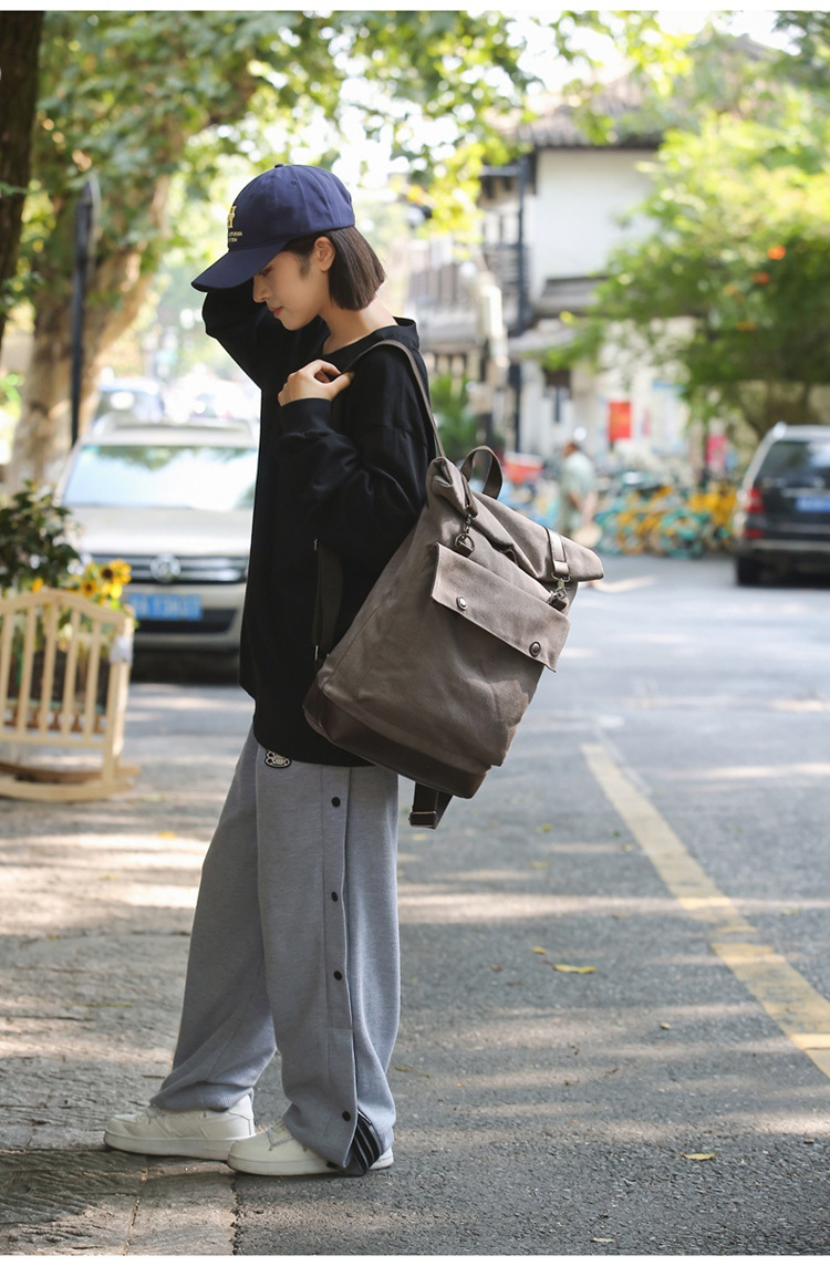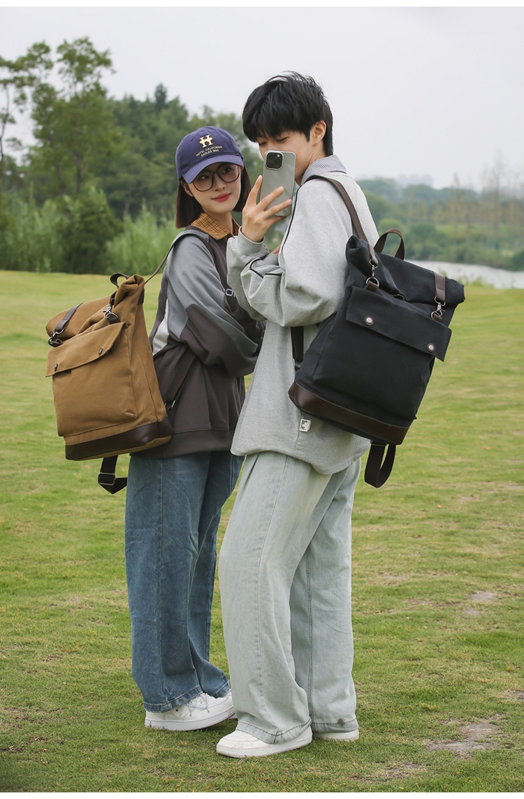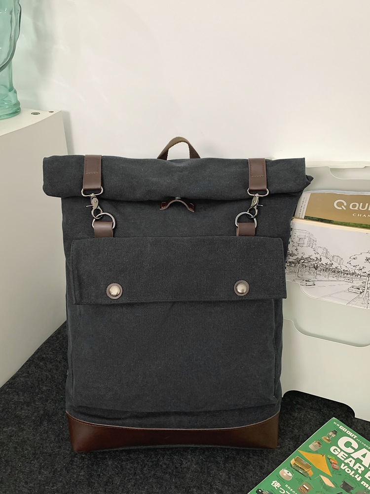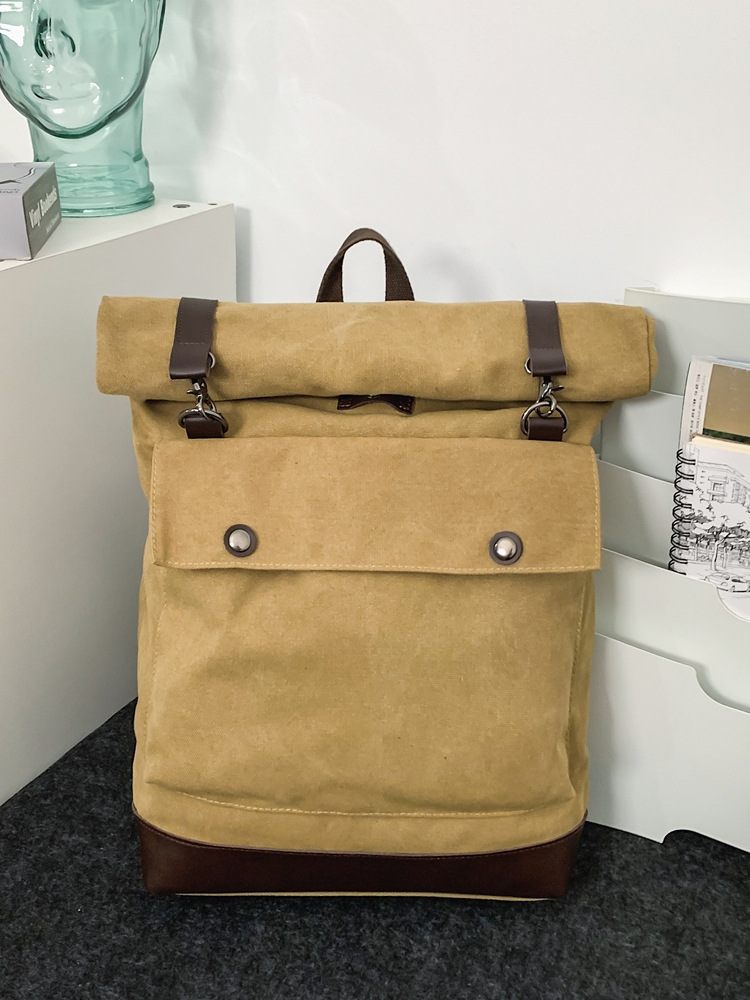 공장 도매 새로운 국경 복고풍 캔버스 배낭 남성 배낭 야외 여행 대용량 롤 커버 배낭