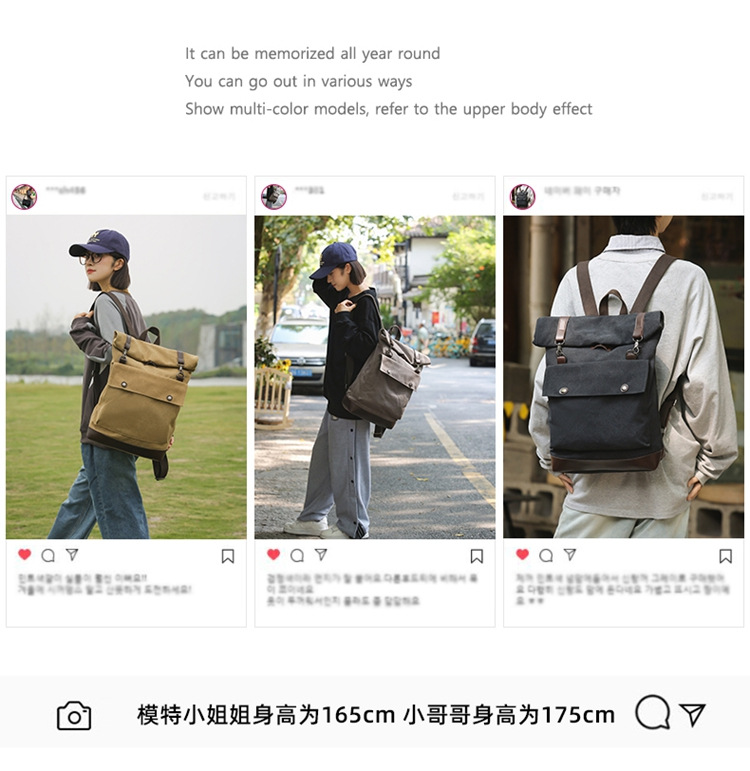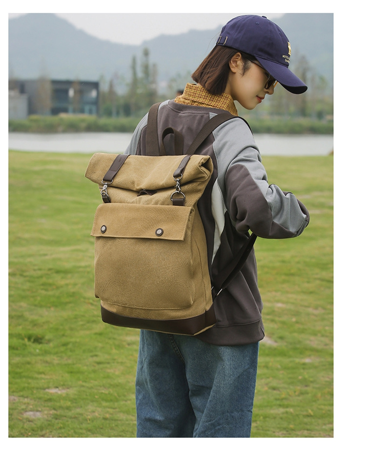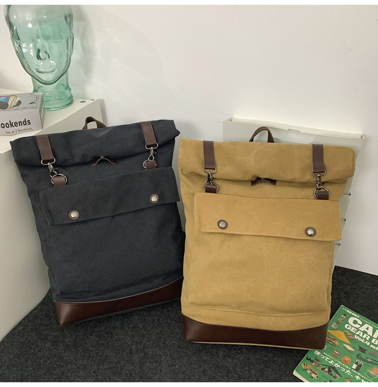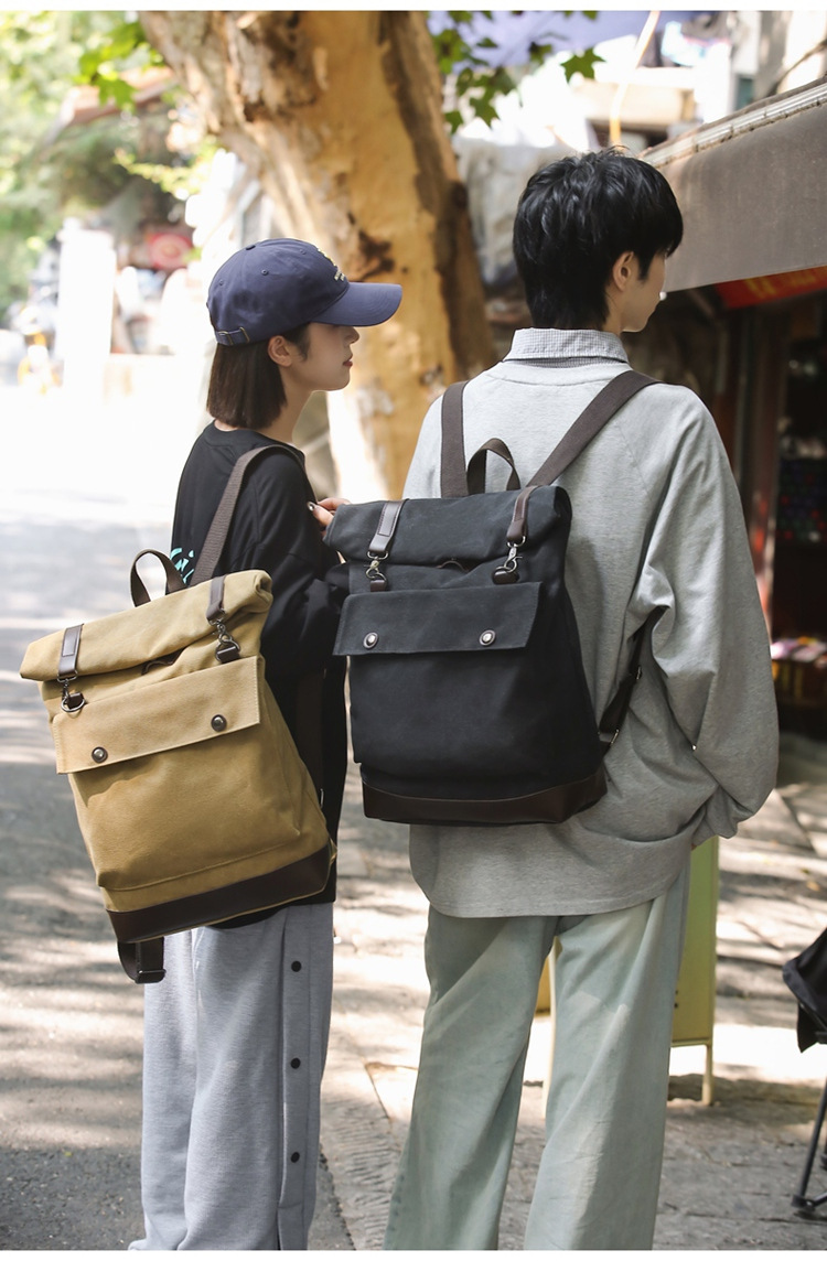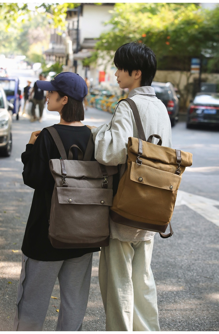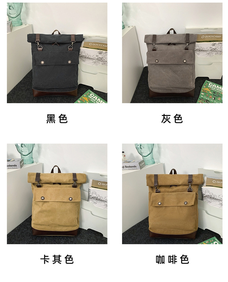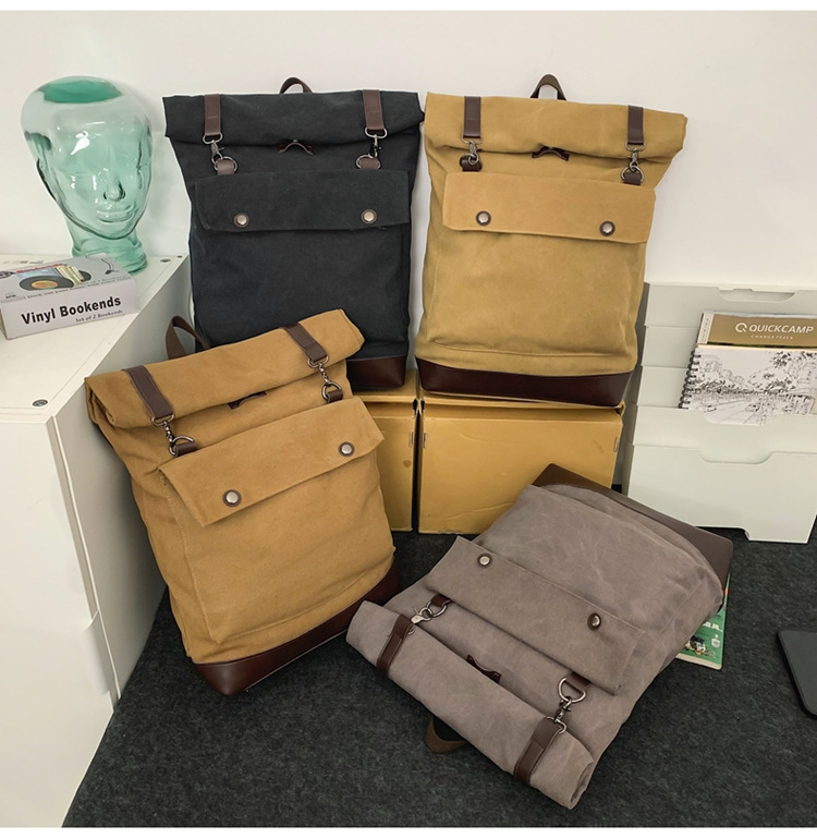 공장 도매 새로운 국경 복고풍 캔버스 배낭 남성 배낭 야외 여행 대용량 롤 커버 배낭스토어 가기