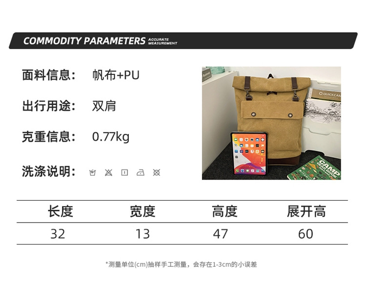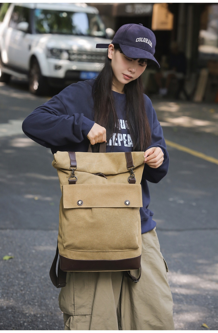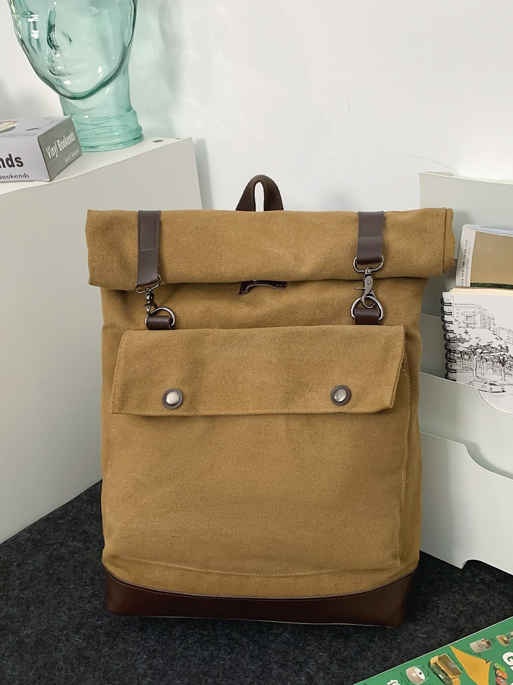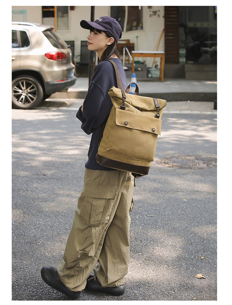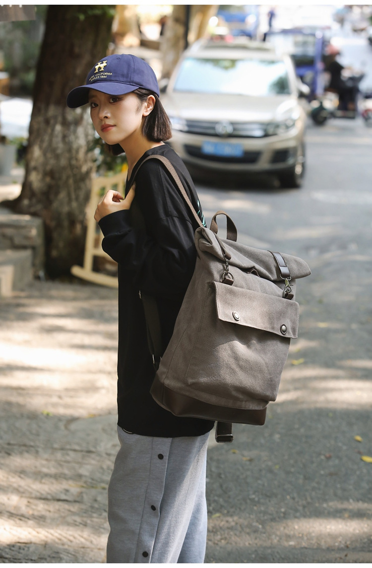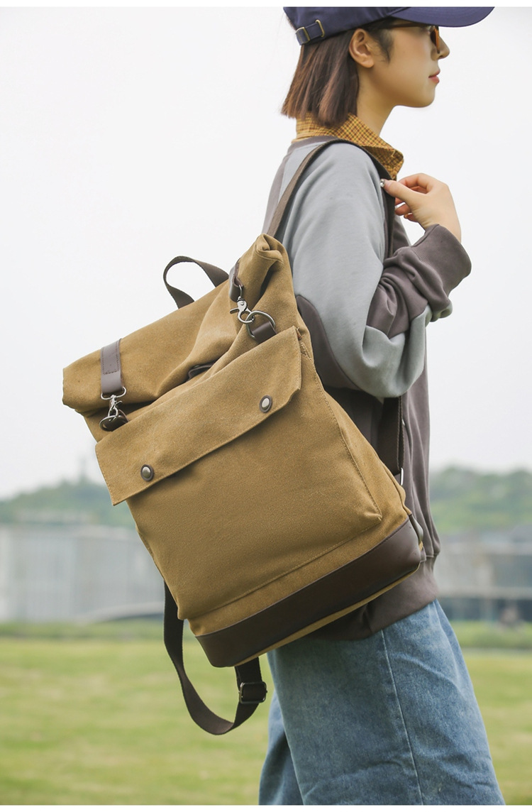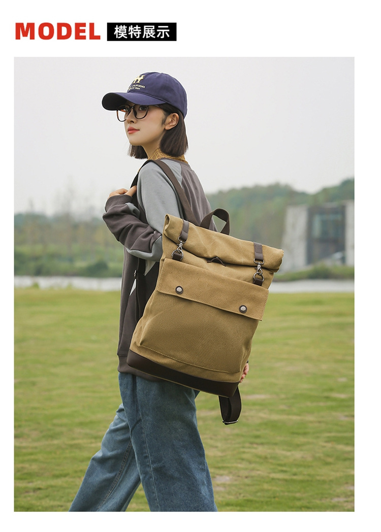 공장 도매 새로운 국경 복고풍 캔버스 배낭 남성 배낭 야외 여행 대용량 롤 커버 배낭스토어 가기