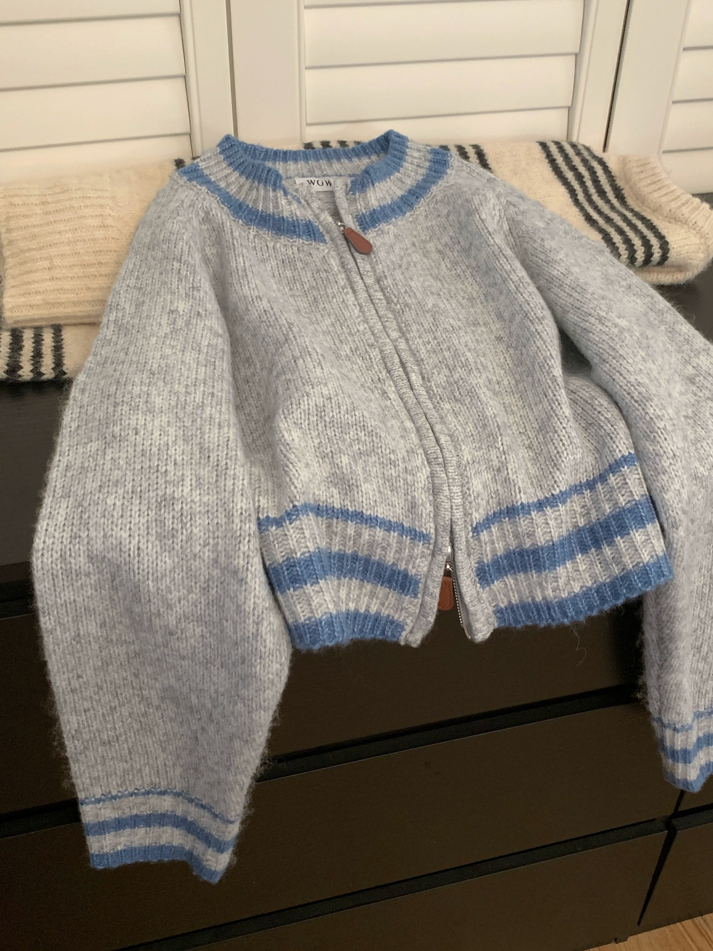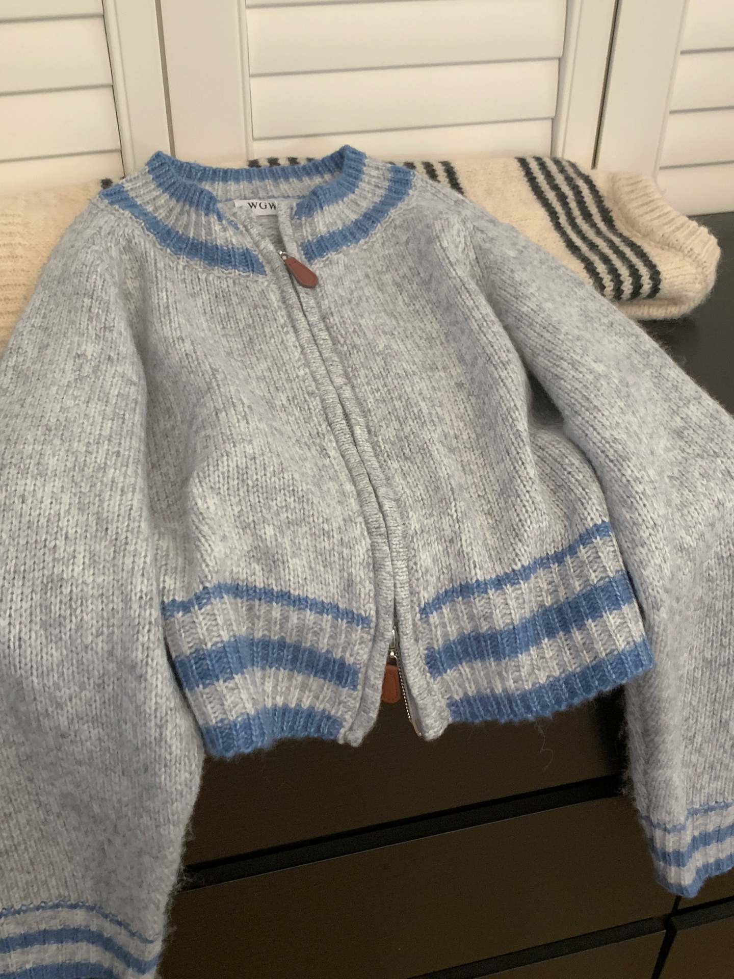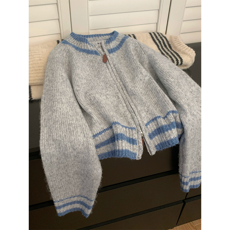 회색 너구리 벨벳 지퍼 스웨터 코트 여성의 가을과 겨울 짧은 게으른 스타일 겨울 두꺼운 니트 카디건스토어 가기