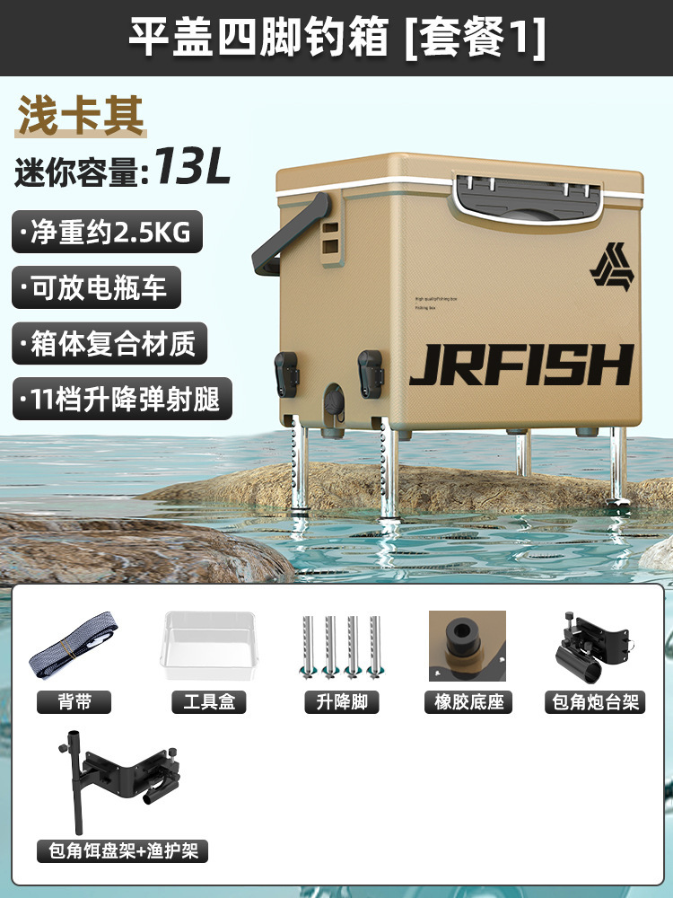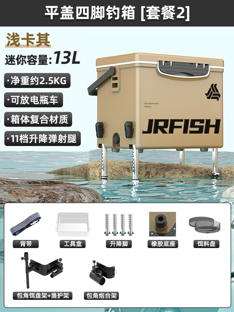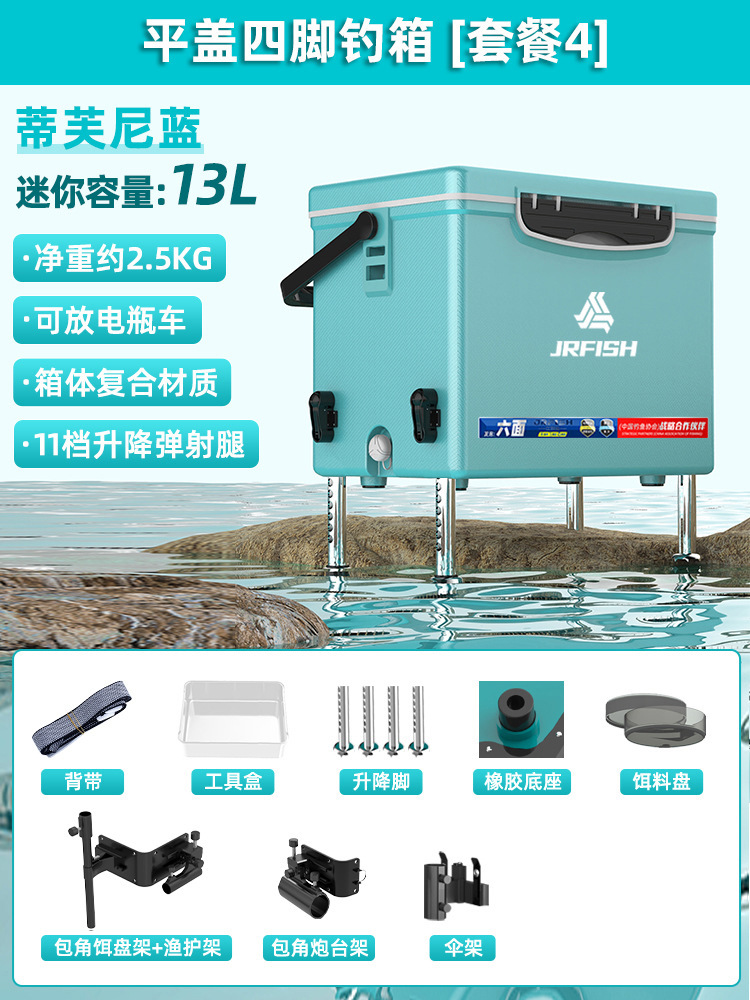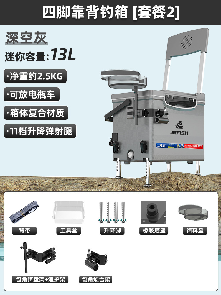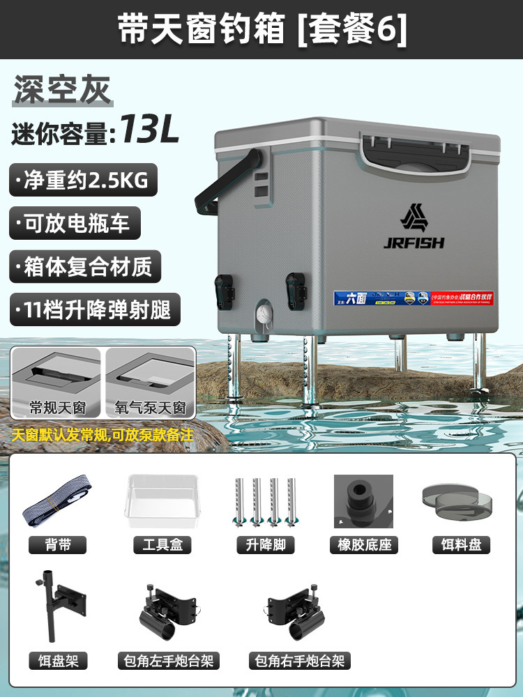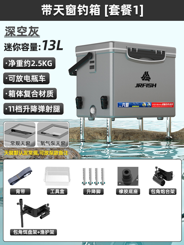 • 다리가 있는 13리터 회색 플랫 커버(왼쪽 및 오른쪽 터렛 + 미끼 상자 홀더 + 미끼 상자)