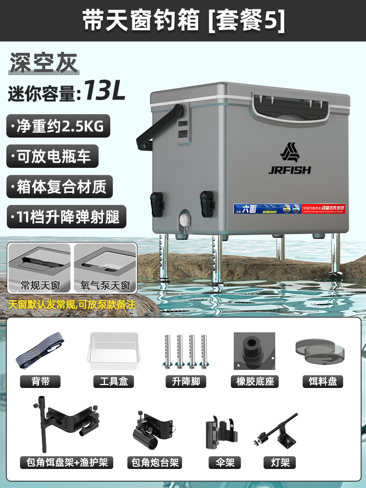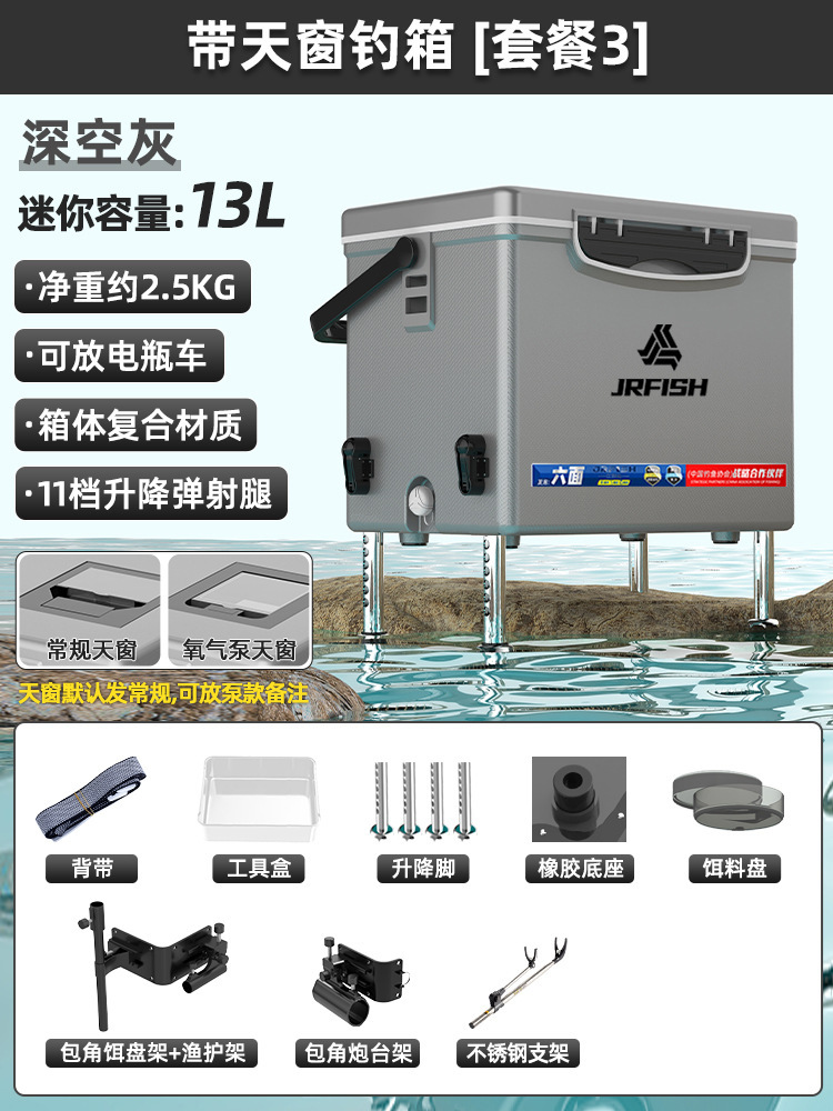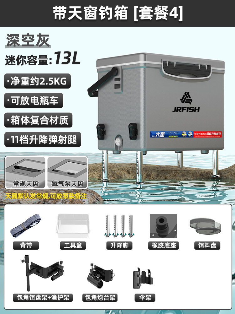 • 13리터 회색 채광창(다리 포함 3종 세트 + 미끼 상자) + 스탠드