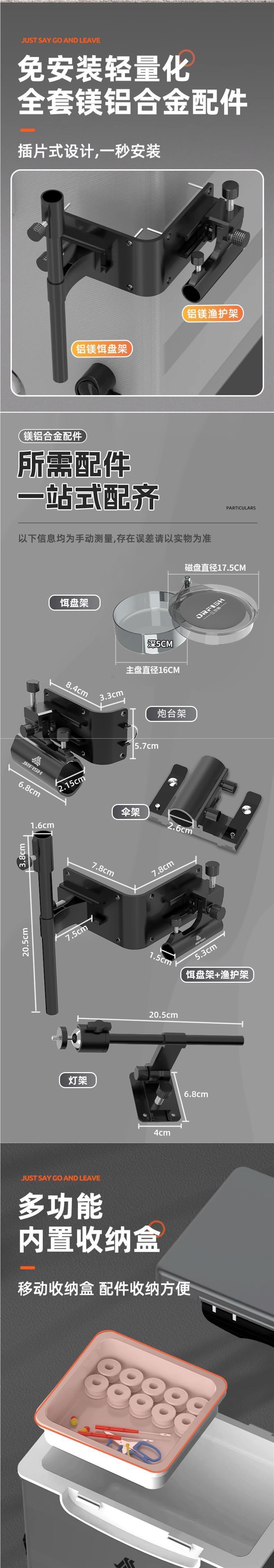 • 다리가 있는 13리터 회색 채광창(왼쪽 및 오른쪽 터렛 + 미끼 상자 홀더 + 미끼 상자)