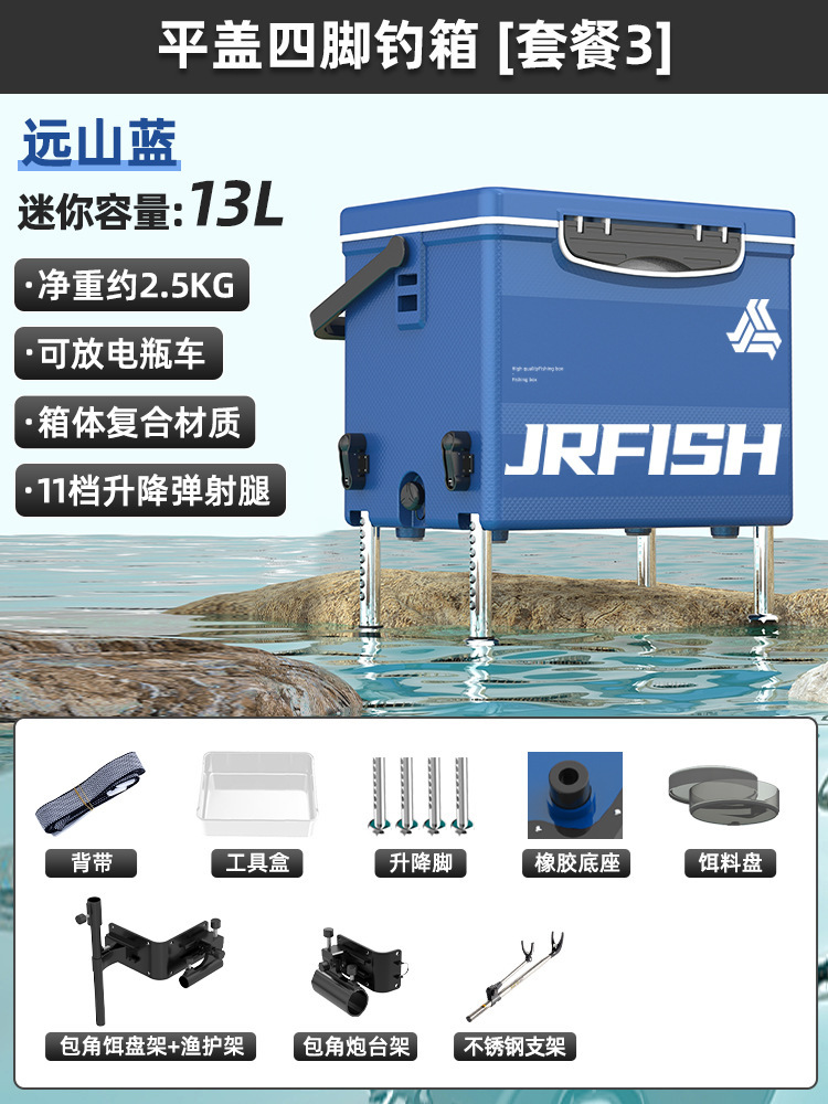 • 13리터 네이비 블루 플랫 커버(다리 포함 3종 세트 + 미끼 상자) + 스탠드