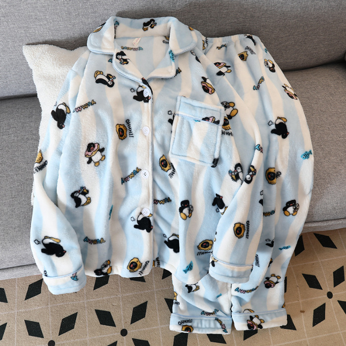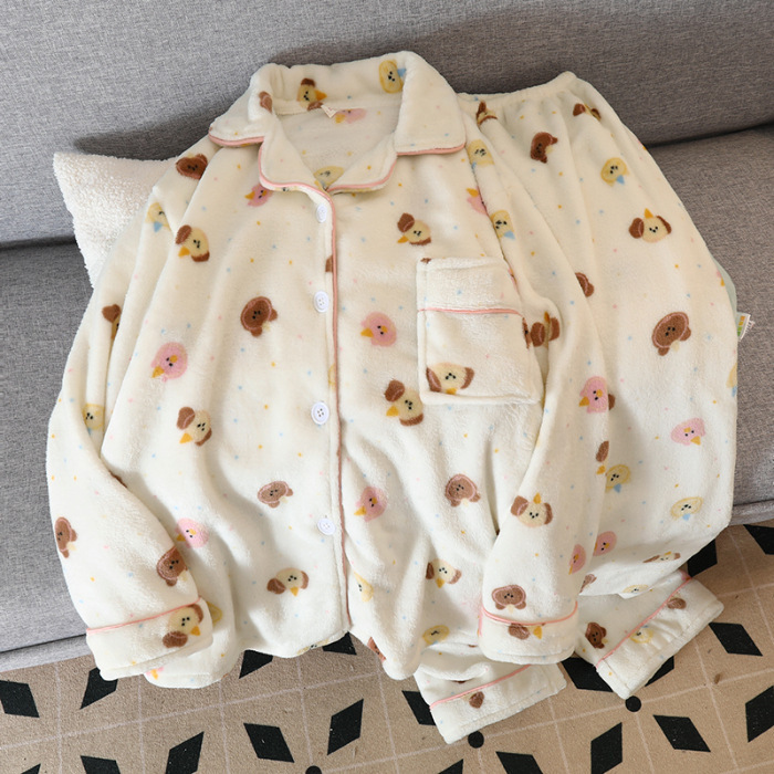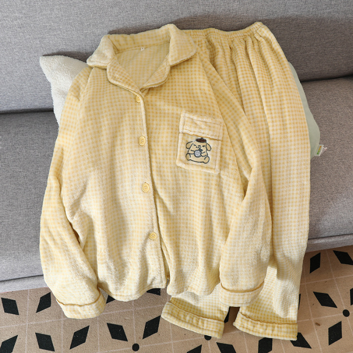 일본 헬로 키티 산호 양털 잠옷 여성 가을과 겨울 기모 두꺼운 달콤한 만화 귀여운 홈 옷스토어 가기