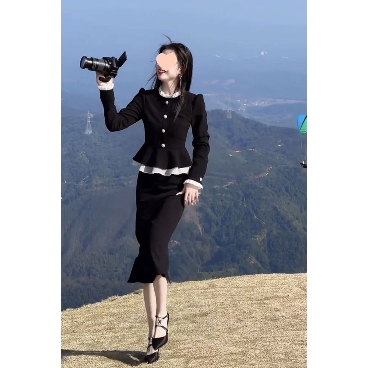 인터넷 유명 패션 세트 여성 봄 새로운 프랑스 사교계 컬러 매칭 허리 자켓 스커트 여성스토어 가기