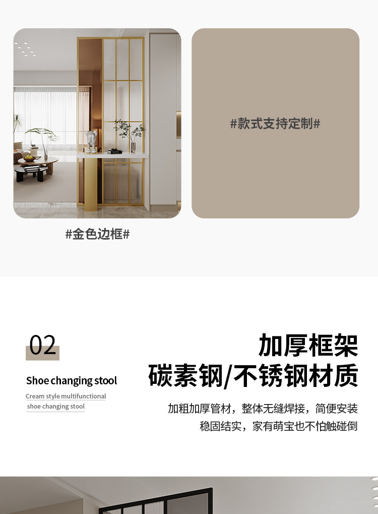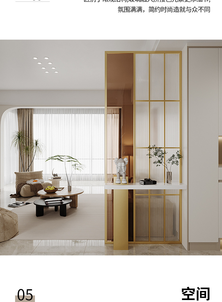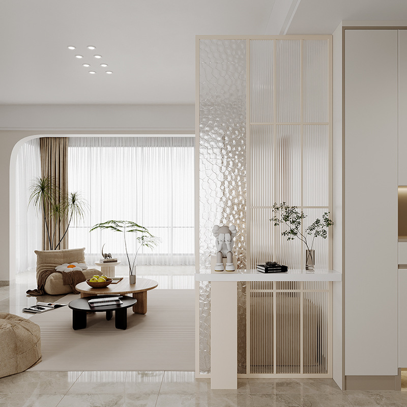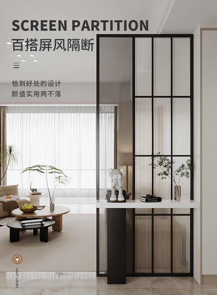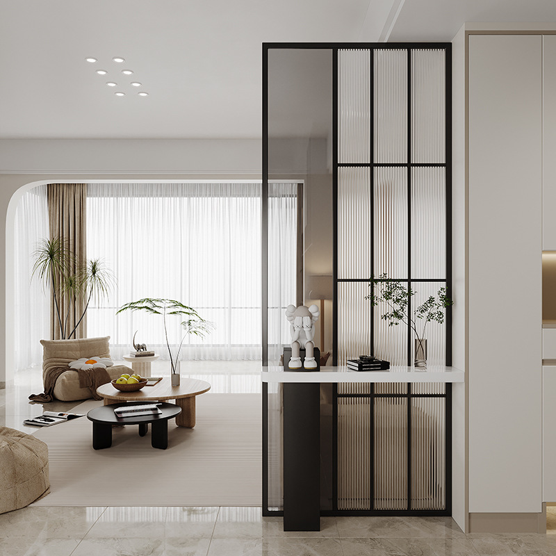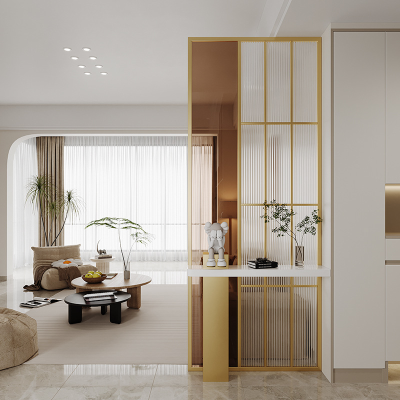 엔트리 럭셔리 거실 간단한 현대 입구 캐비닛 유리 스크린 욕실 문-문 음영 스테인레스 스틸 파티션