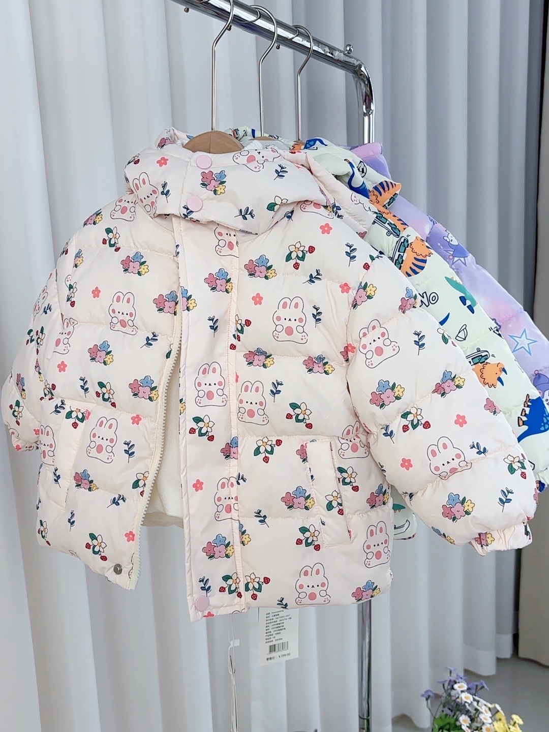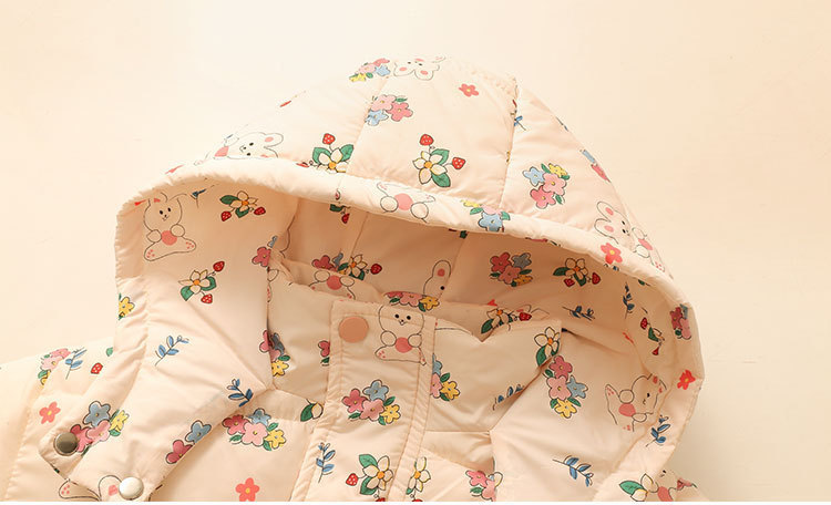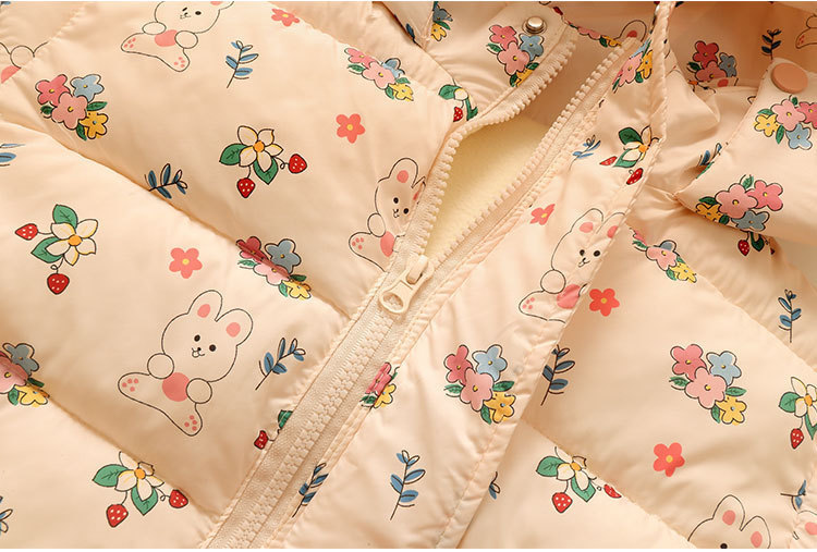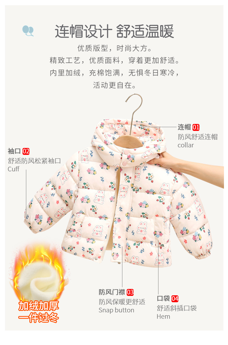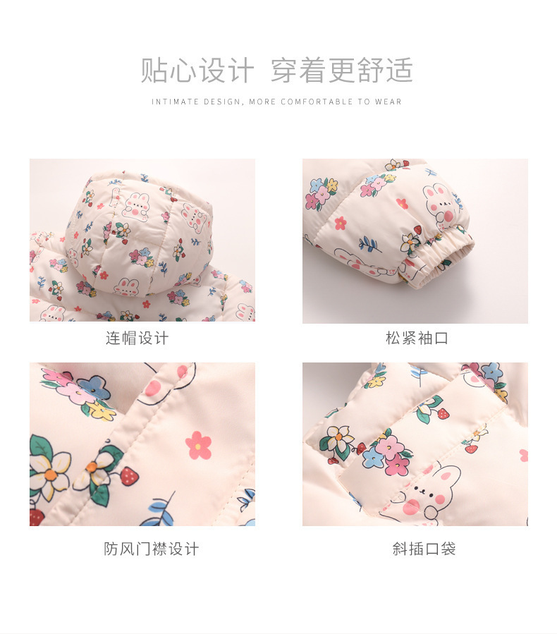 가을 겨울 어린이 면 코트, 벨벳 꽃무늬, 여아 면 코트, 귀여운 중소형 아동 패션 베이비 코트, 두꺼운 아동복스토어 가기