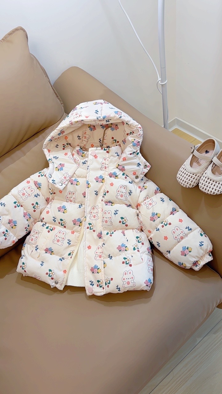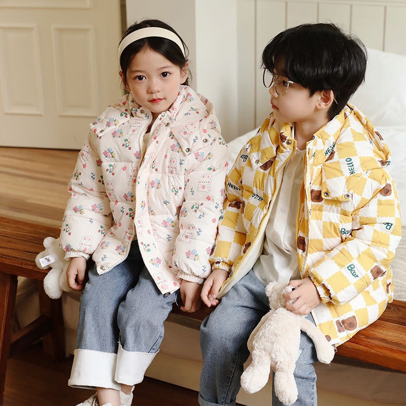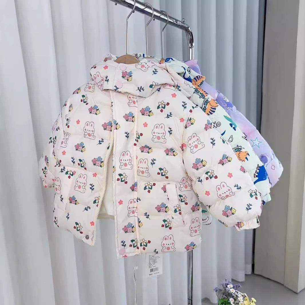 가을 겨울 어린이 면 코트, 벨벳 꽃무늬, 여아 면 코트, 귀여운 중소형 아동 패션 베이비 코트, 두꺼운 아동복스토어 가기